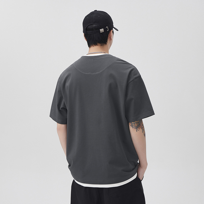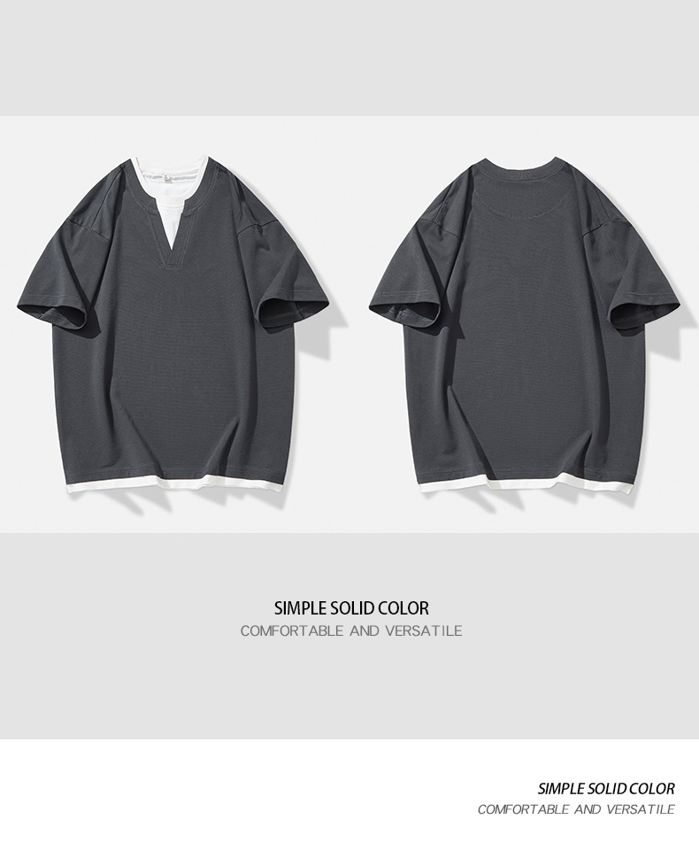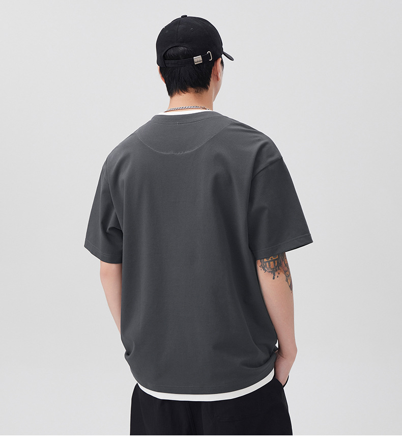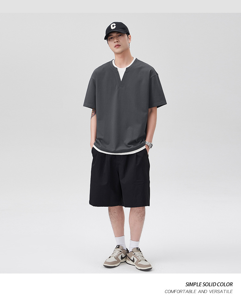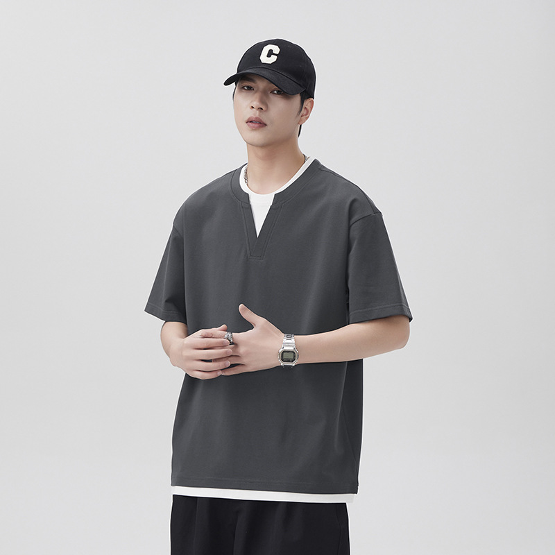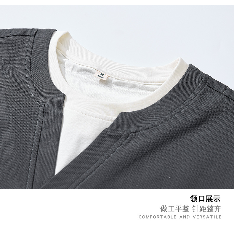假两件美式复古短袖T恤男夏季2025新款ins潮牌亨利衫男装体恤