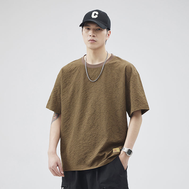 T恤男2025夏季新品潮流宽松舒适港风圆领落肩潮牌复古休闲设计感
