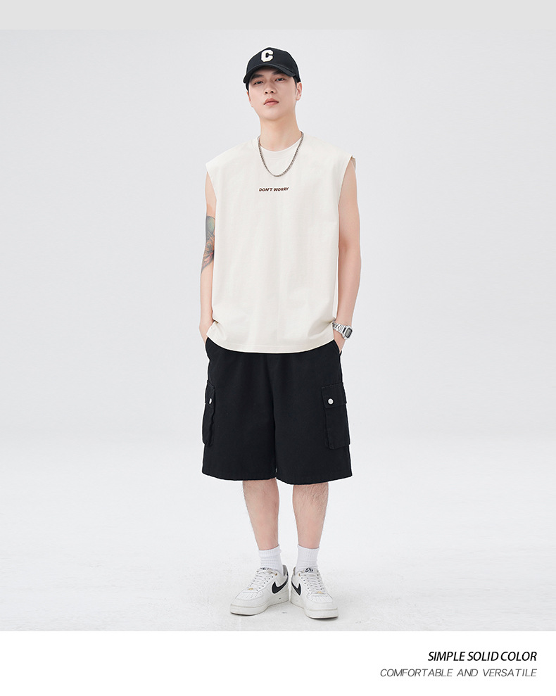 美式休闲无袖背心男2025新款夏季新款宽松运动坎肩t恤上衣潮