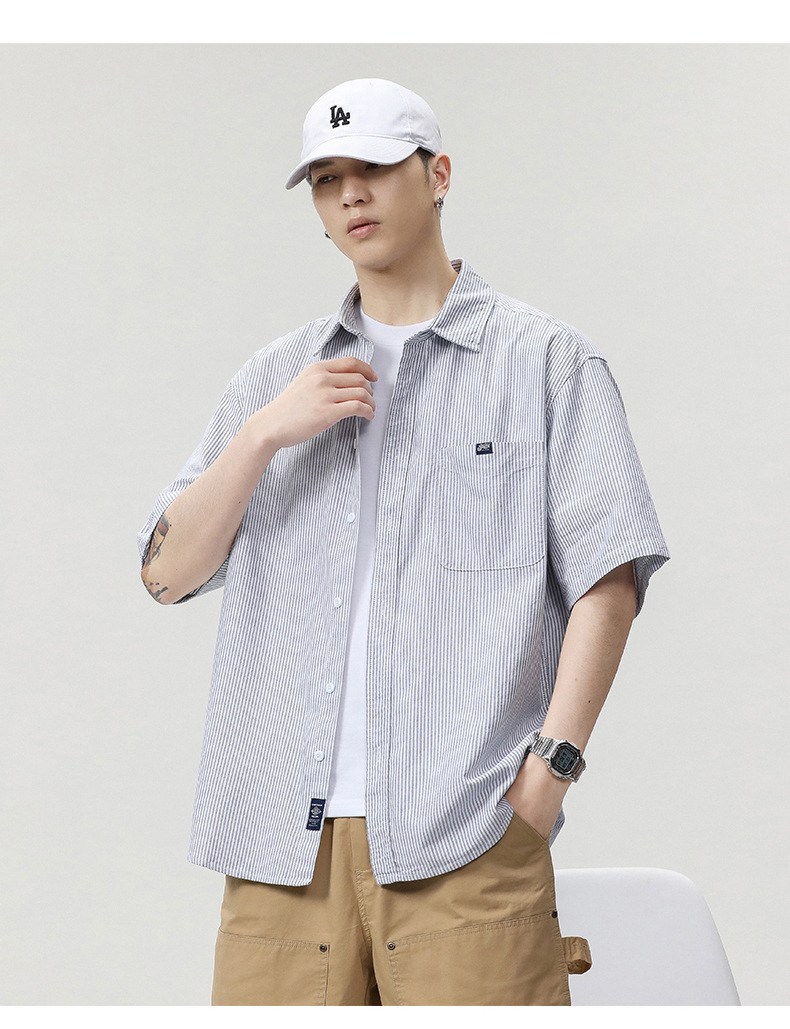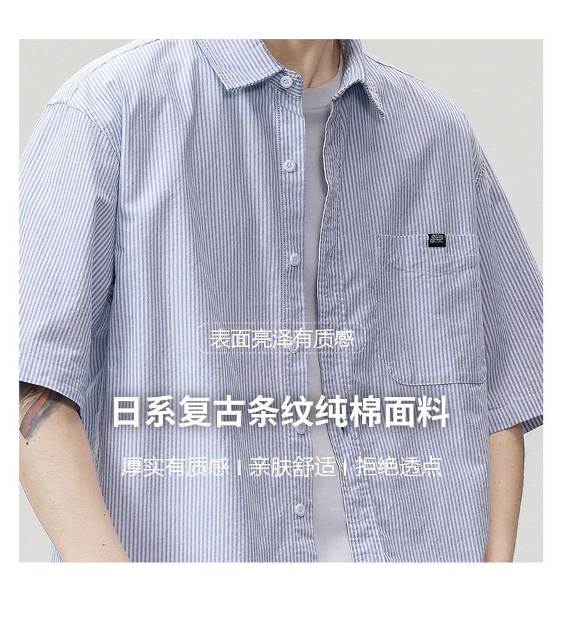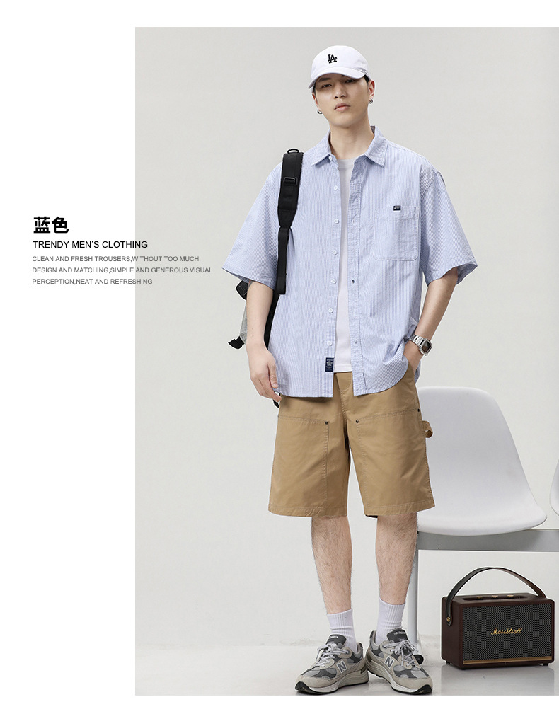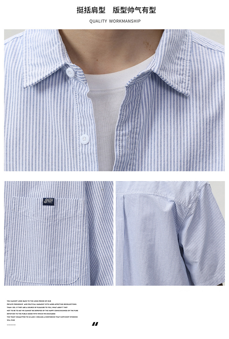 夏季新款薄款纯棉男士条纹短袖衬衫2025宽松男款休闲polo半袖衬衣