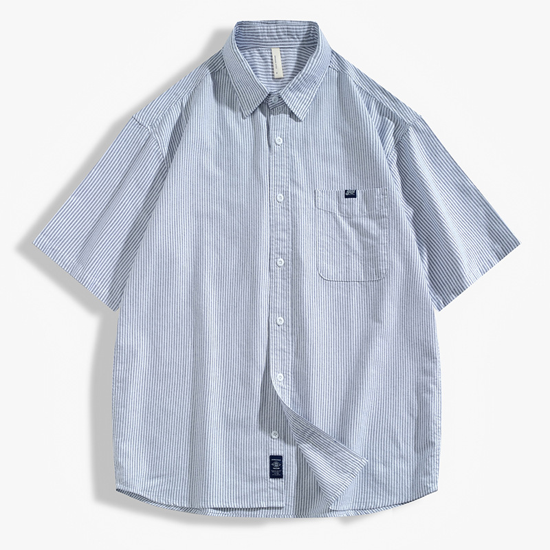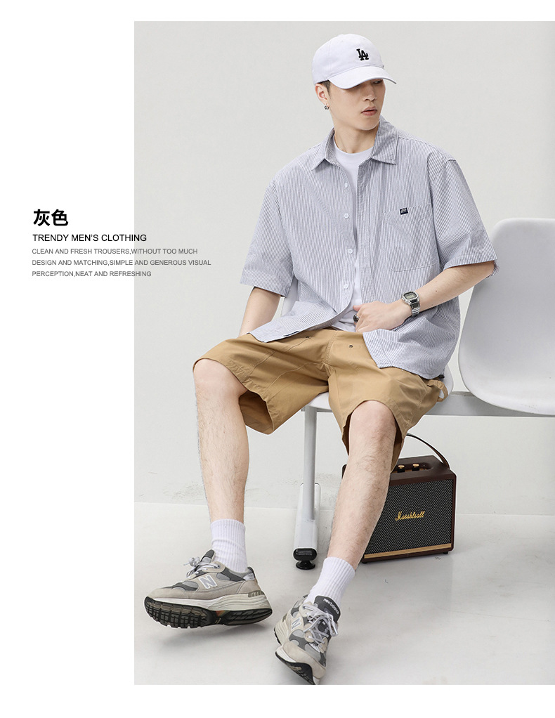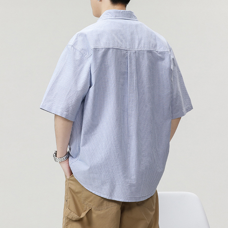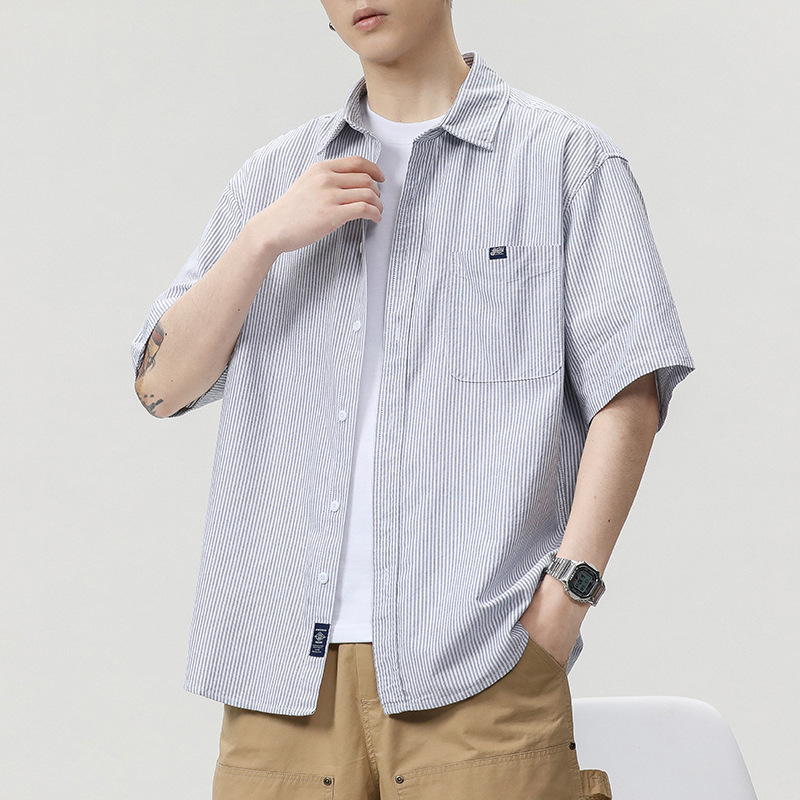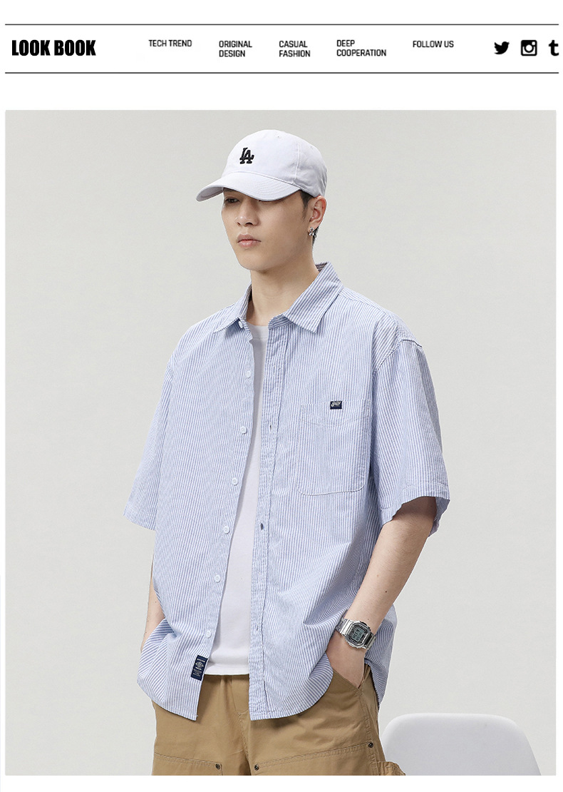 夏季新款薄款纯棉男士条纹短袖衬衫2025宽松男款休闲polo半袖衬衣