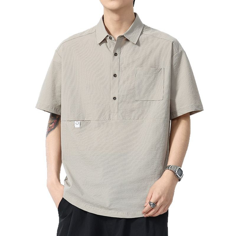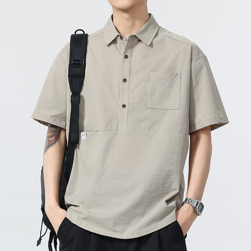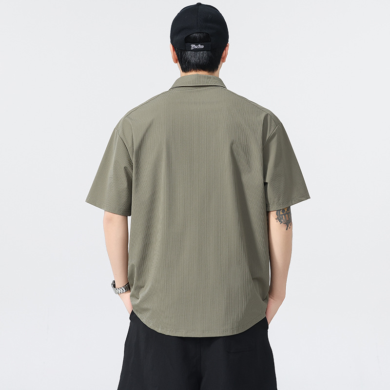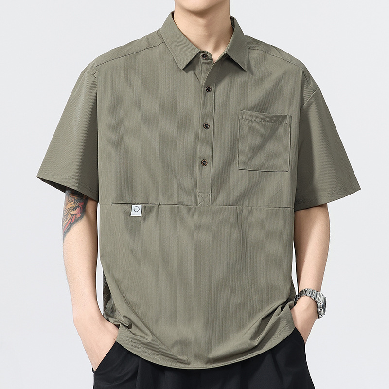 高端美式复古冰丝凉感工装Polo衫男夏季潮牌宽松衬衫领短袖T恤男