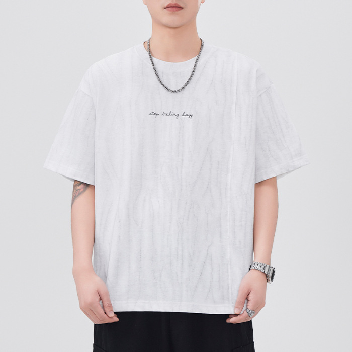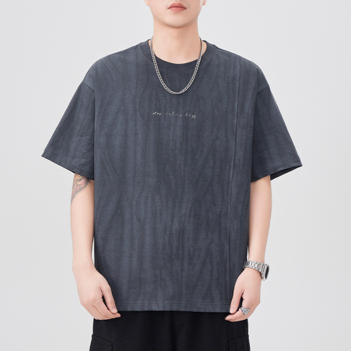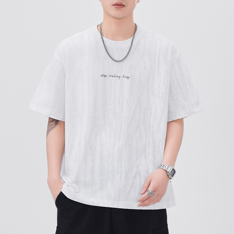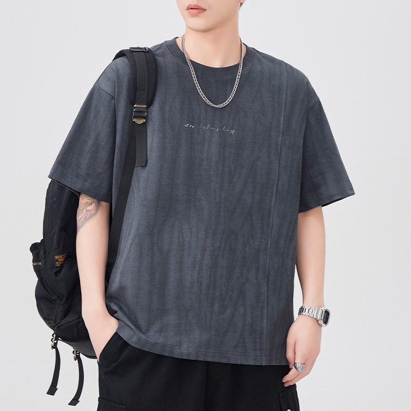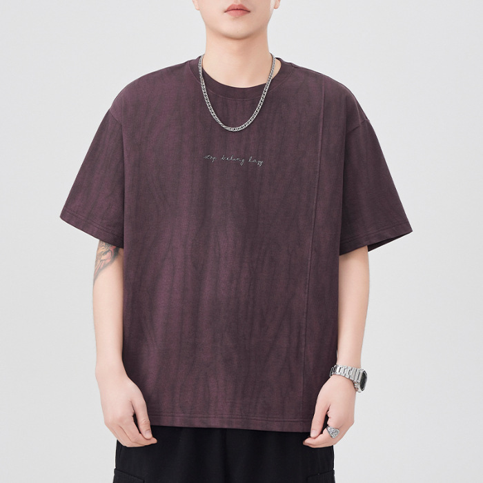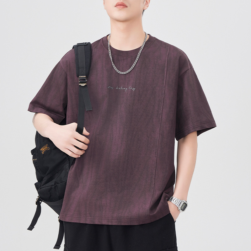 210g印花圆领t恤衫男短袖夏季2025新款宽松休闲潮牌大码紫色体恤