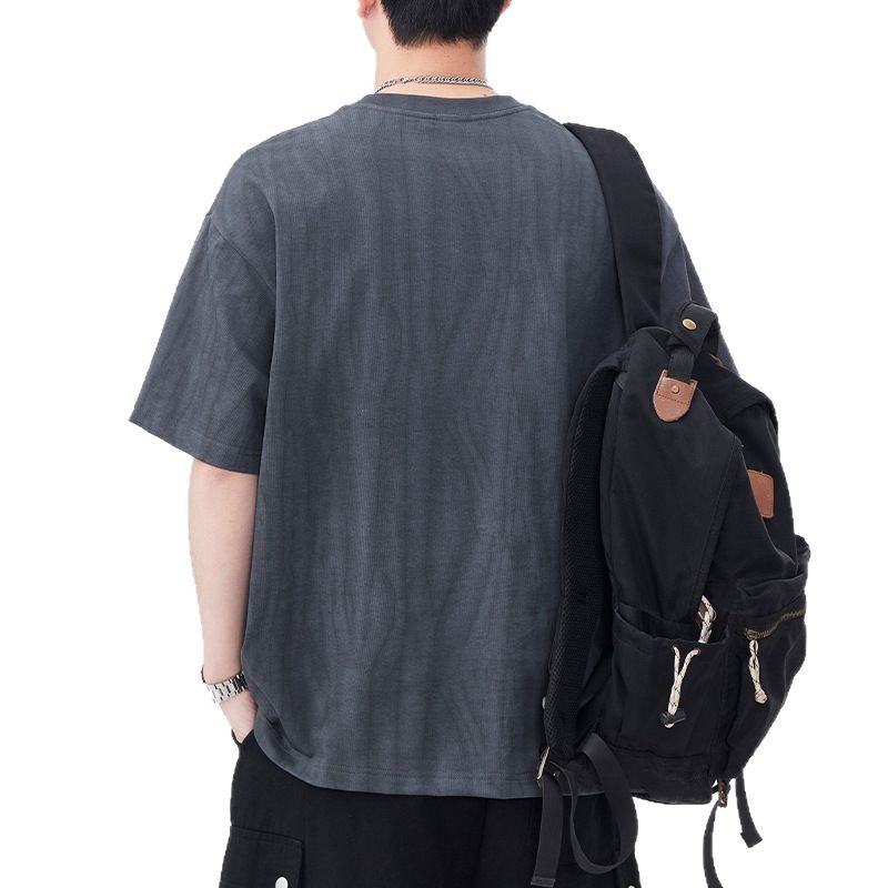 美式复古刺绣亨利领短袖t恤男士夏季新款宽松大码插肩袖体恤上衣