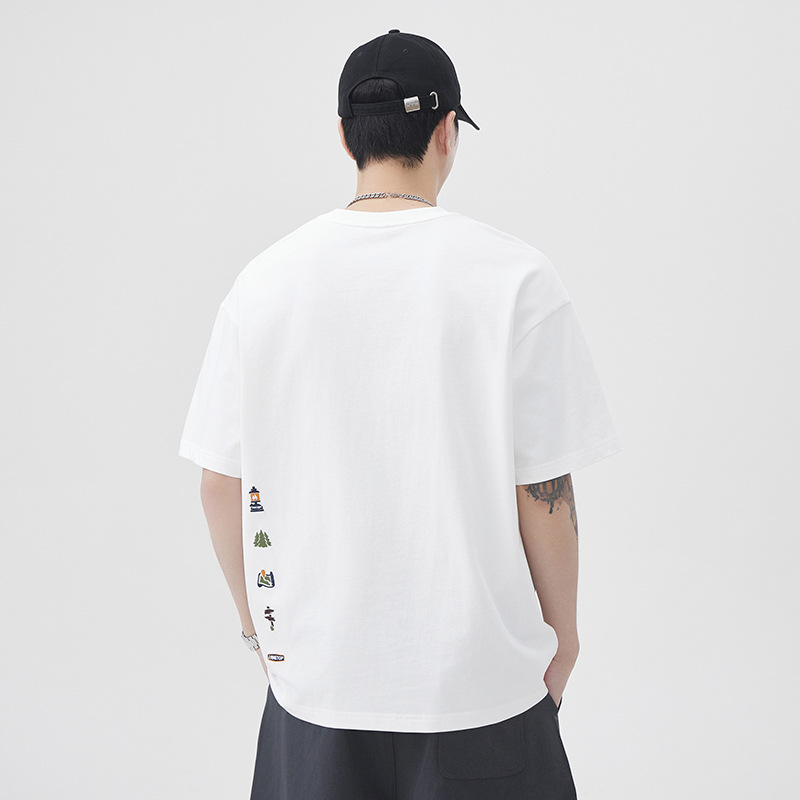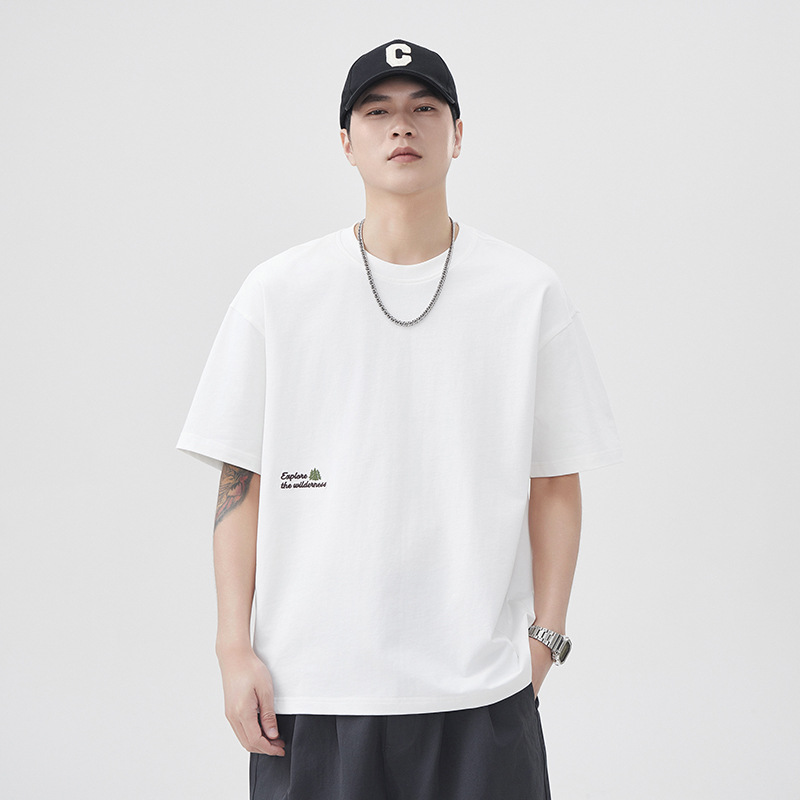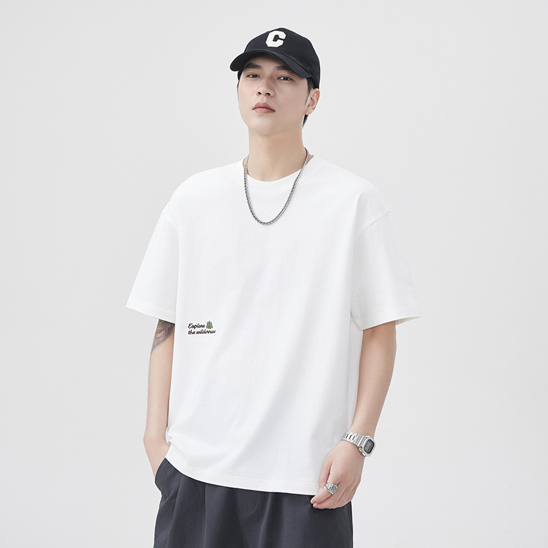 250g夏季纯棉短袖T恤男款2025新款字母刺绣高级感休闲上衣