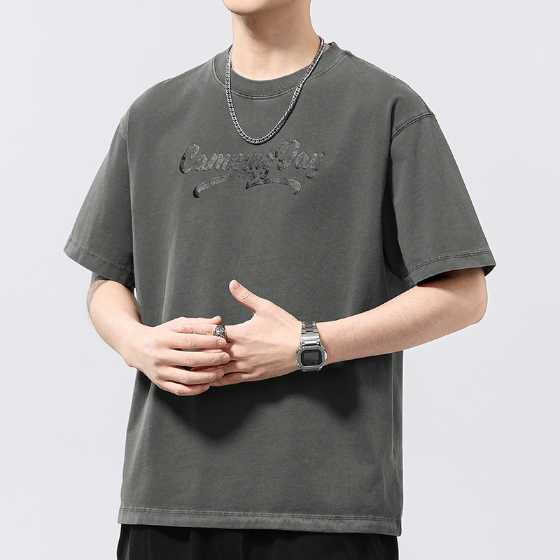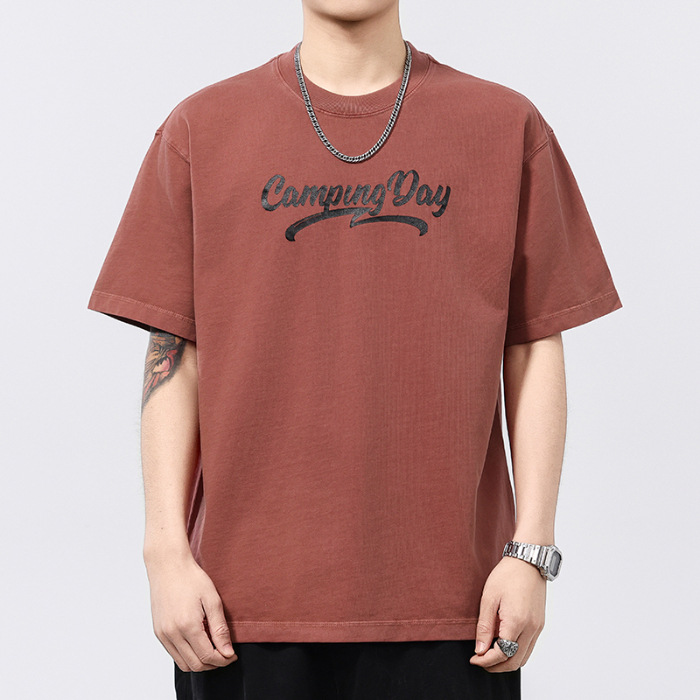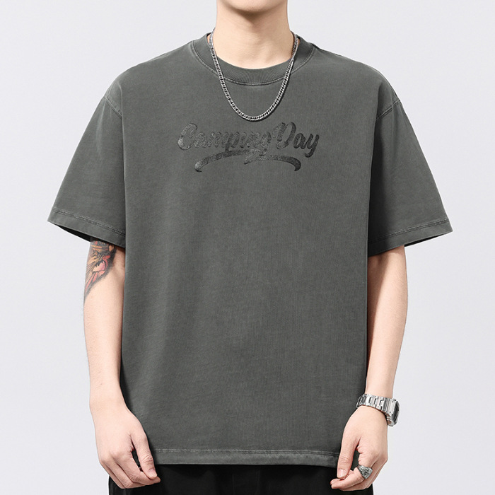 字母印花圆领t恤男士短袖夏季新款潮牌大码半袖男装美式宽松上衣