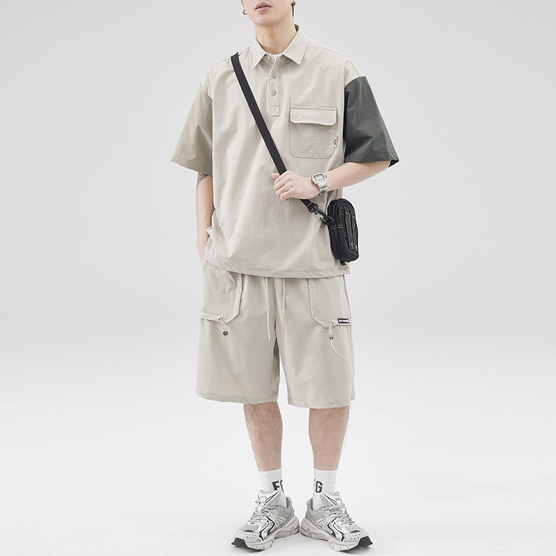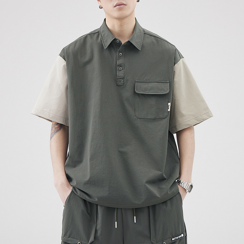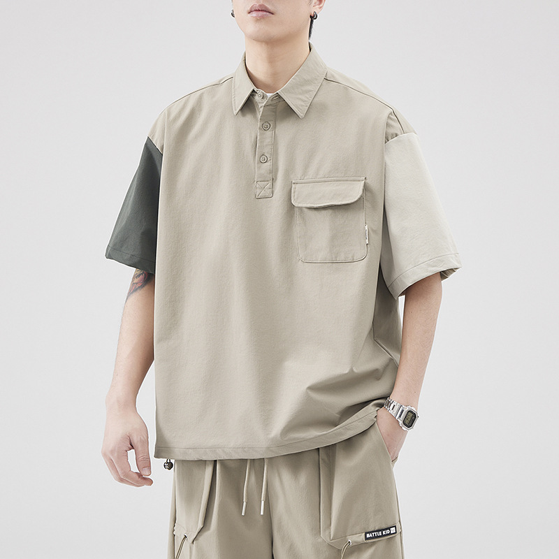 工装短袖衬衫男生夏季2025新款美式休闲宽松polo衫男士T恤男