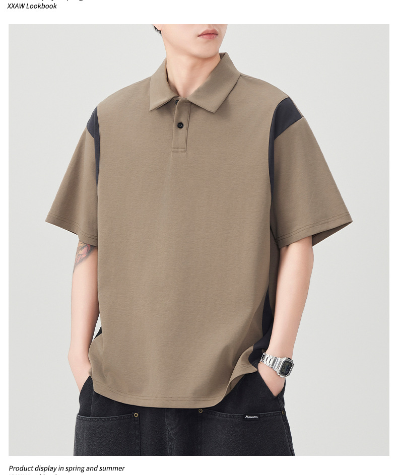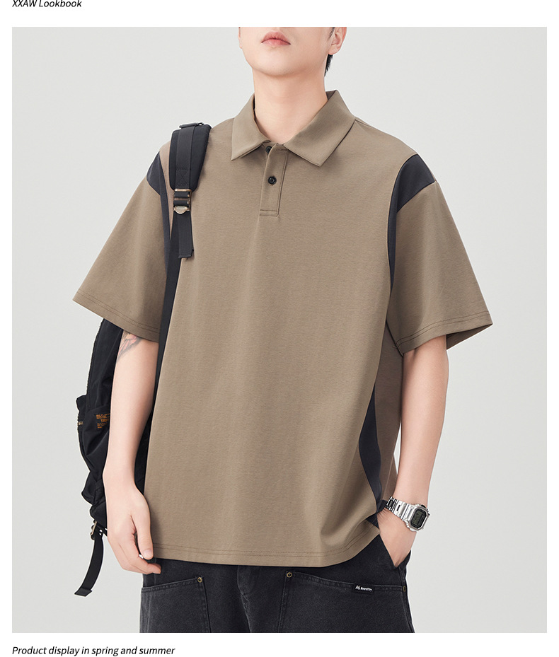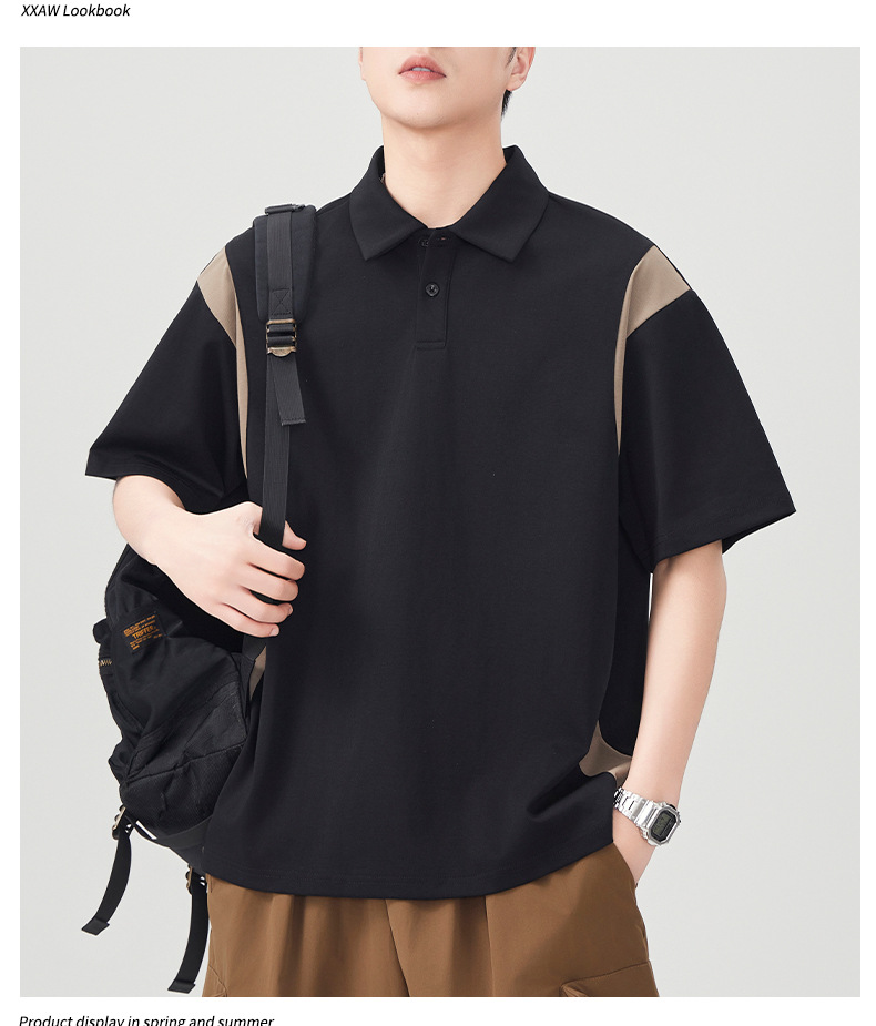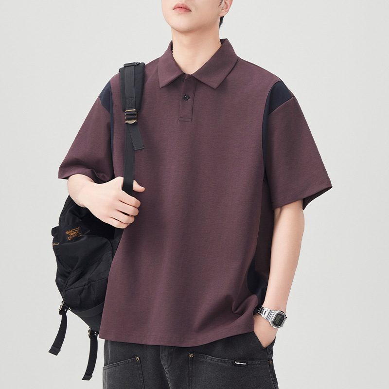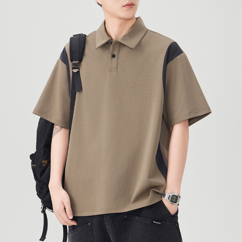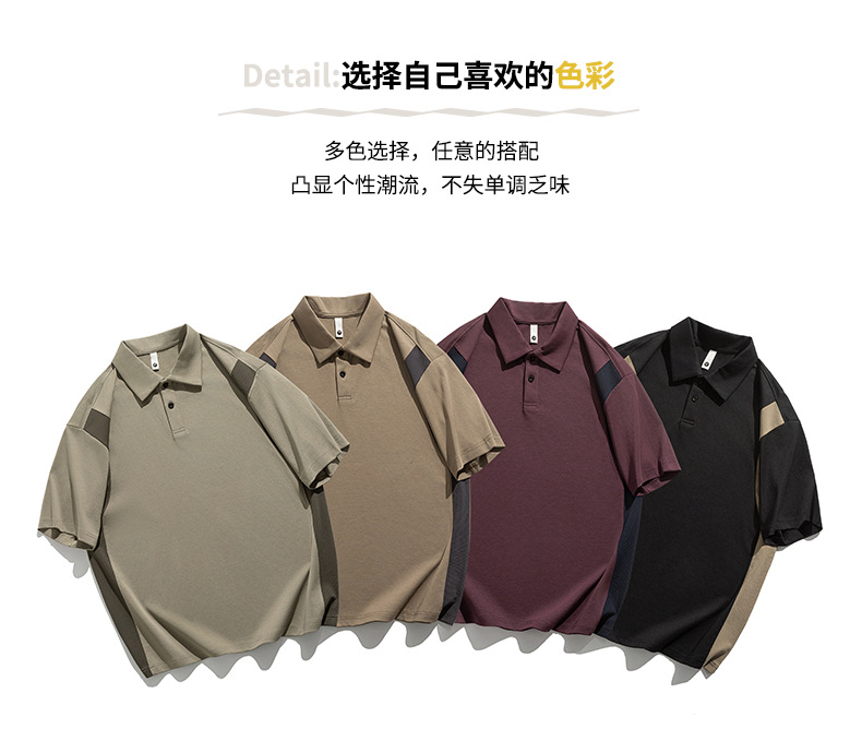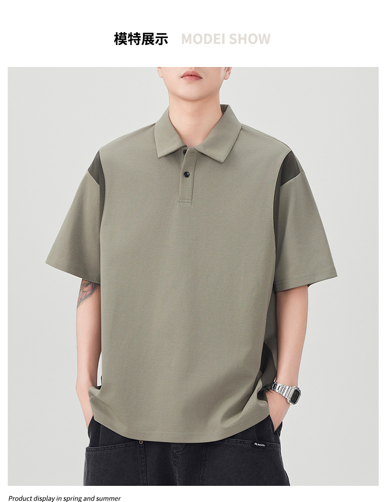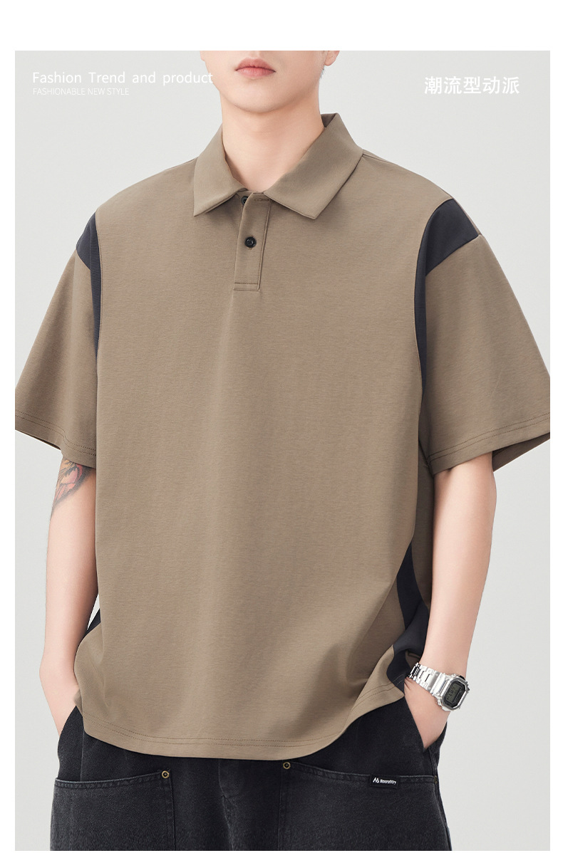 撞色拼接Polo衫短袖t恤男潮牌大码夏季2025新款高端复古男款体恤