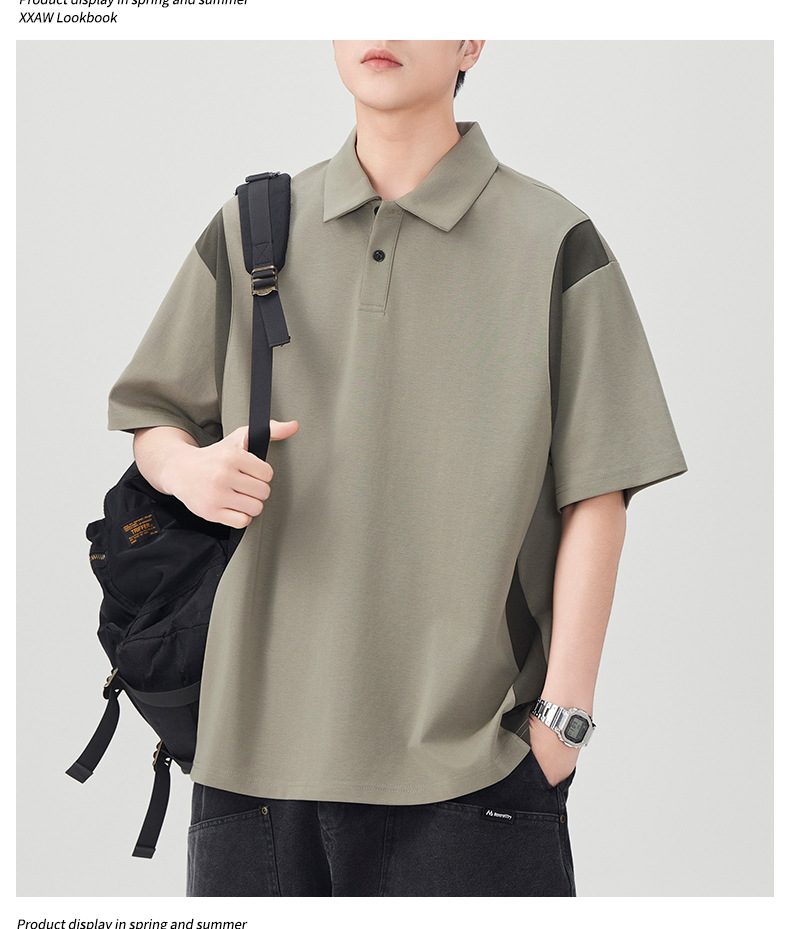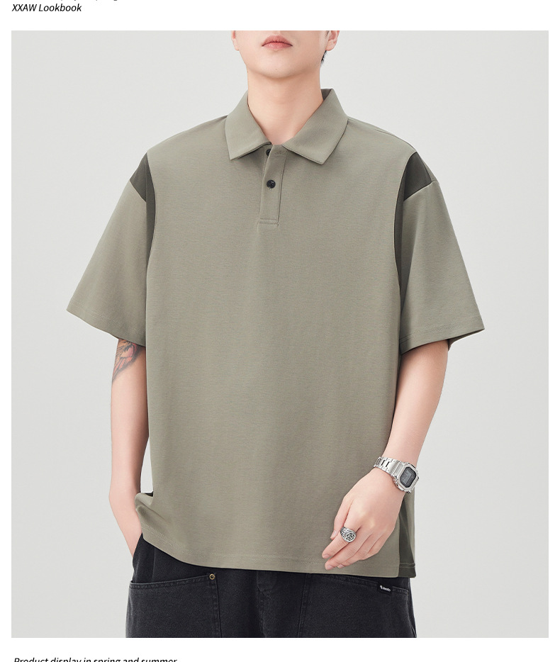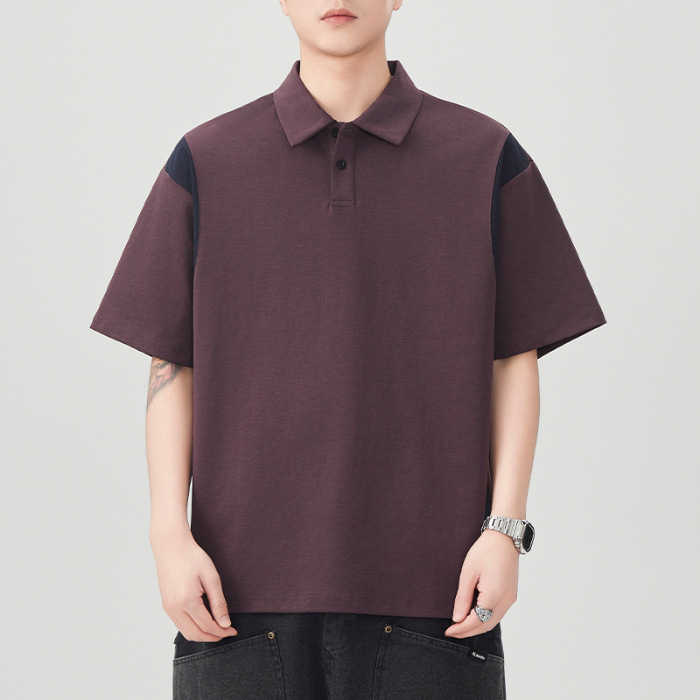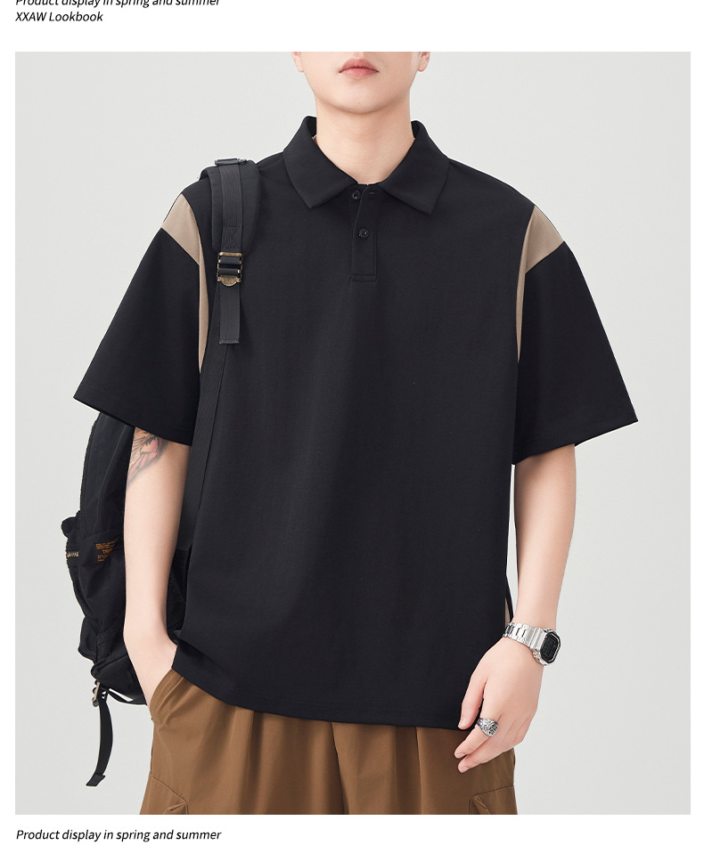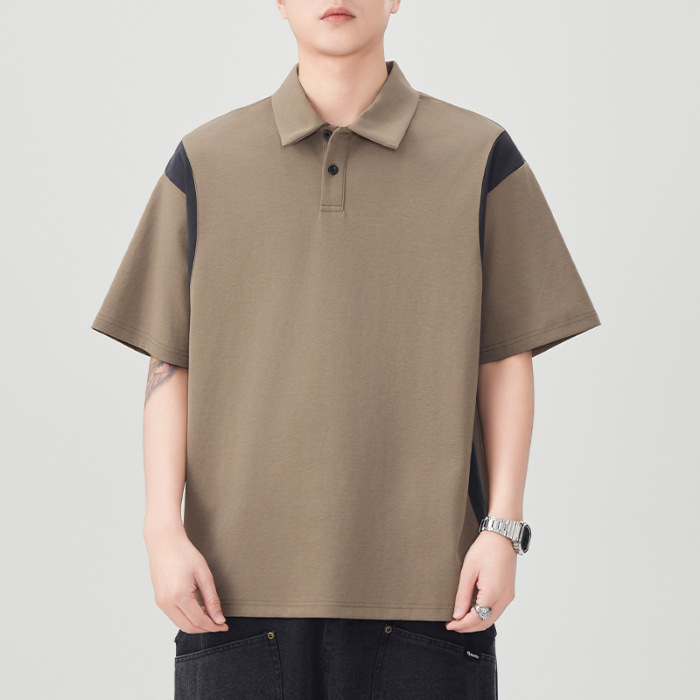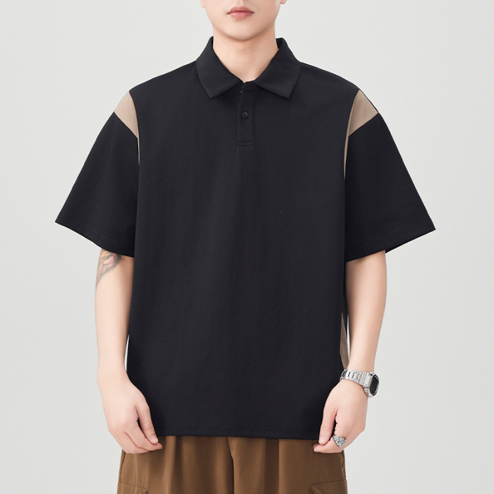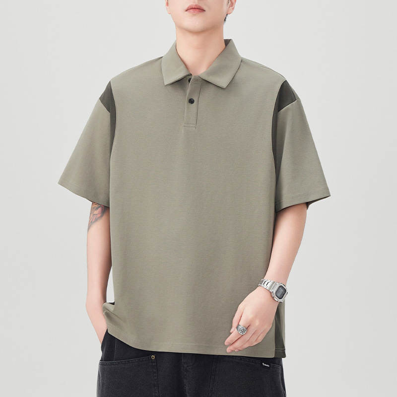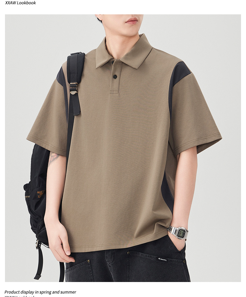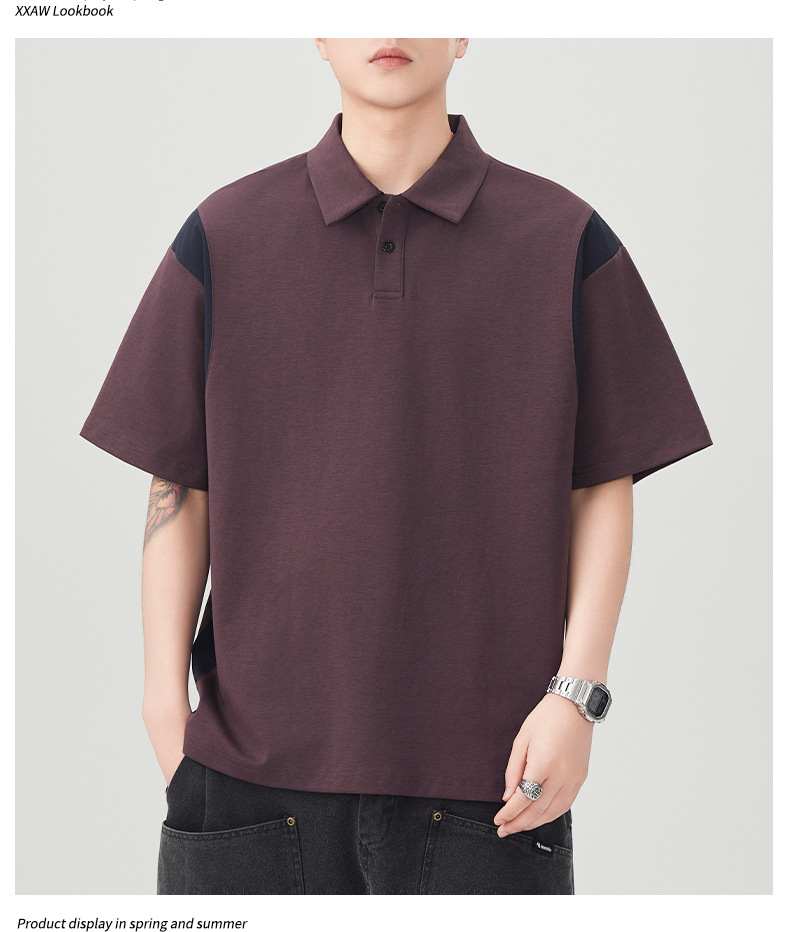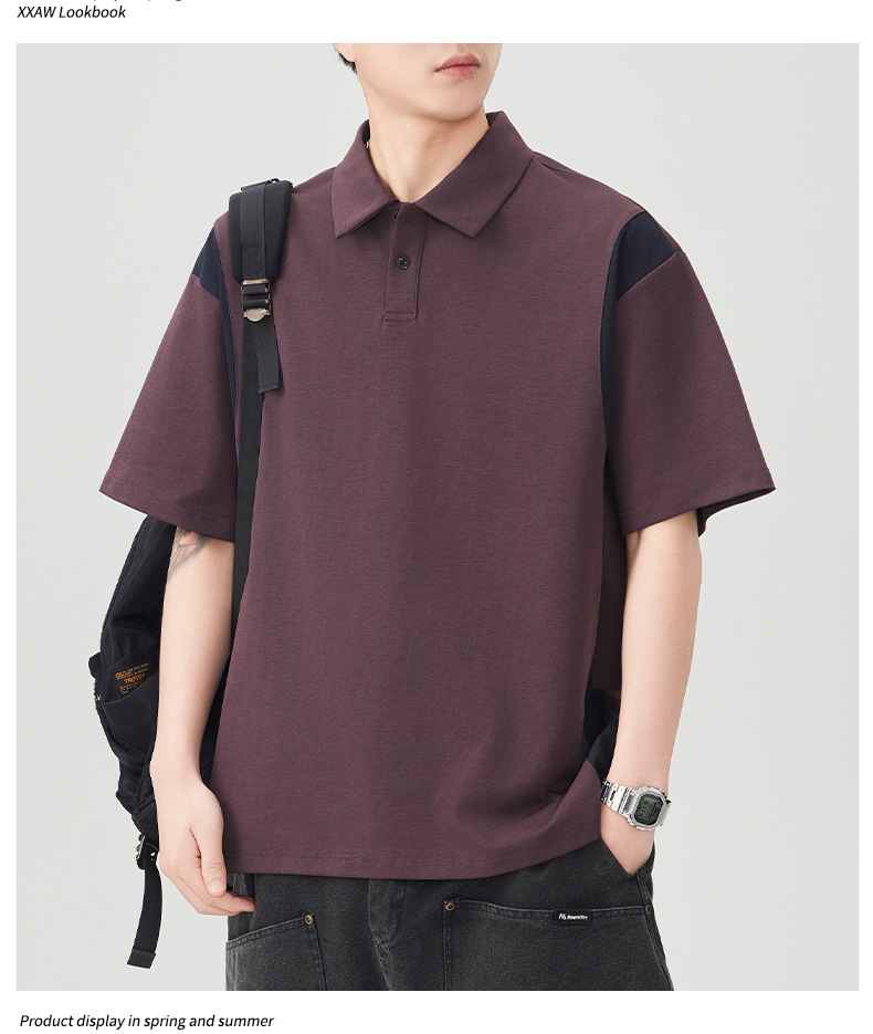 撞色拼接Polo衫短袖t恤男潮牌大码夏季2025新款高端复古男款体恤