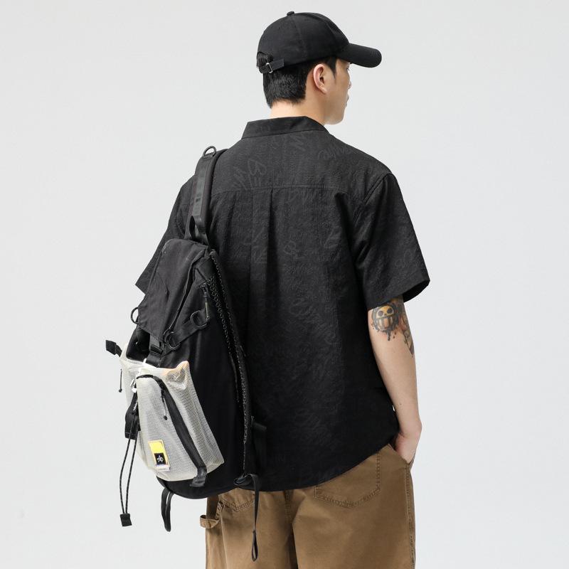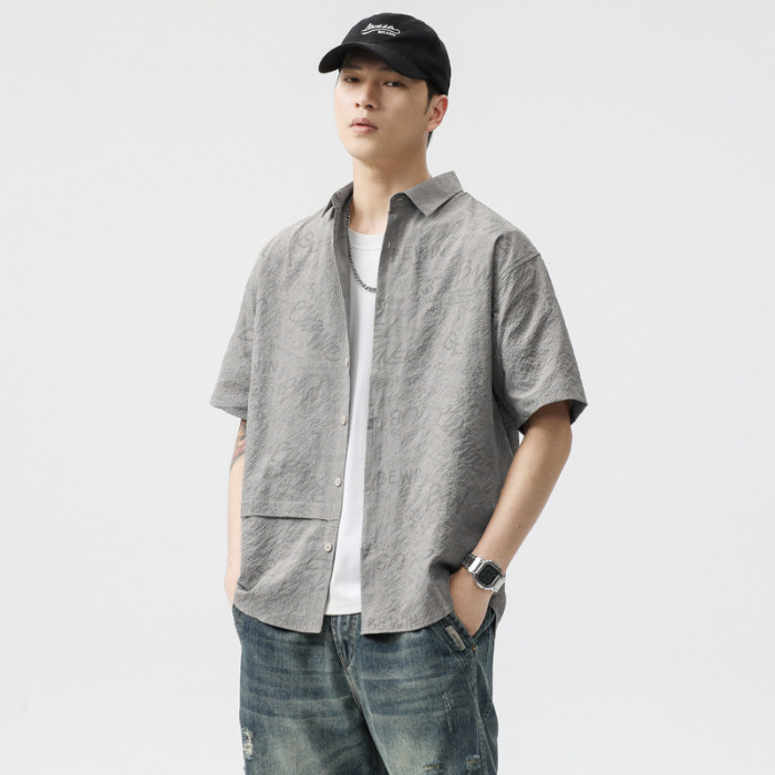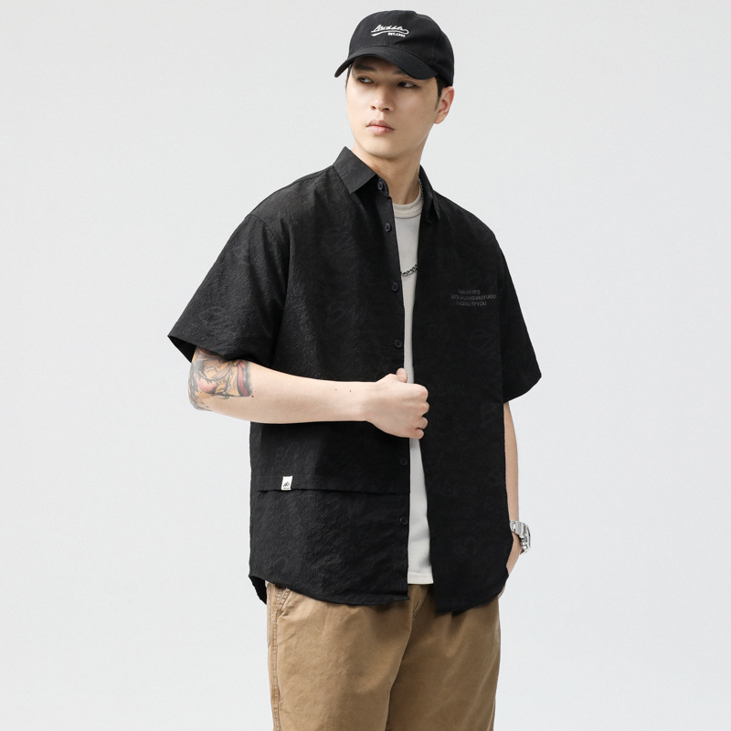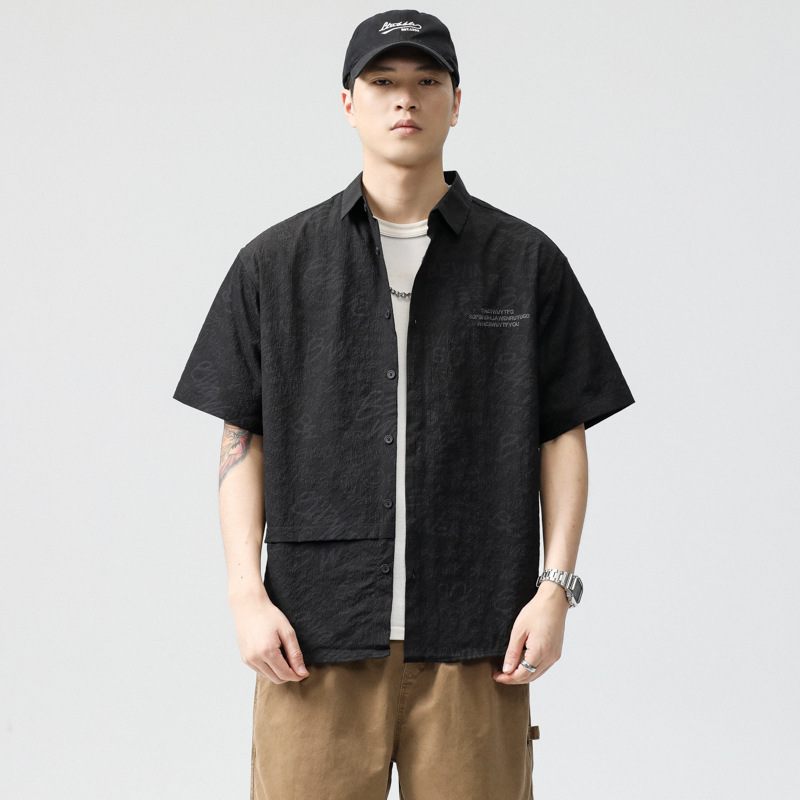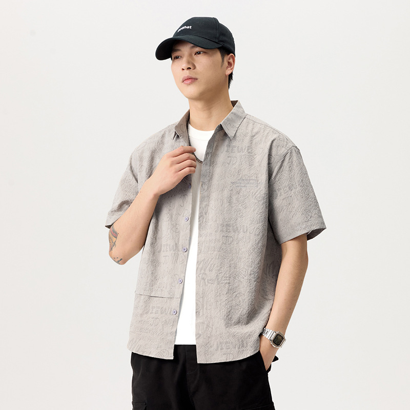 2025夏季新款薄款冰丝速干短袖衬衫男宽松肌理感提花凉感衬衣短袖
