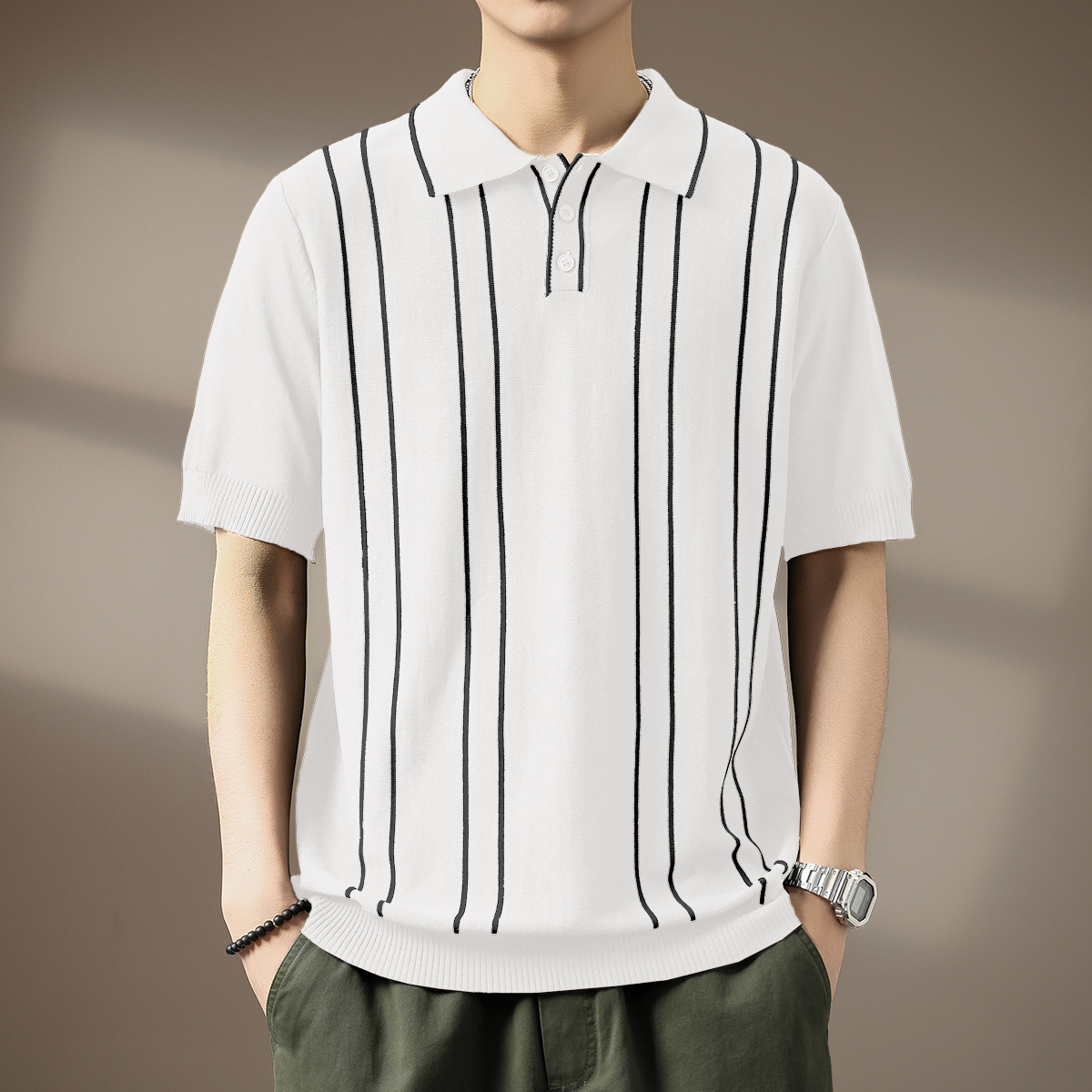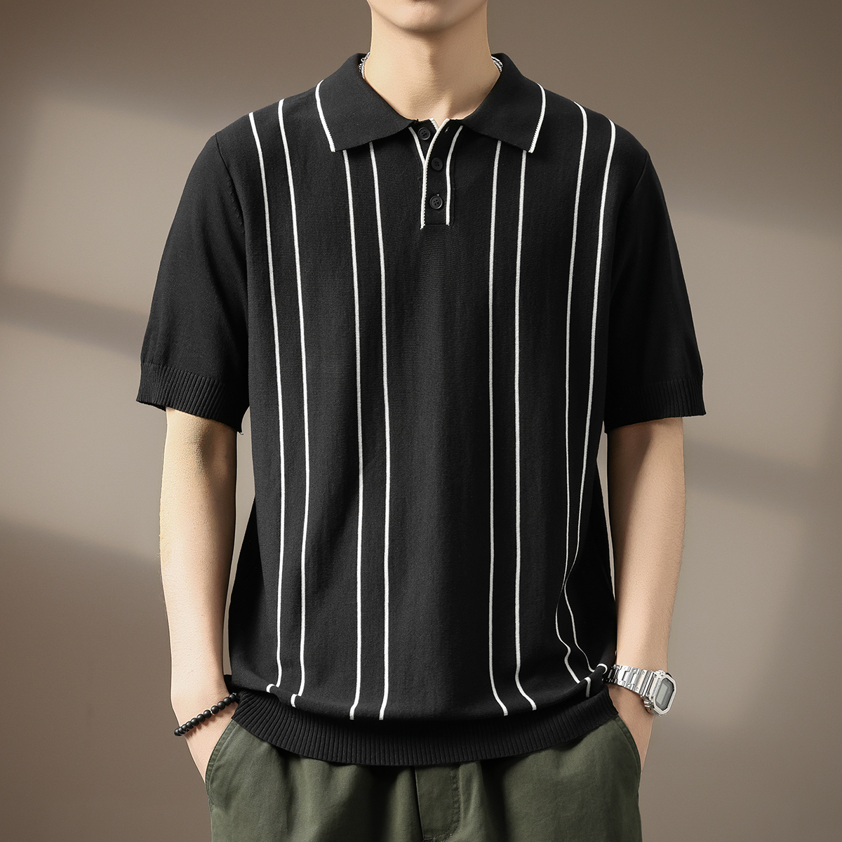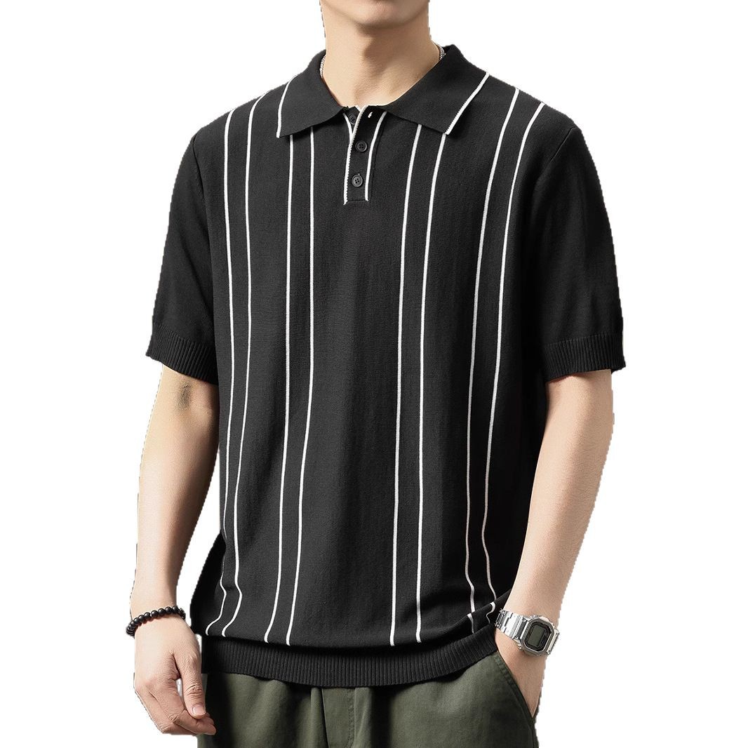 高端凉感冰丝轻奢条纹针织Polo衫男夏季轻商务休闲保罗短袖t恤男