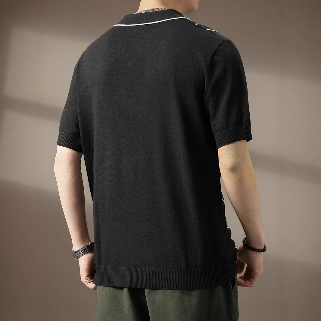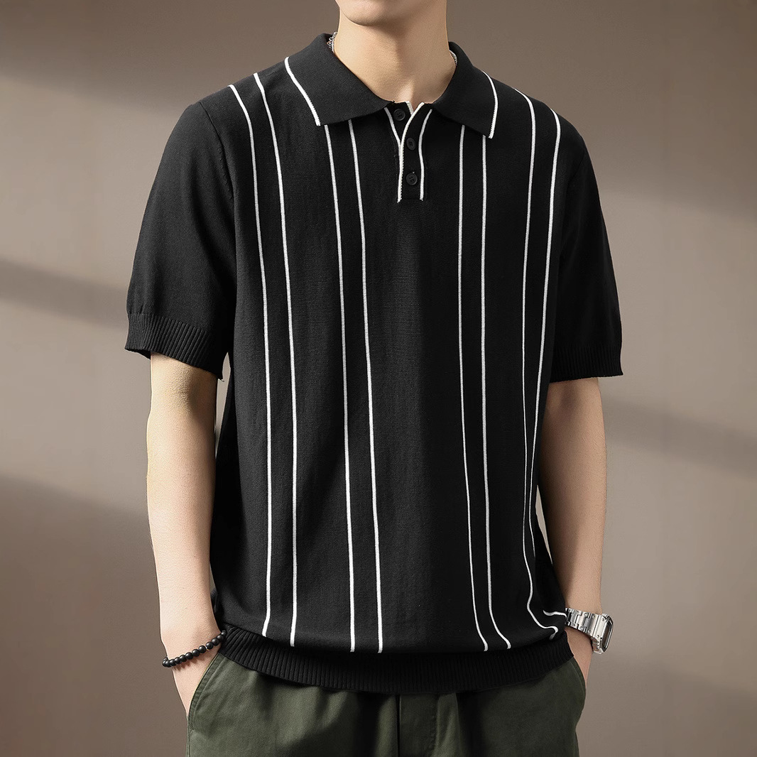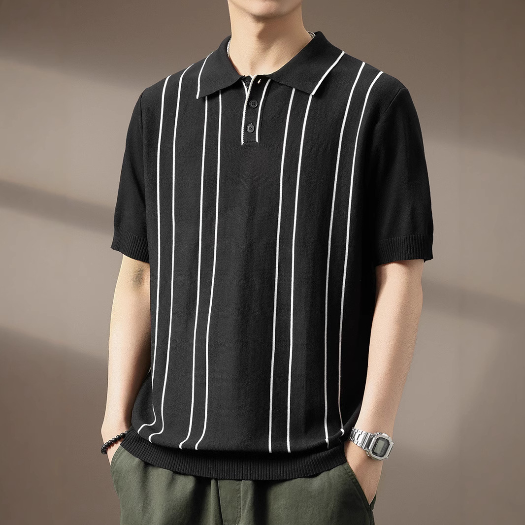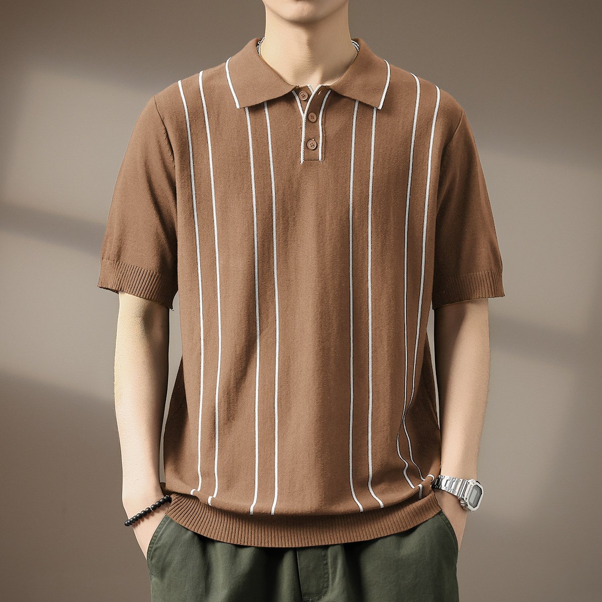 高端凉感冰丝轻奢条纹针织Polo衫男夏季轻商务休闲保罗短袖t恤男