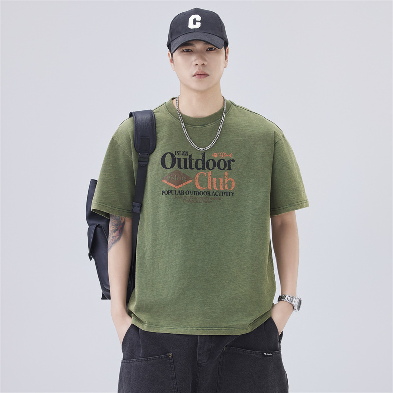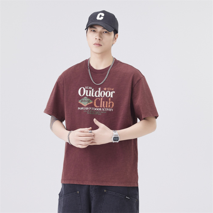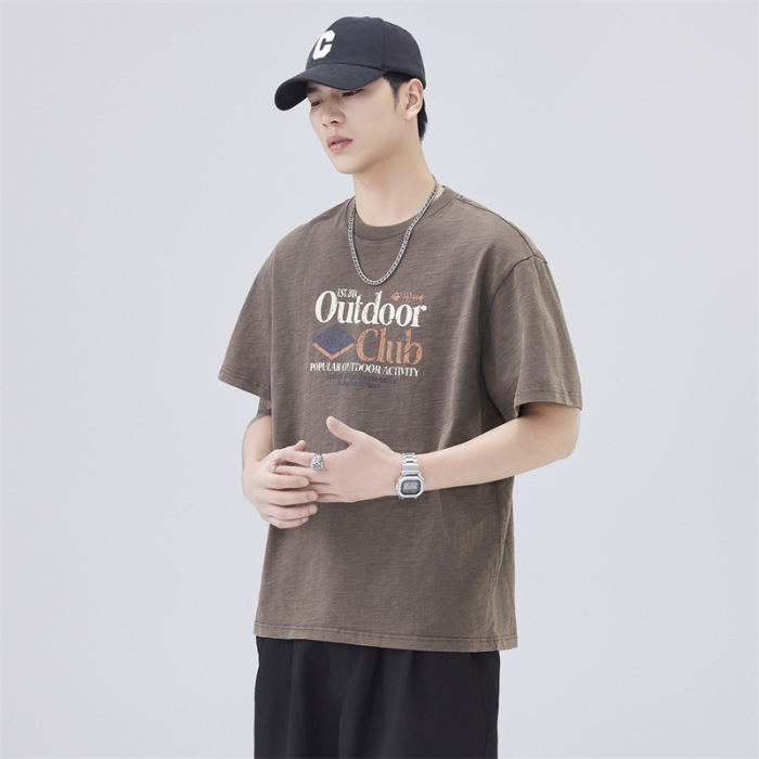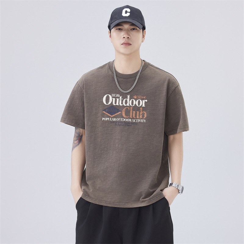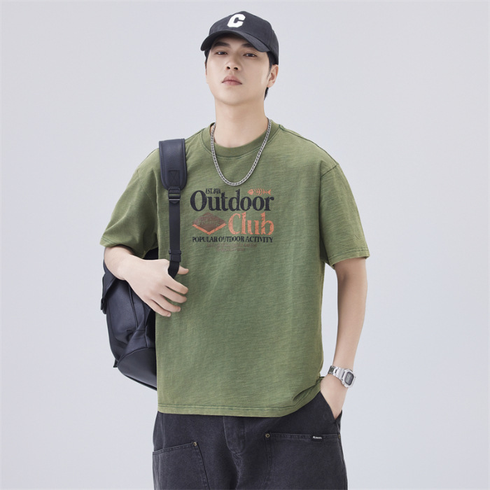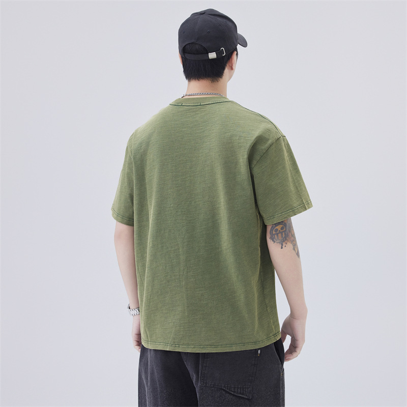 夏季新款短袖t恤男美式复古250g竹节棉圆领宽松日系半袖上衣体恤