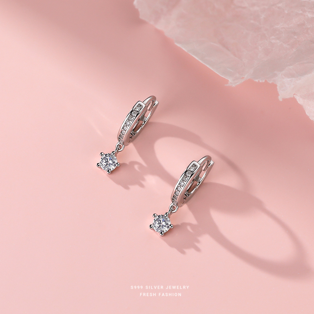 s999足银星星锆石耳圈女轻奢轻奢感闪钻超闪小众小众设计耳环耳扣