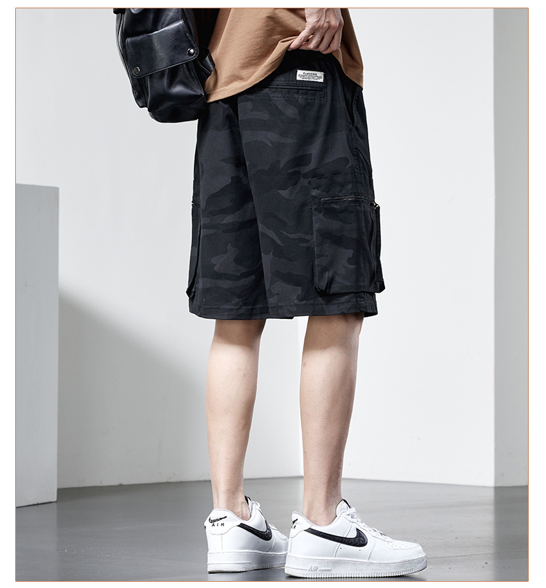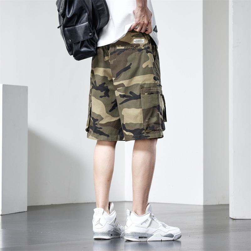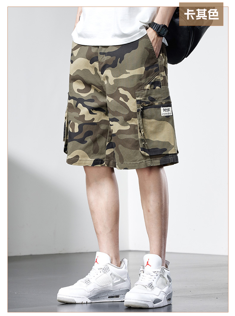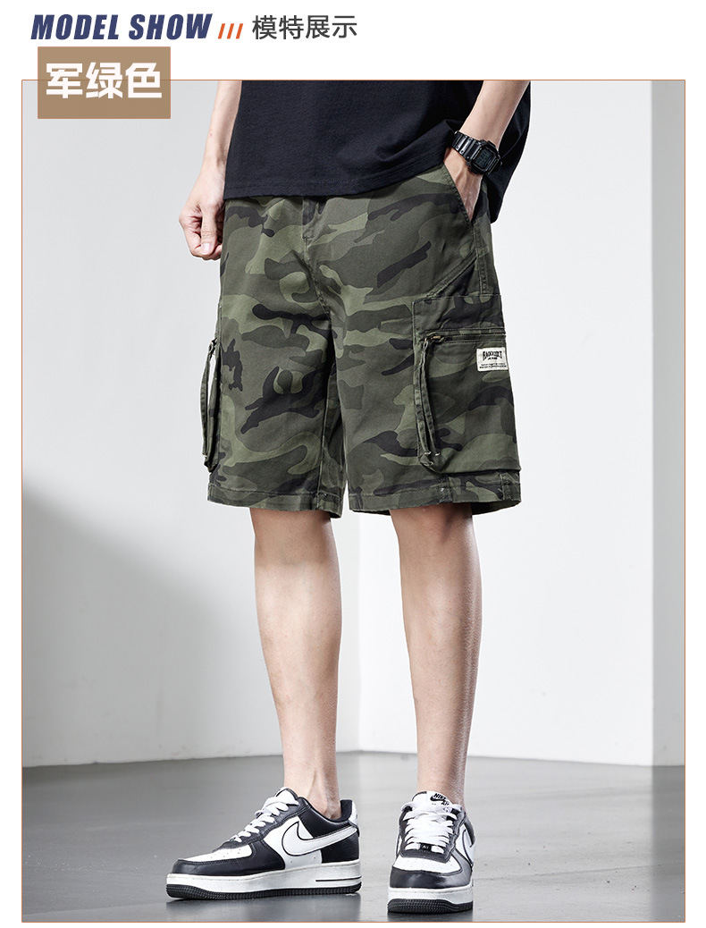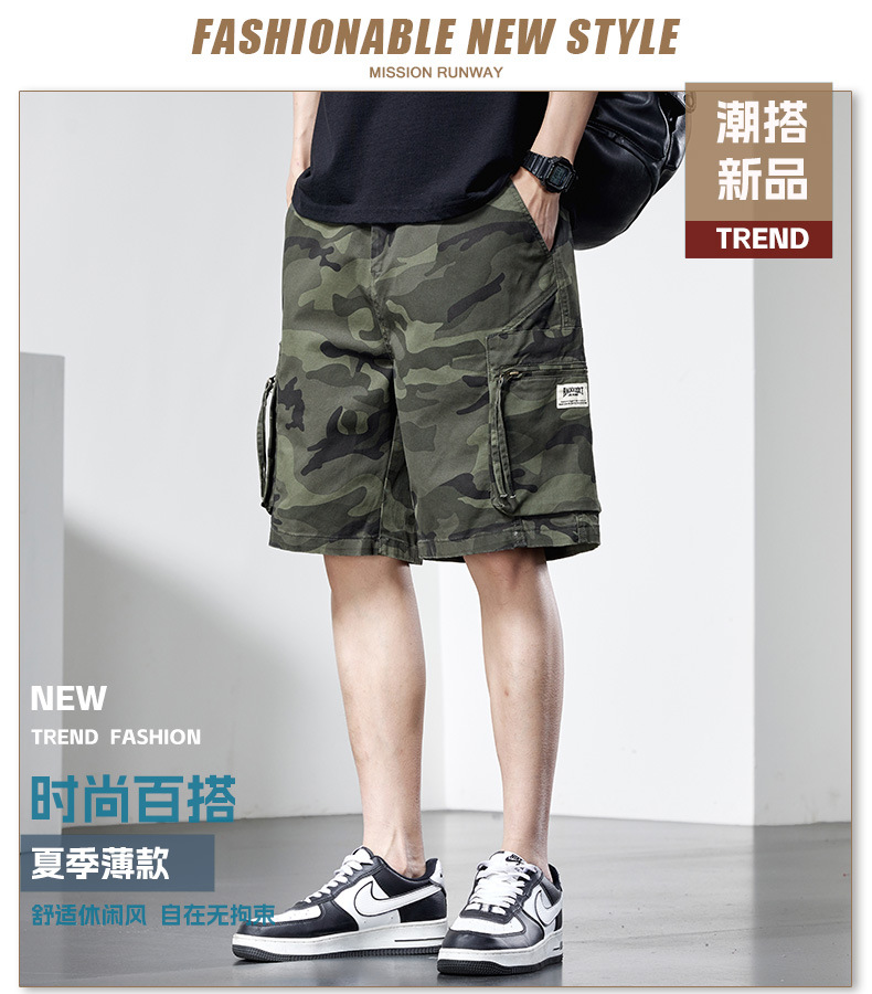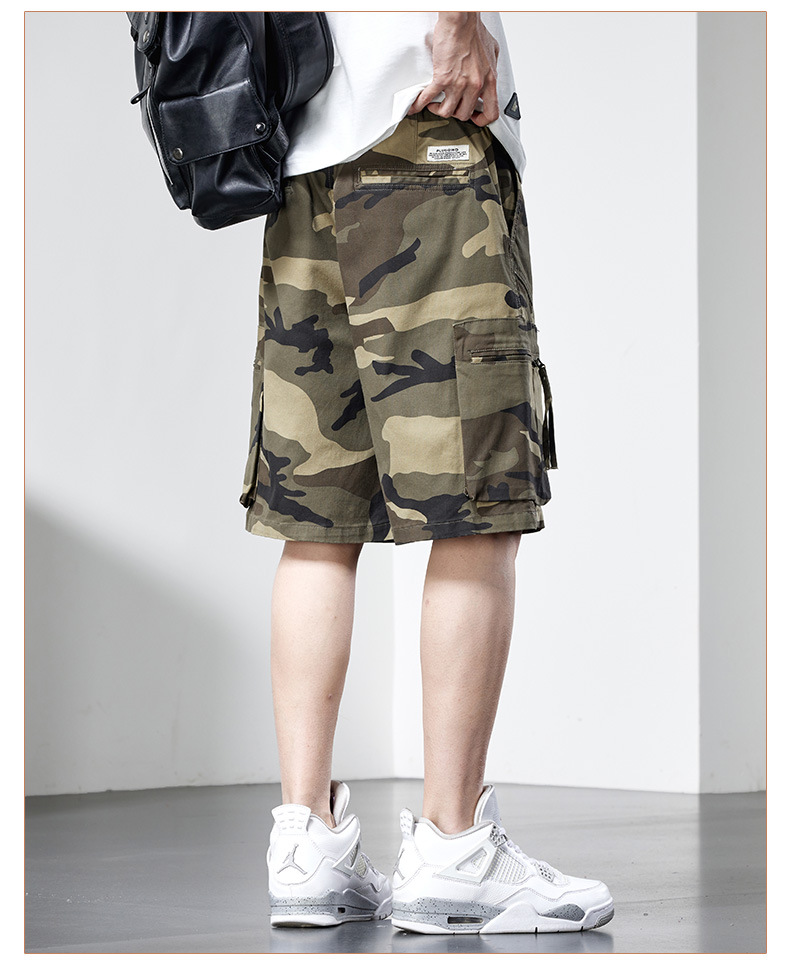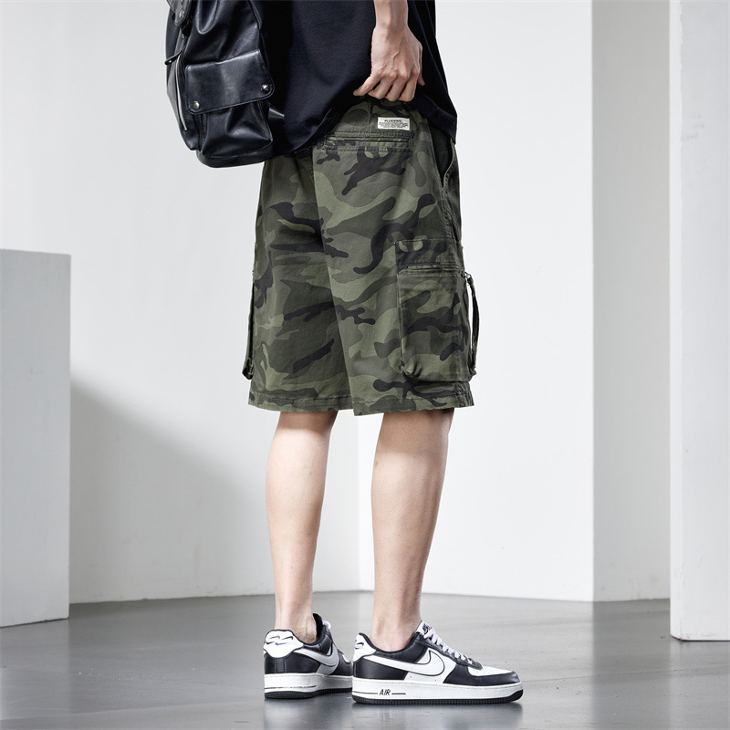 美式复古迷彩工装短裤男夏季薄款潮牌重磅宽松休闲拉链口袋五分裤