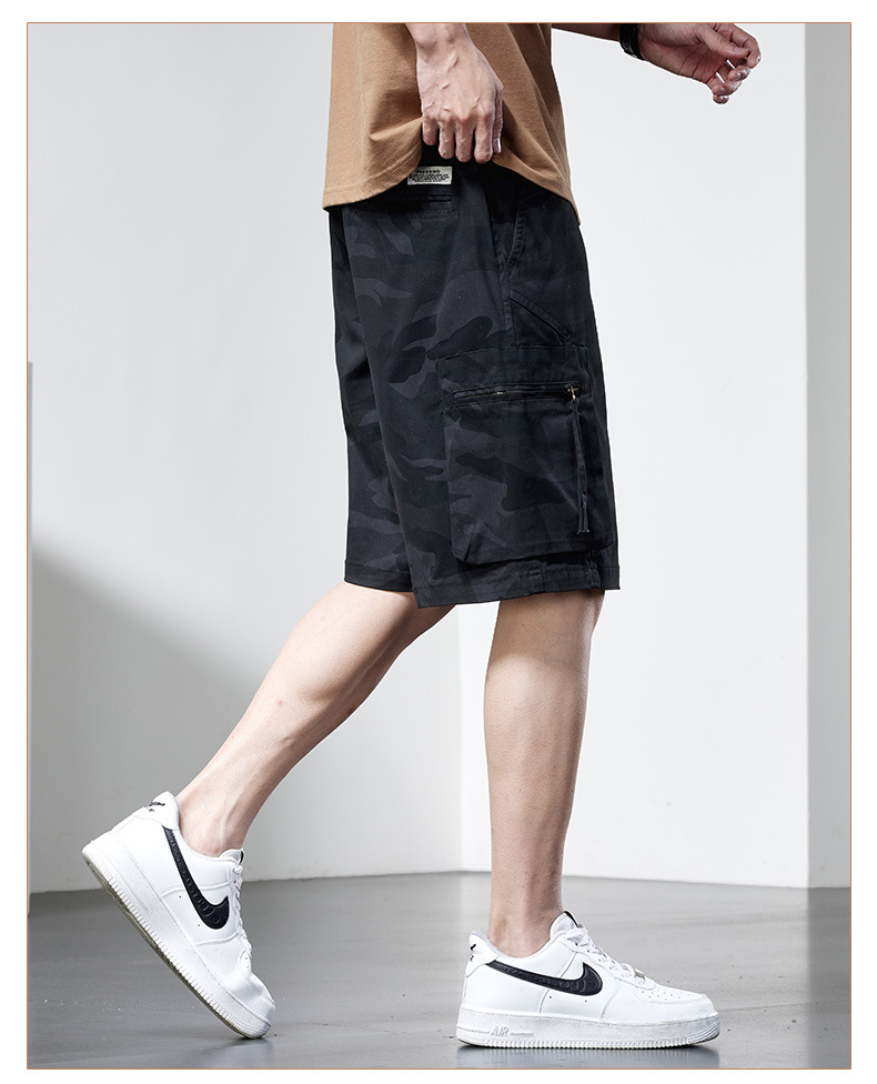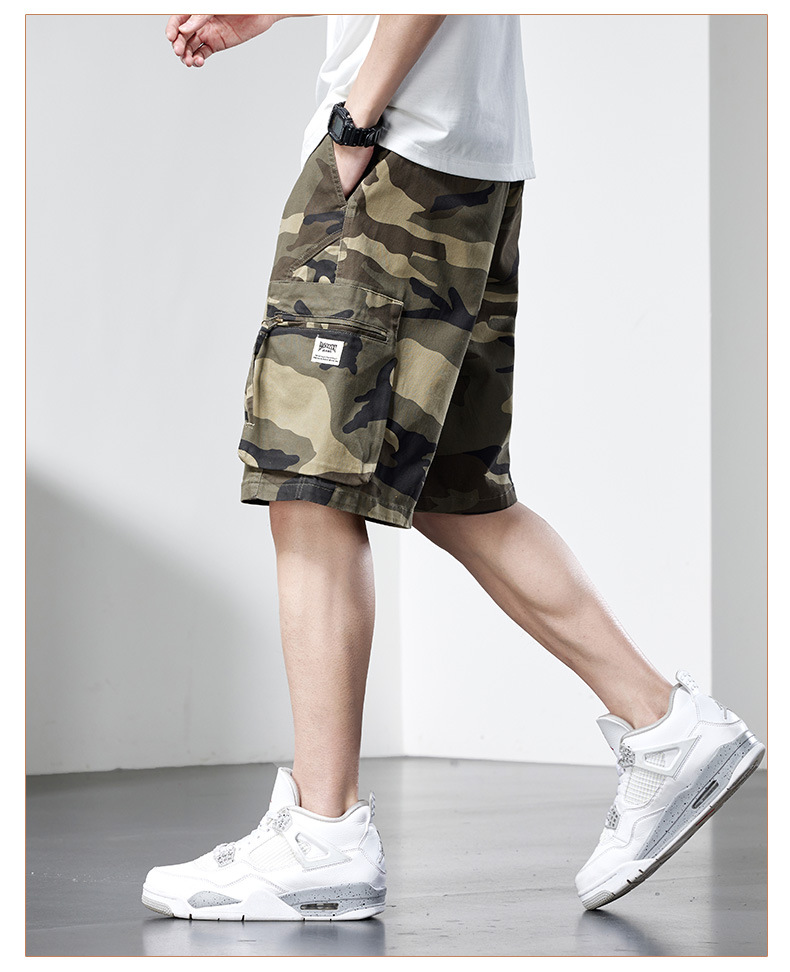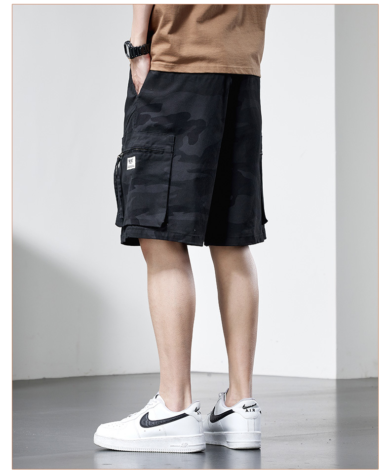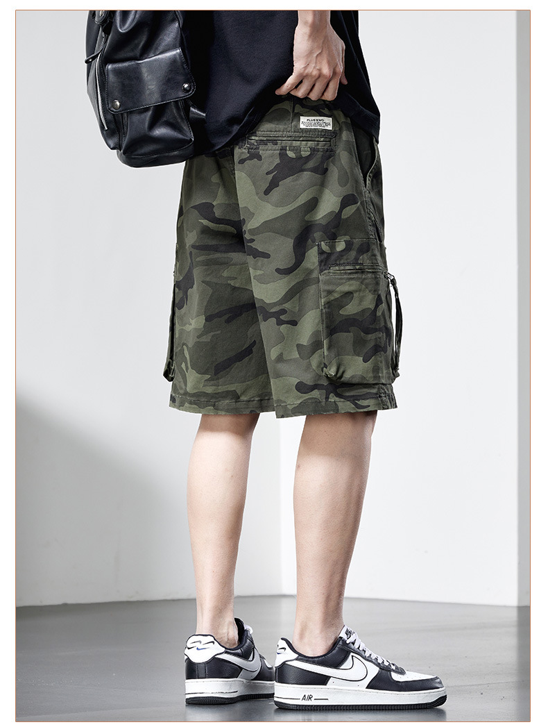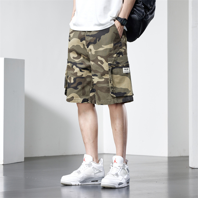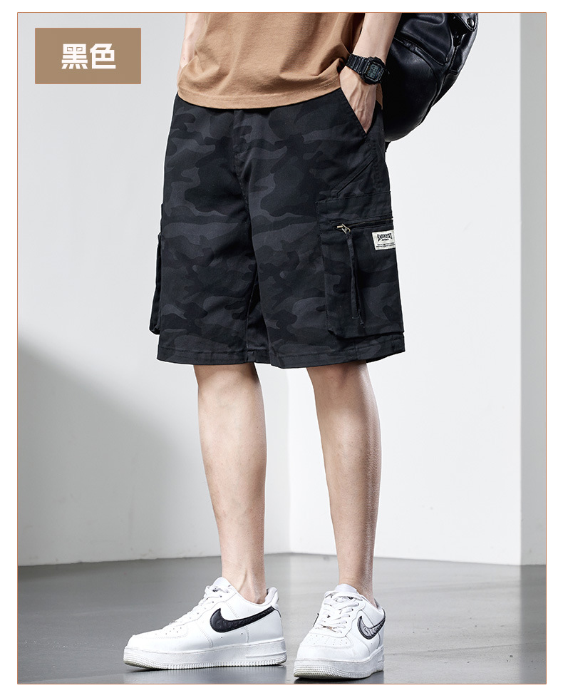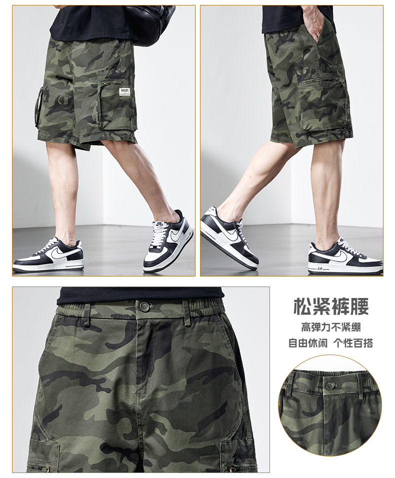 美式复古迷彩工装短裤男夏季薄款潮牌重磅宽松休闲拉链口袋五分裤