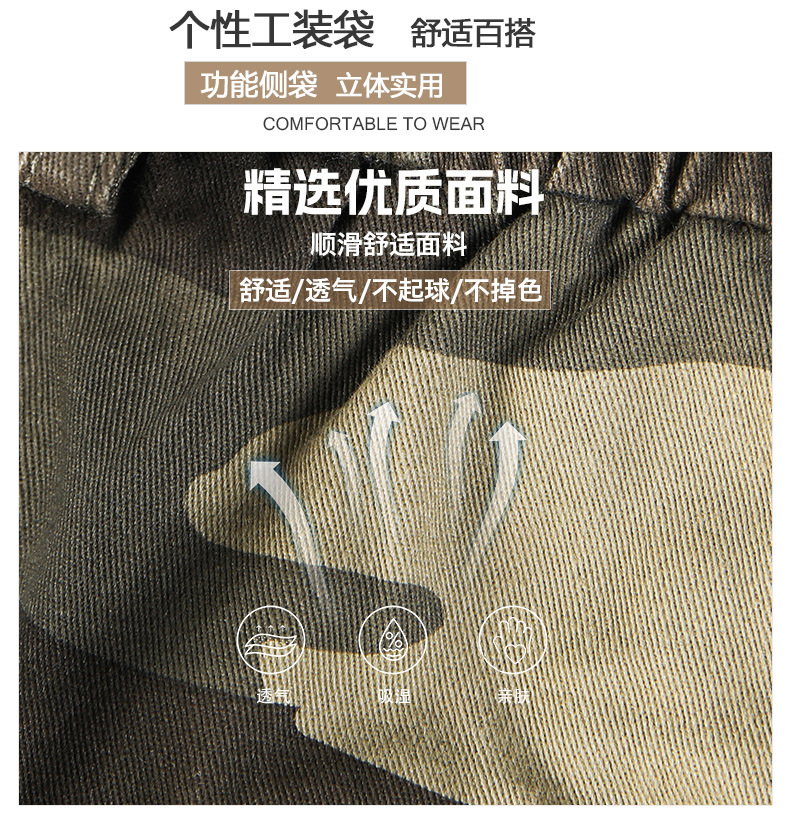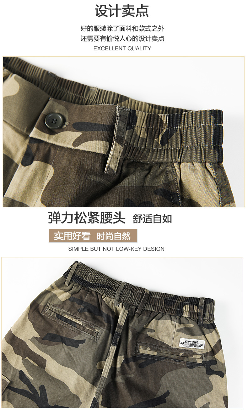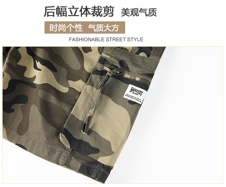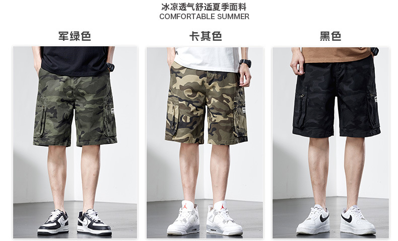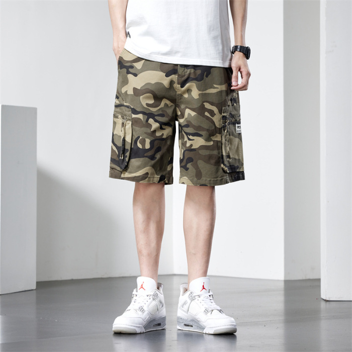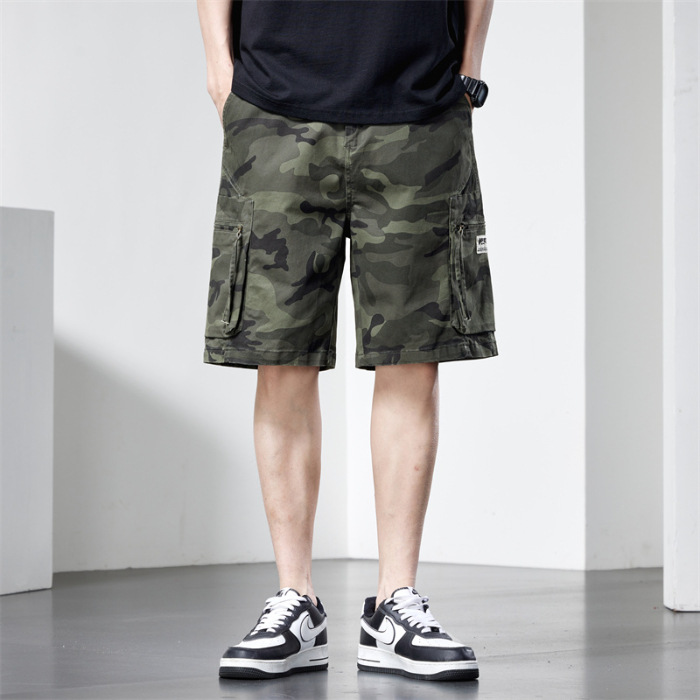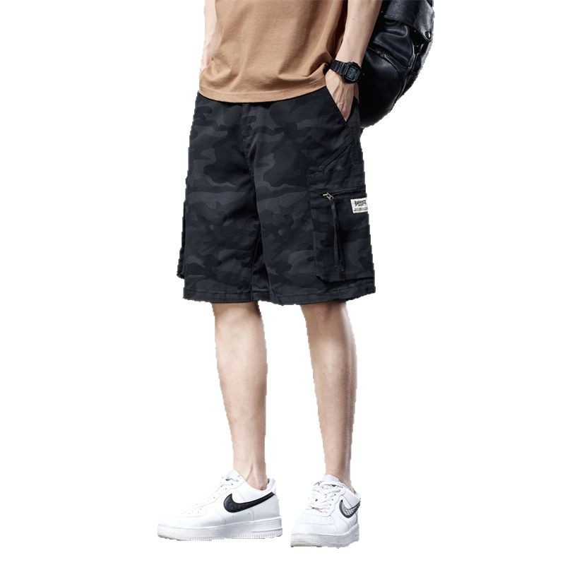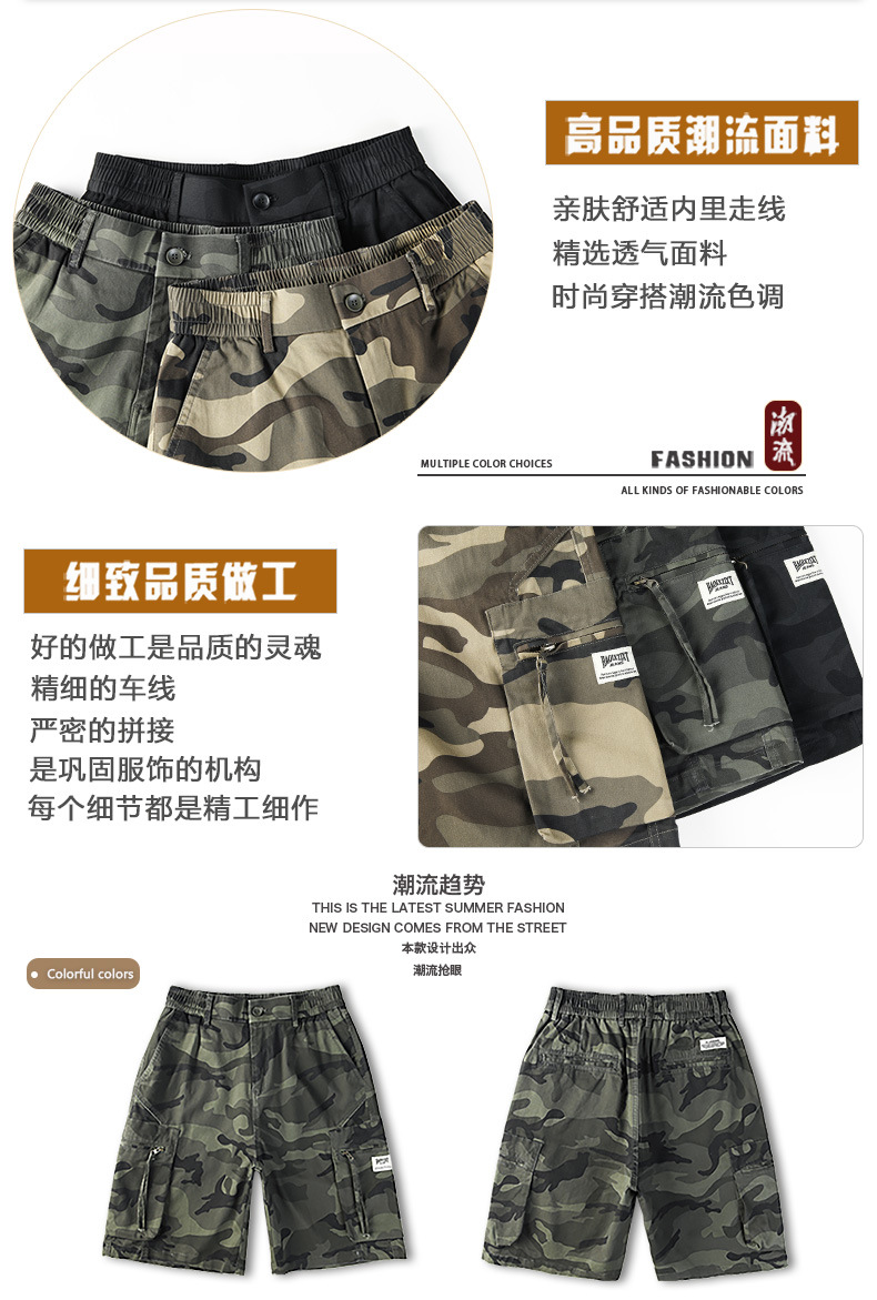 美式复古迷彩工装短裤男夏季薄款潮牌重磅宽松休闲拉链口袋五分裤