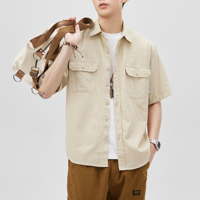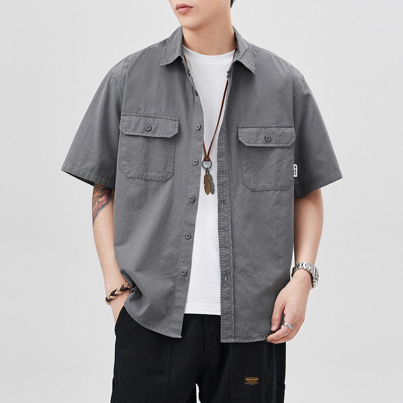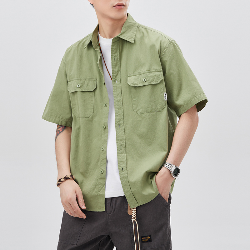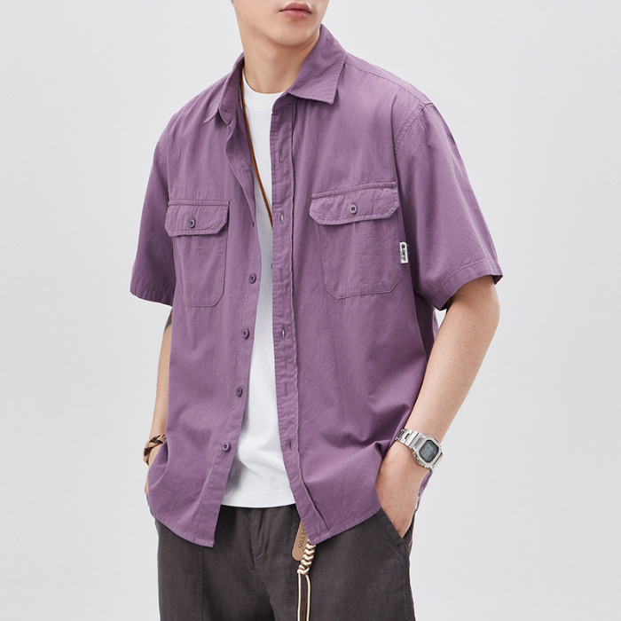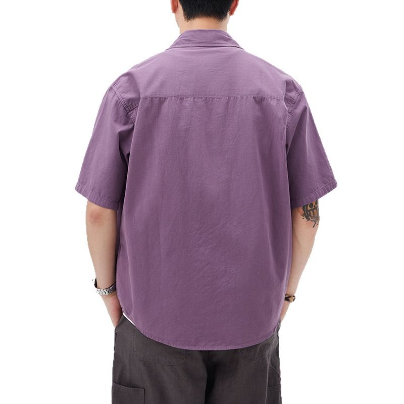 纯棉紫色男士短袖衬衫夏季2025新款衣服大码休闲全棉外套衬衣男款