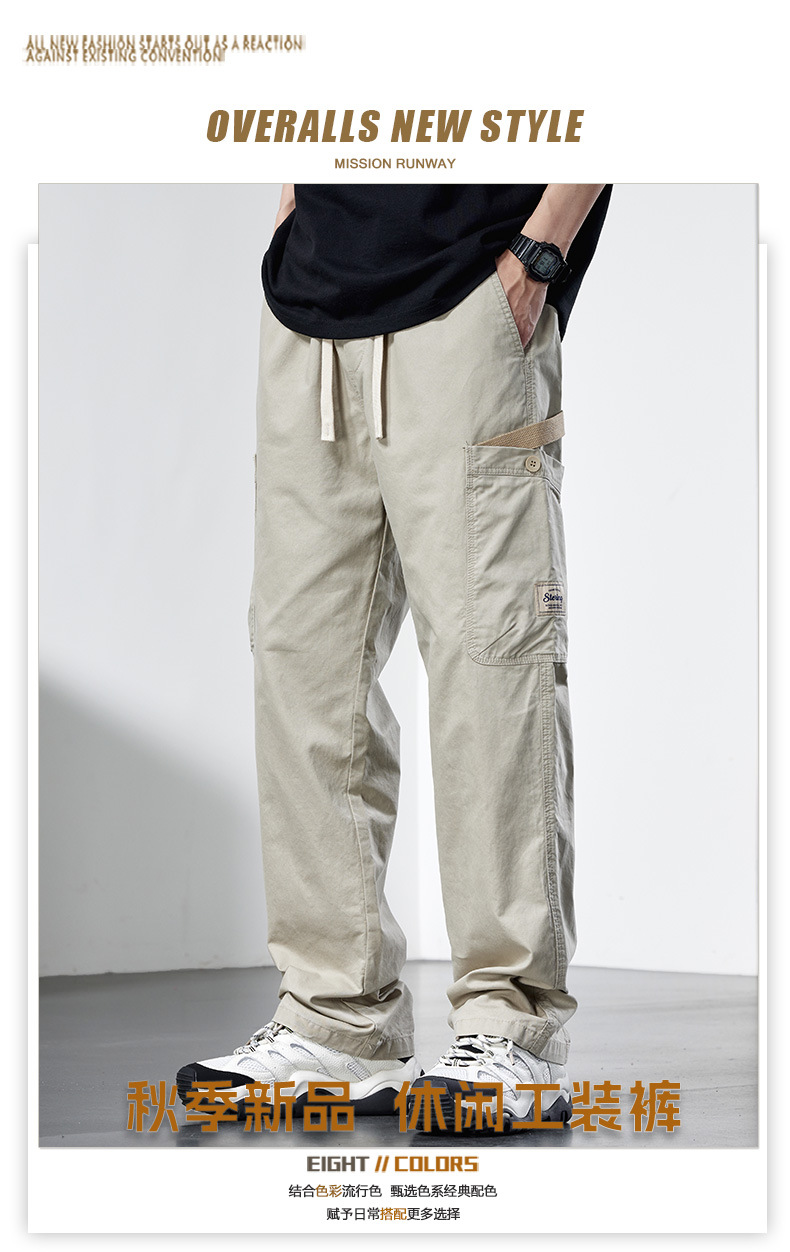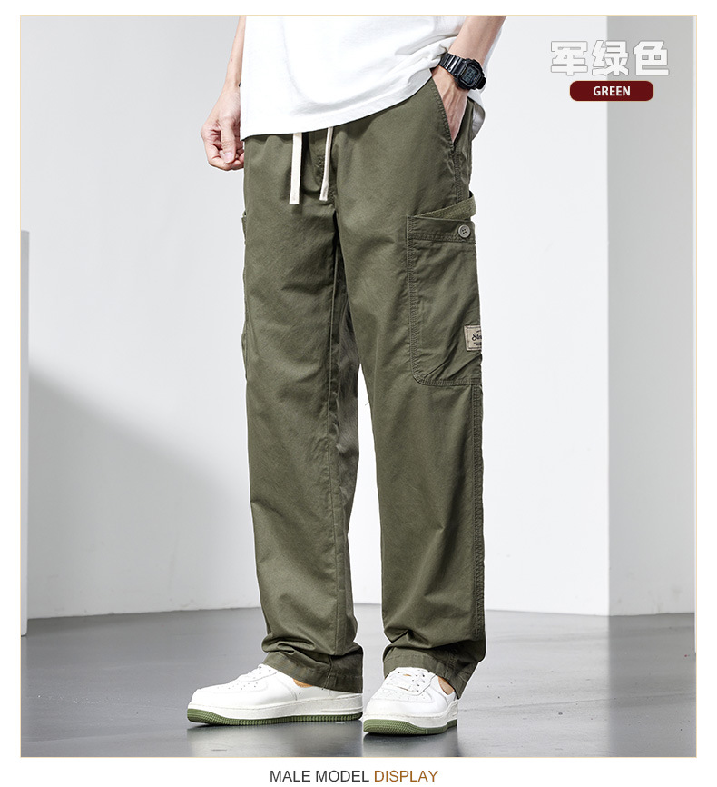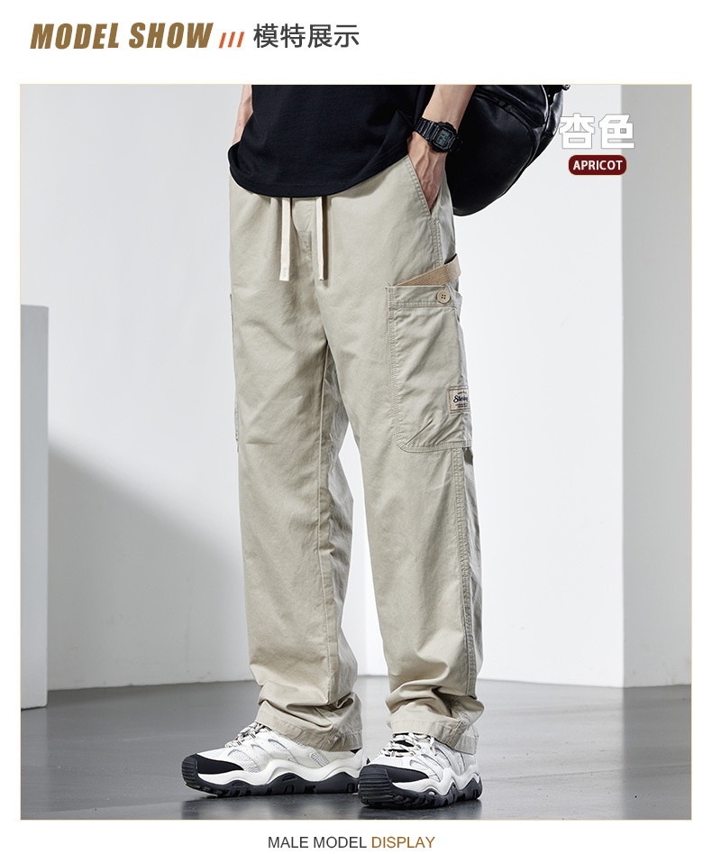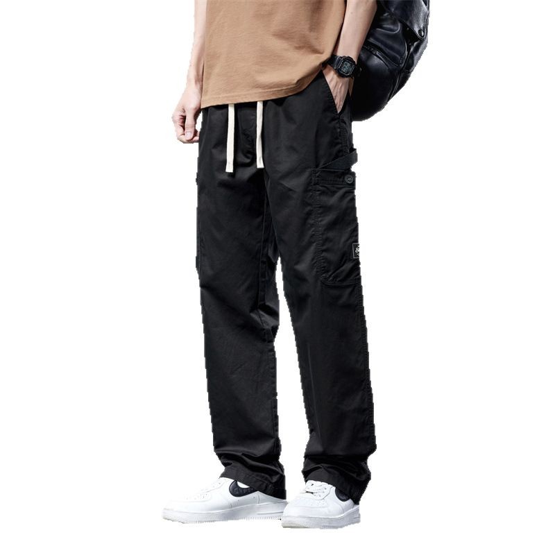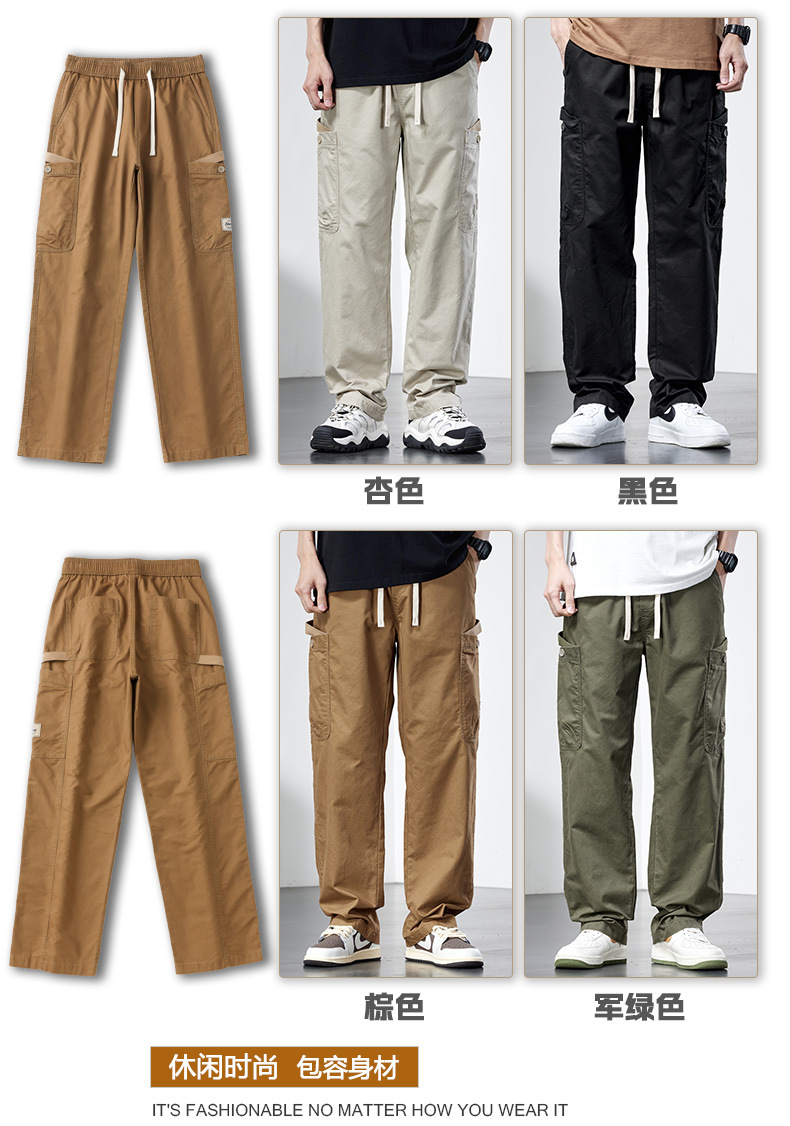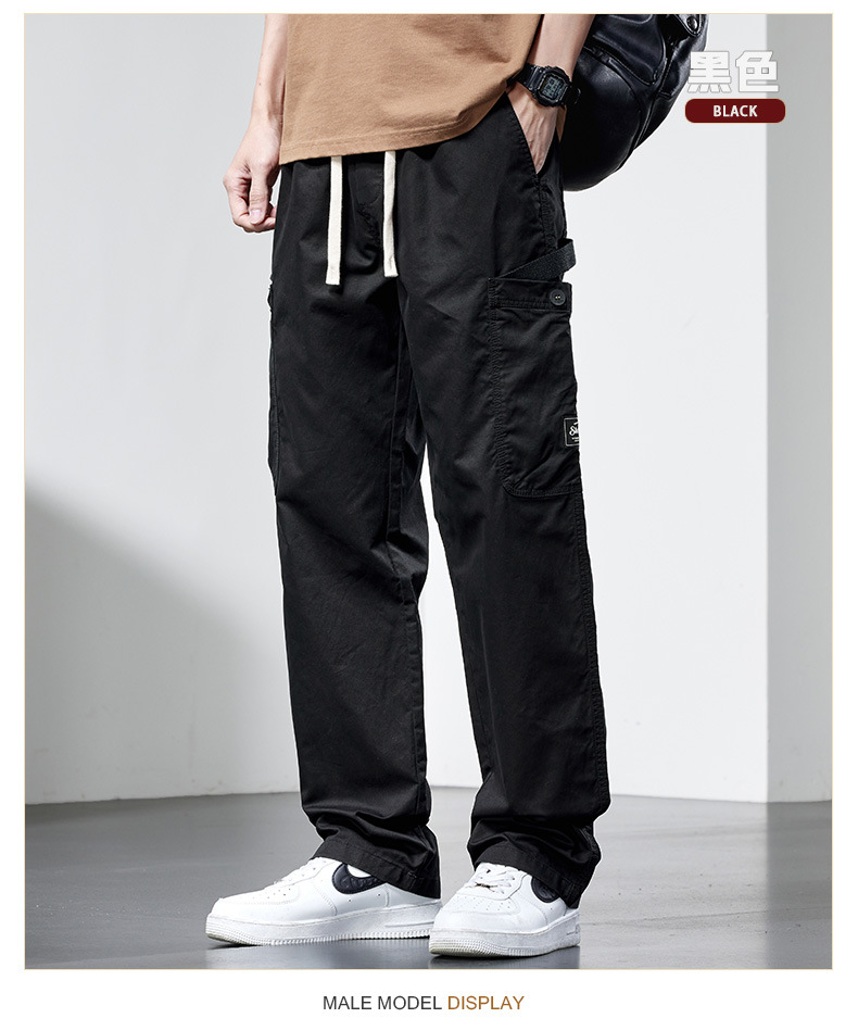 春夏新款休闲裤男士多口袋宽松直筒裤春秋潮流松紧腰阔腿工装长裤
