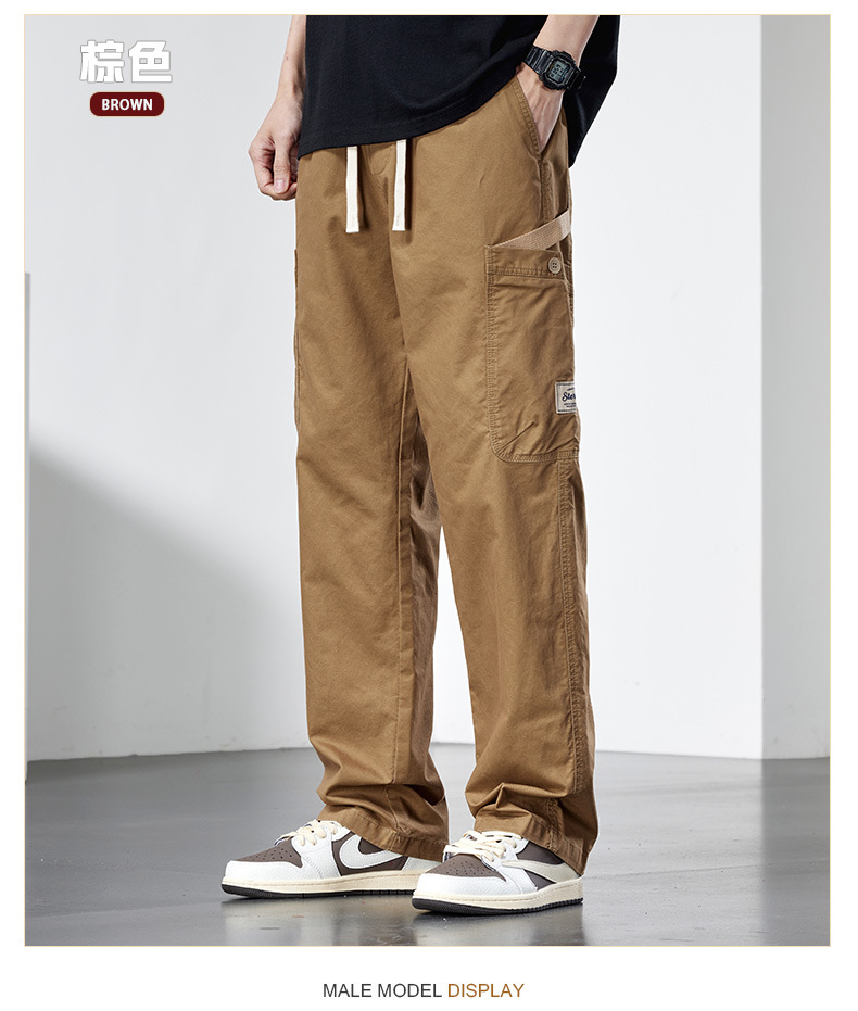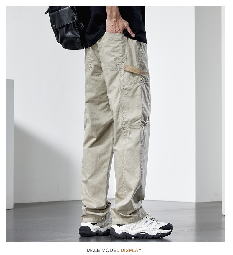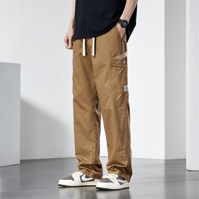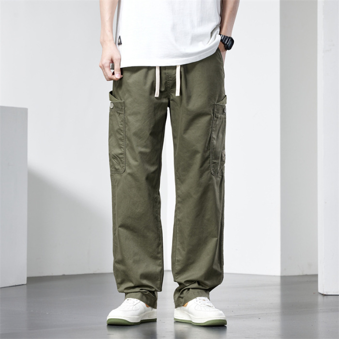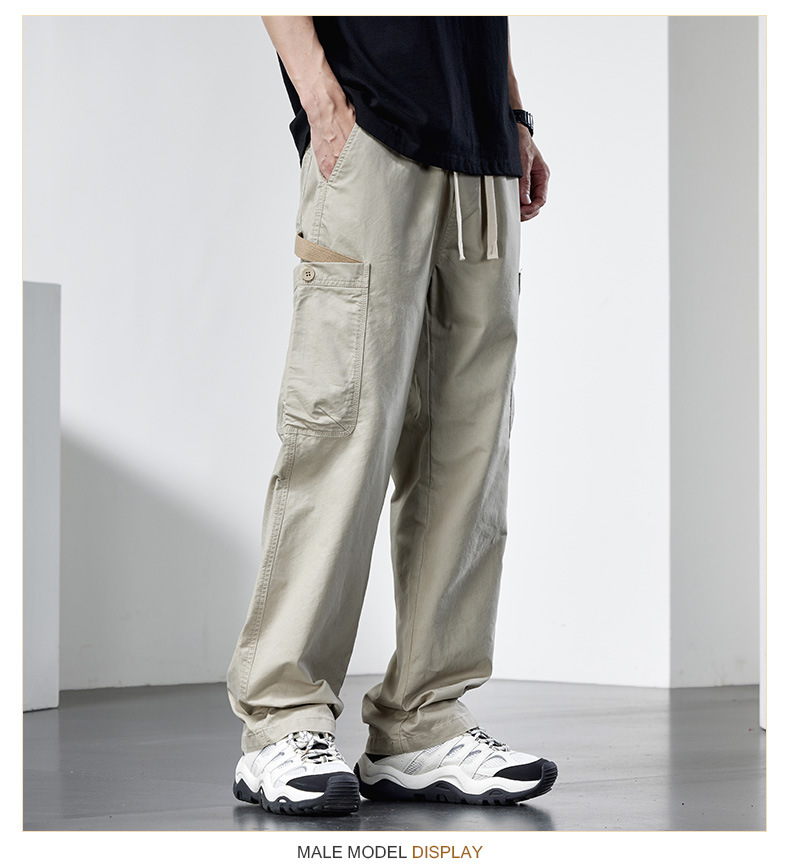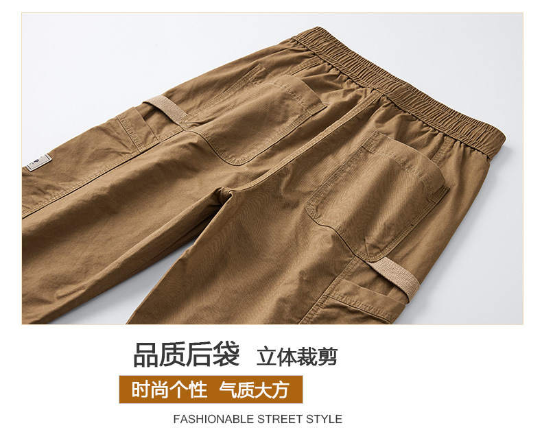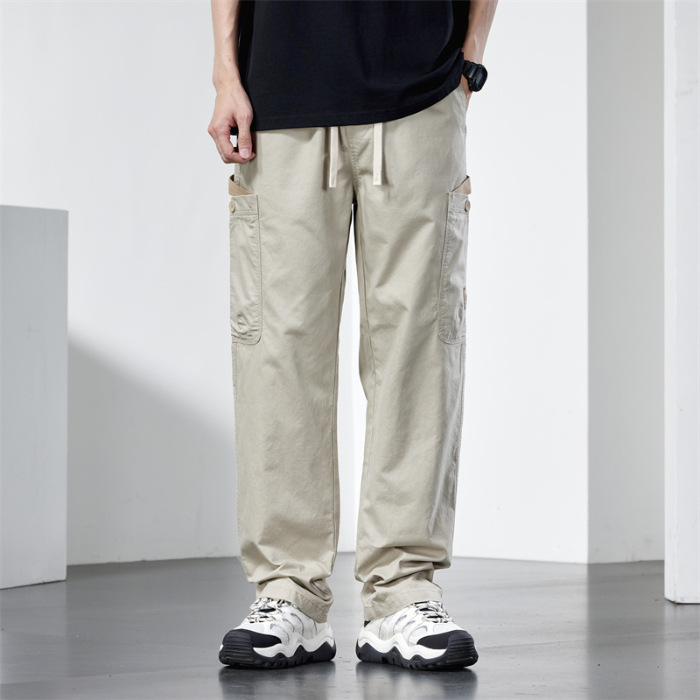 春夏新款休闲裤男士多口袋宽松直筒裤春秋潮流松紧腰阔腿工装长裤