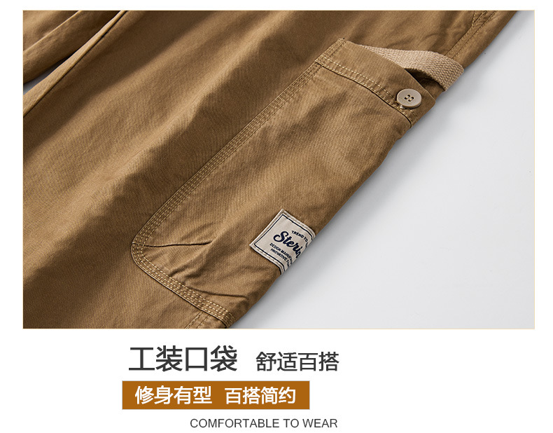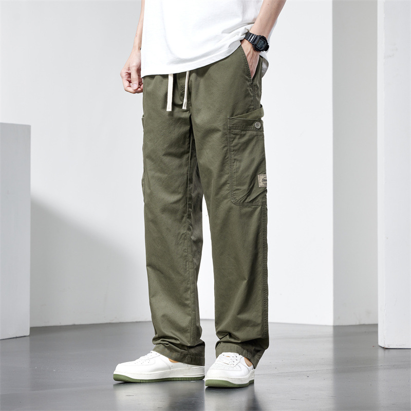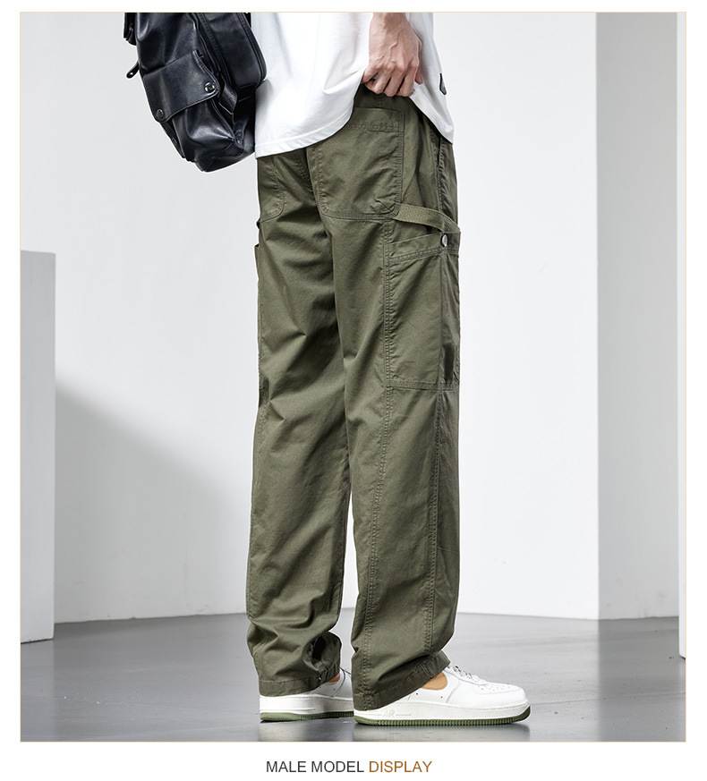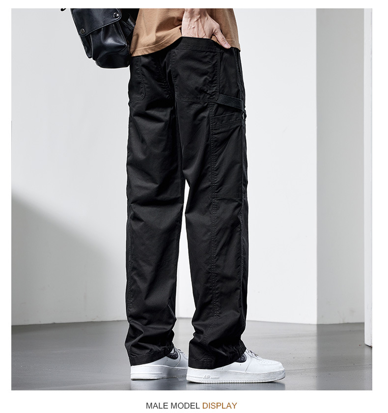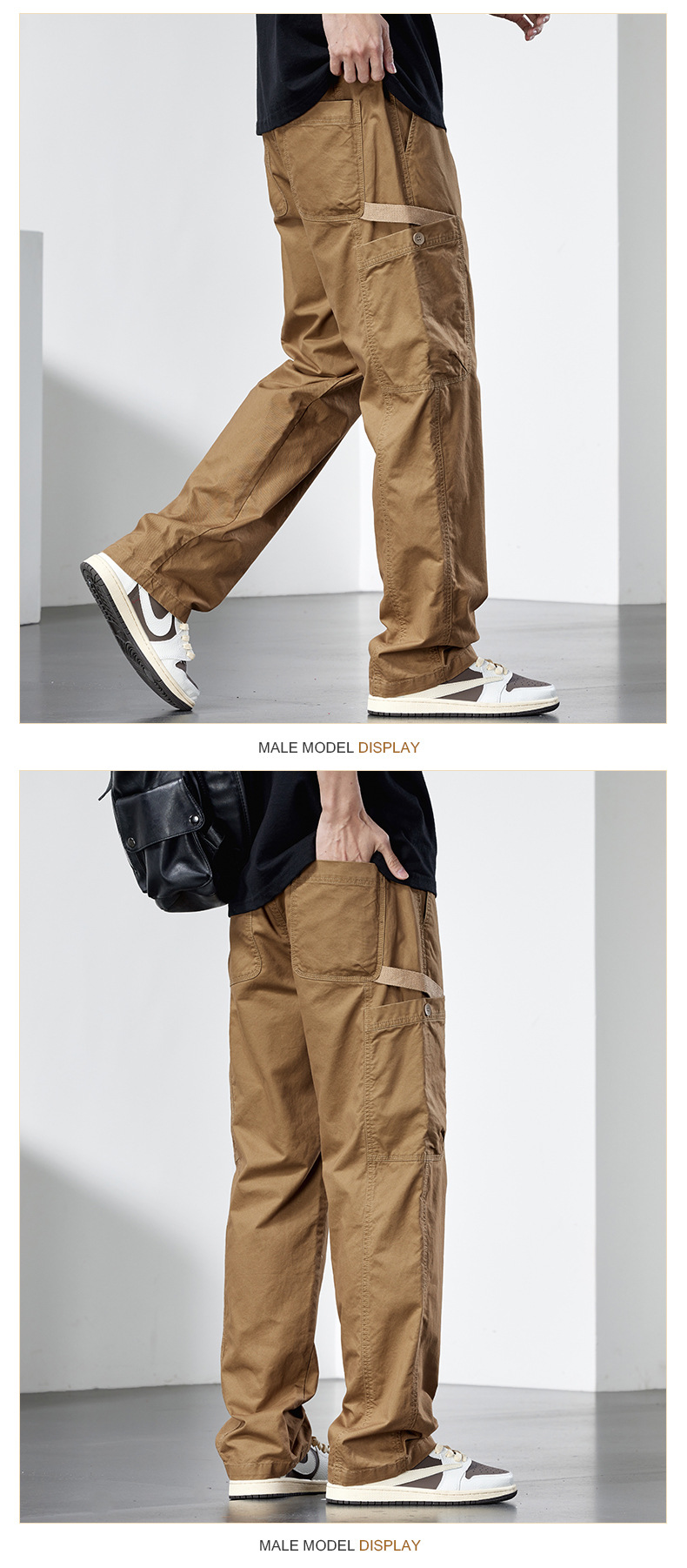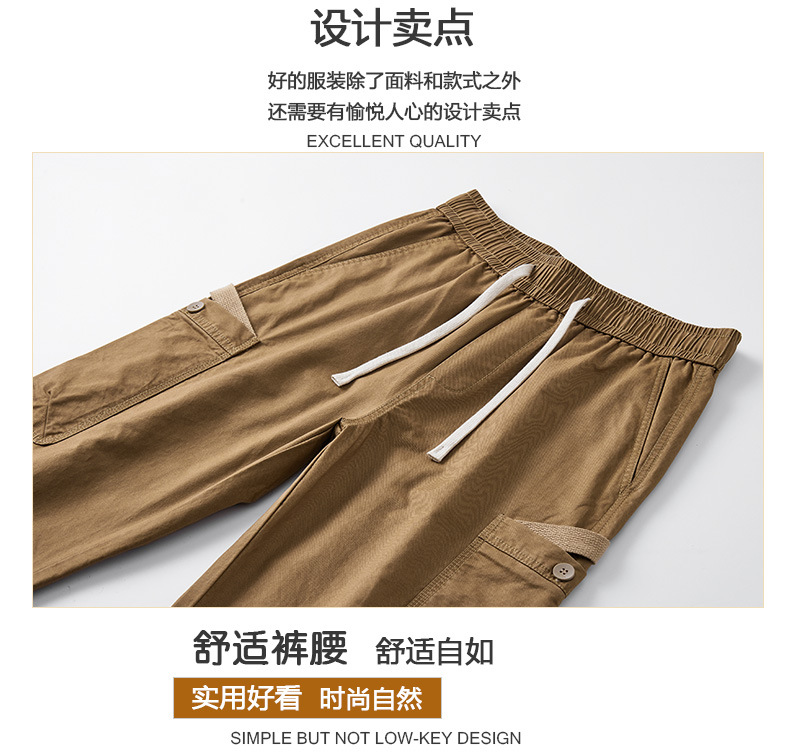 春夏新款休闲裤男士多口袋宽松直筒裤春秋潮流松紧腰阔腿工装长裤