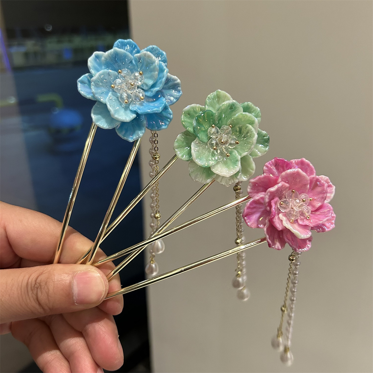 超仙气质花朵流苏发簪女现代简约簪子古风步摇发钗子u型发卡 发夹