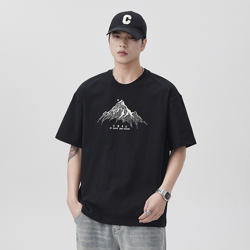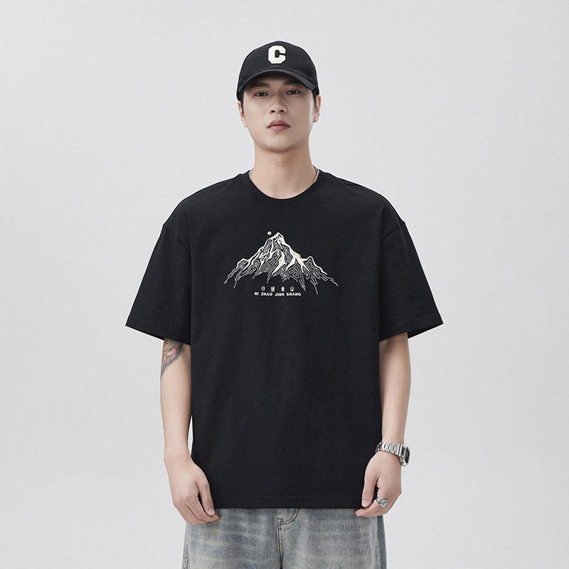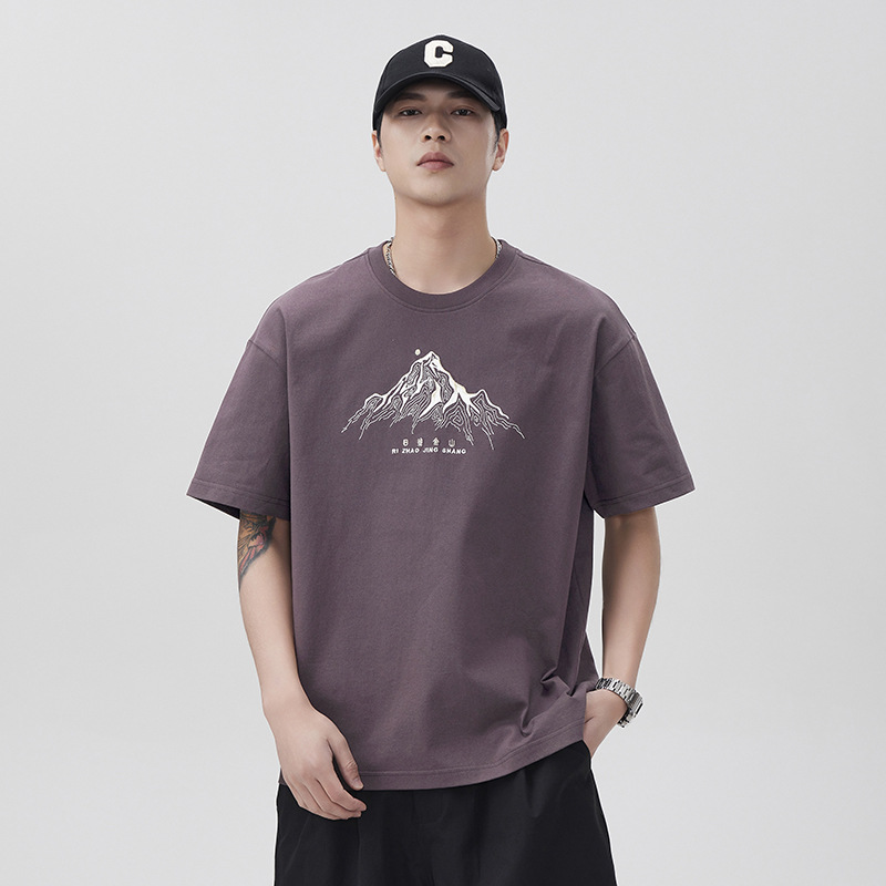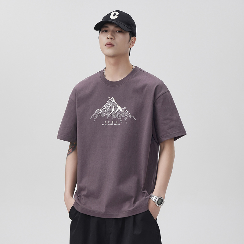 230g纯棉印花短袖T恤男2025夏季新款美式复古宽松休闲半袖体恤衫