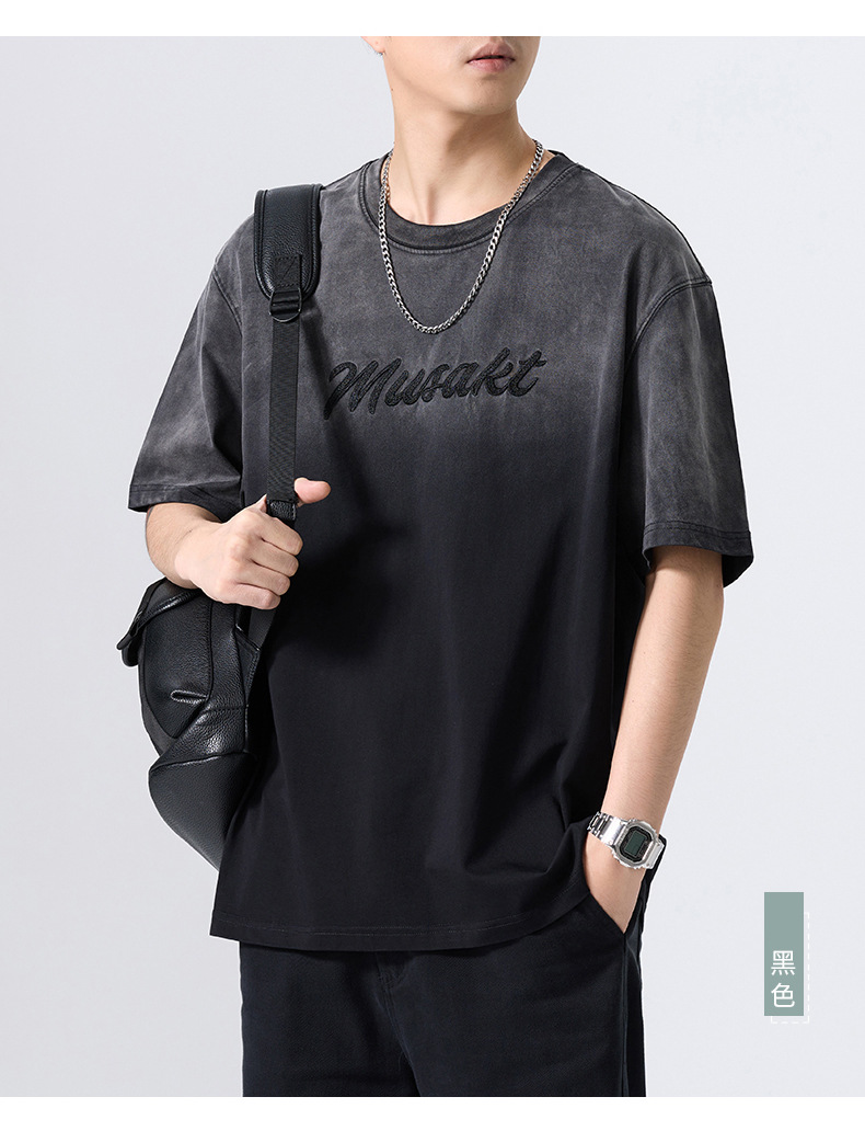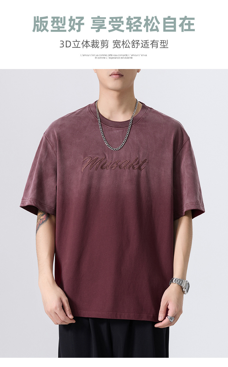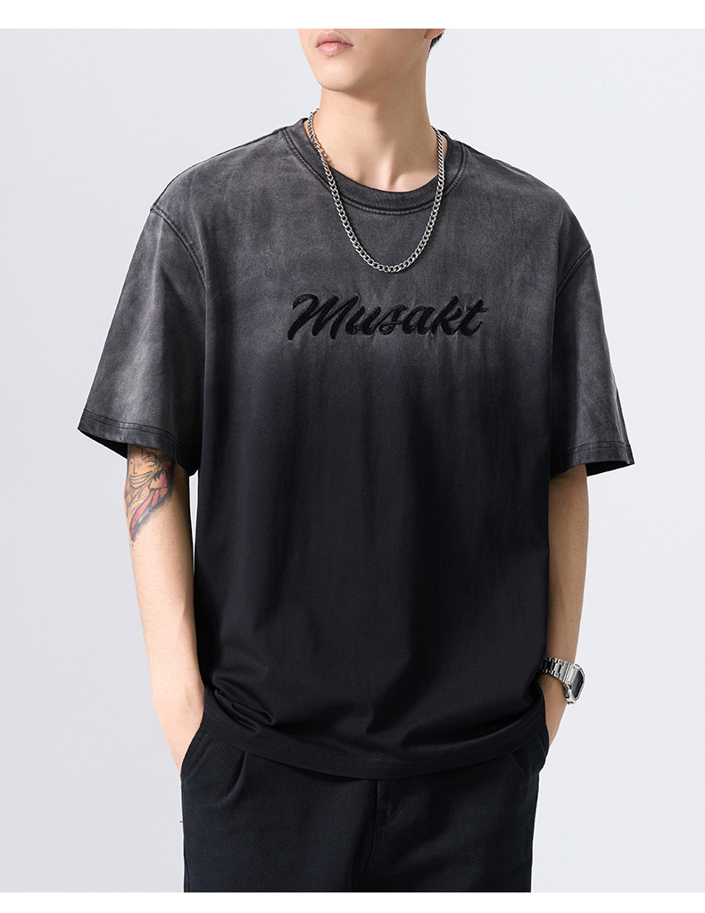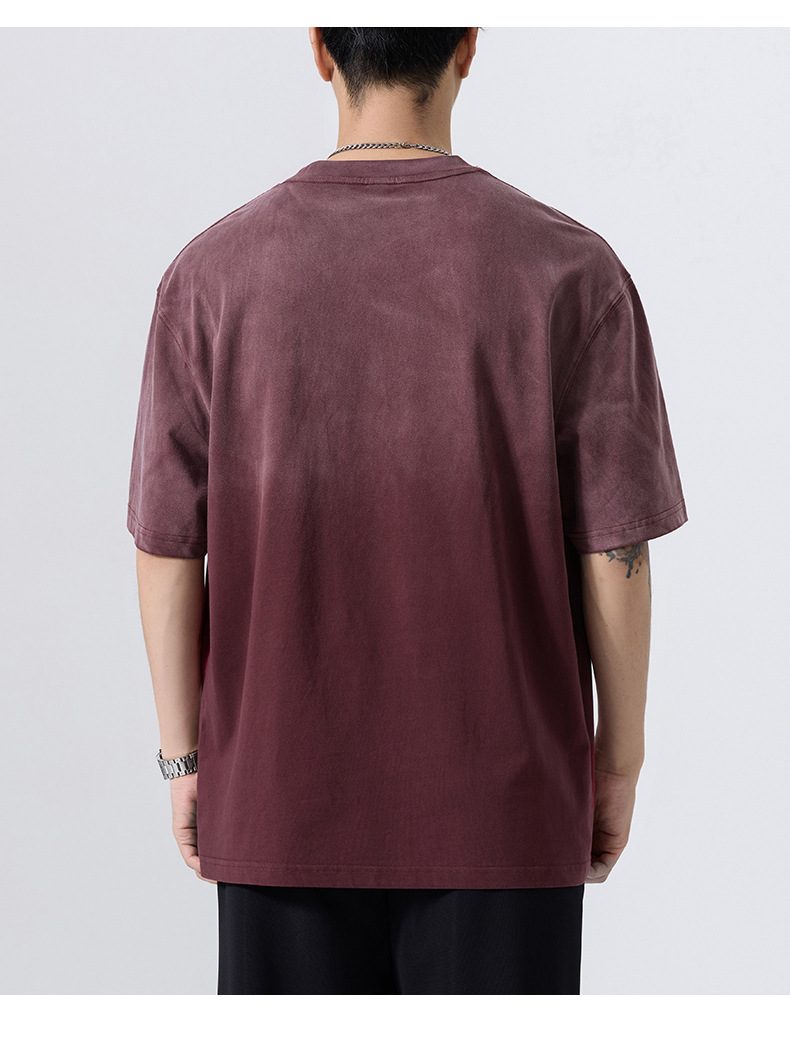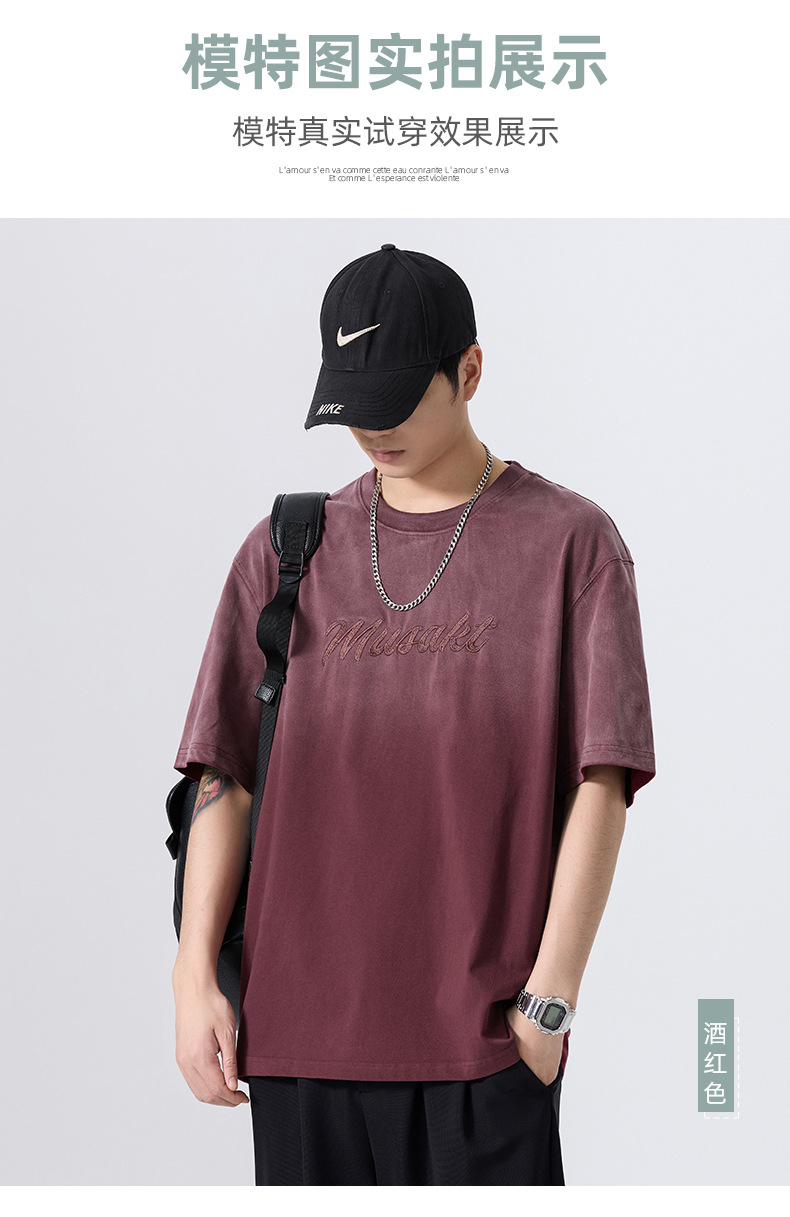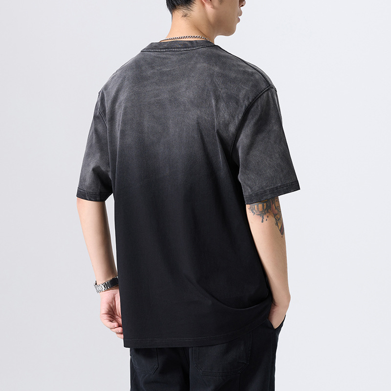 美式重磅渐变印花短袖t恤男2025新款宽松半袖夏季薄款体恤潮