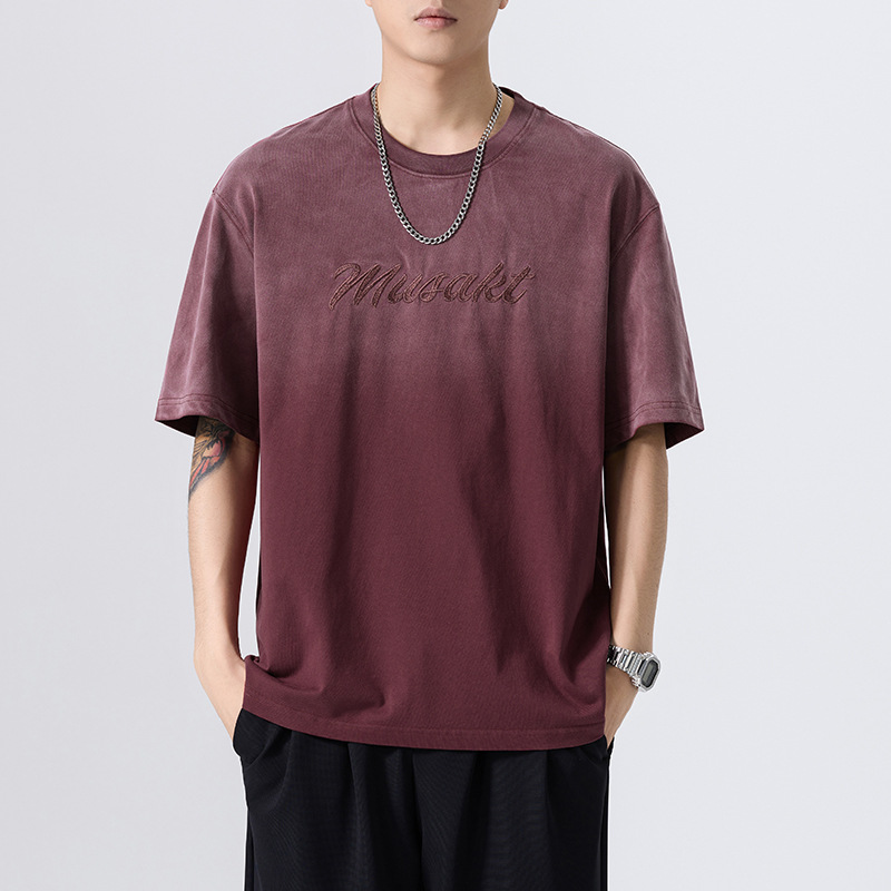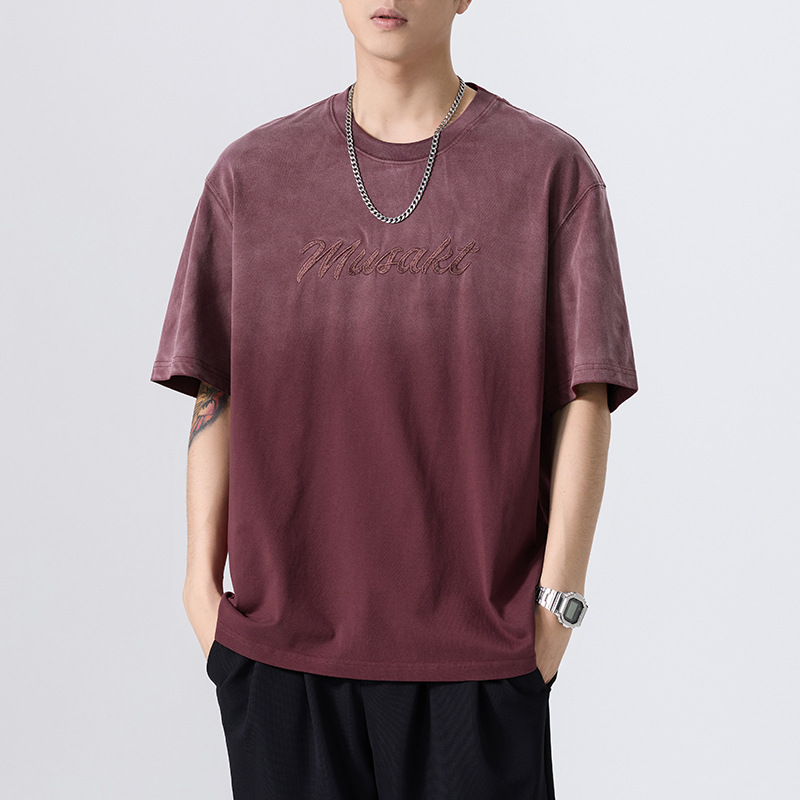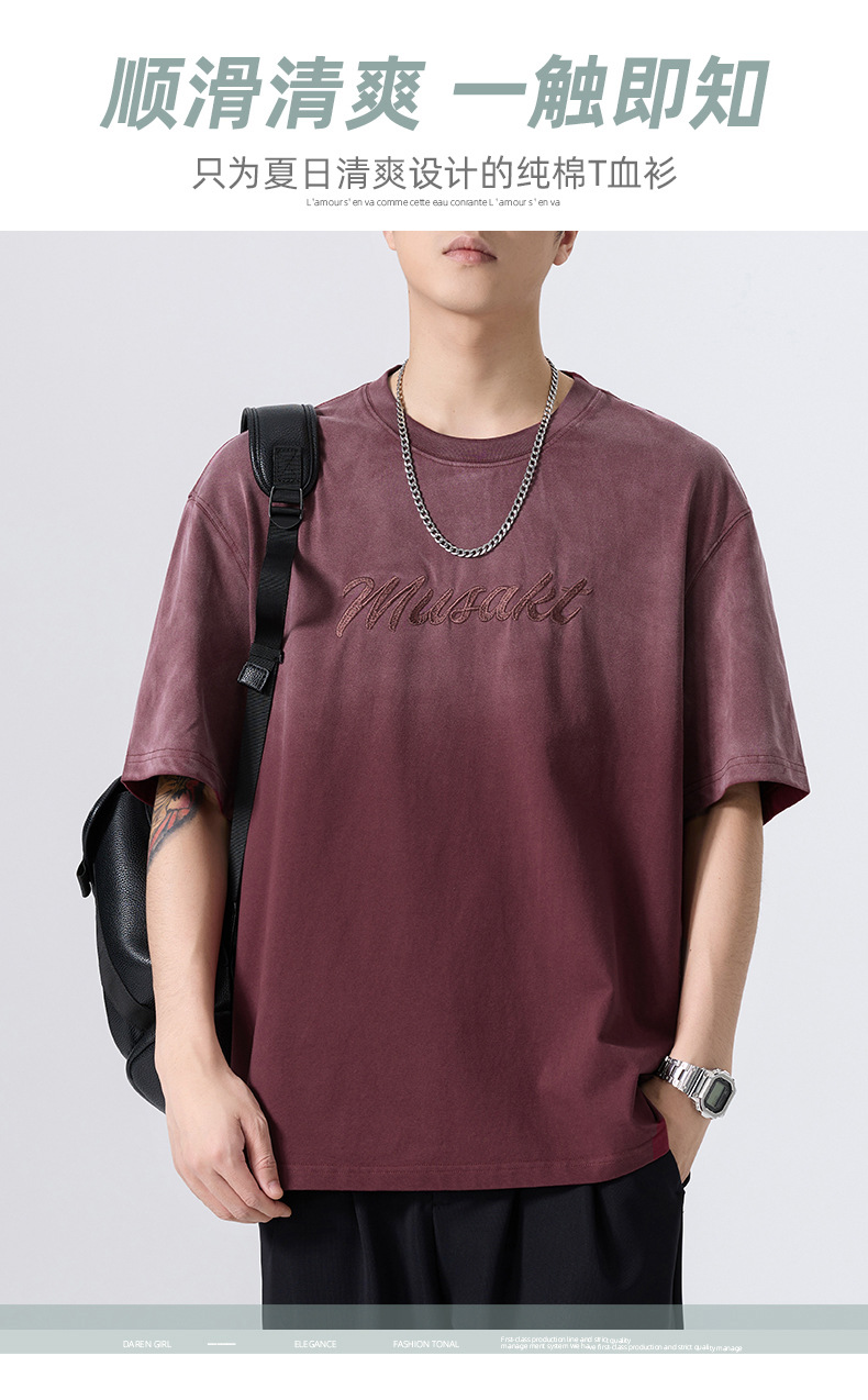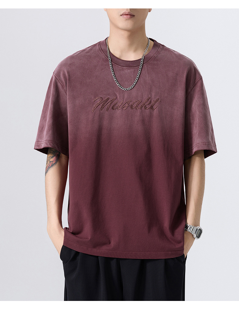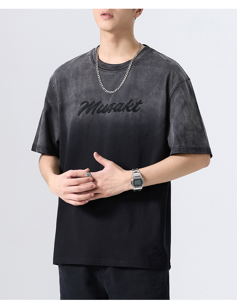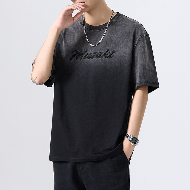 美式重磅渐变印花短袖t恤男2025新款宽松半袖夏季薄款体恤潮