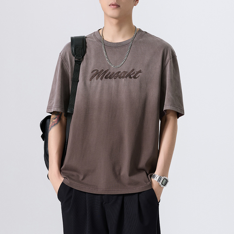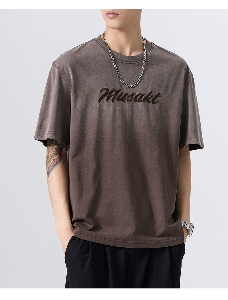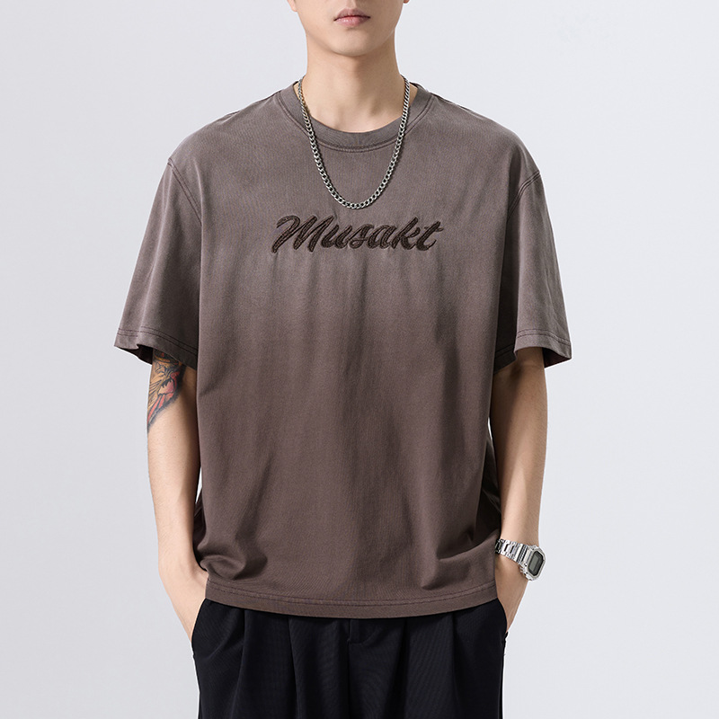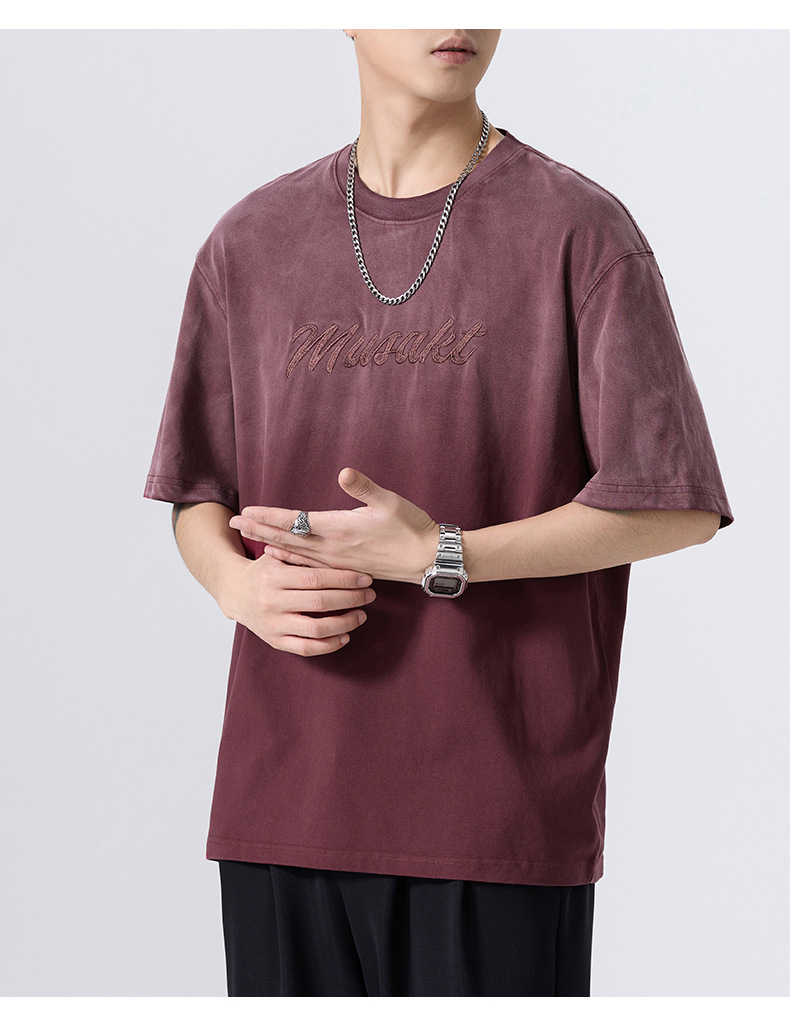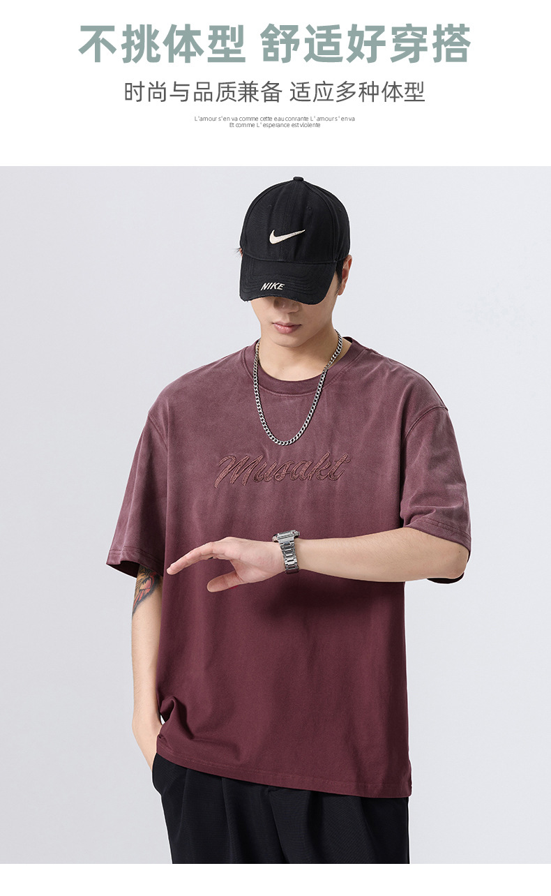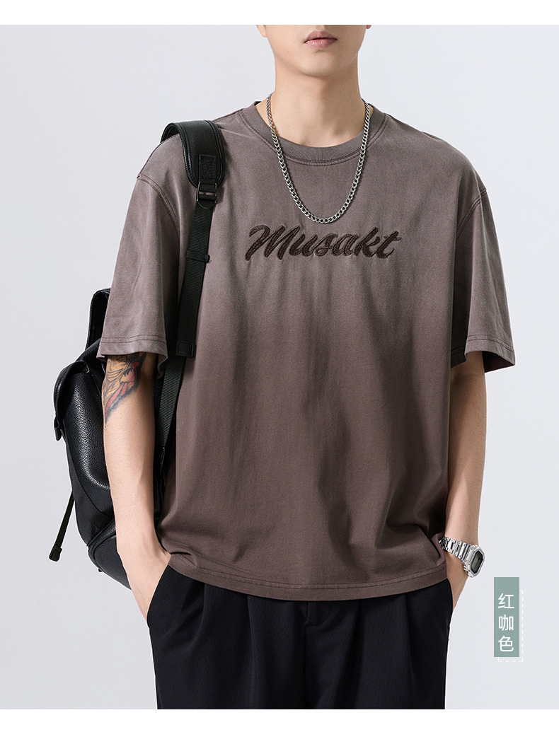 美式重磅渐变印花短袖t恤男2025新款宽松半袖夏季薄款体恤潮