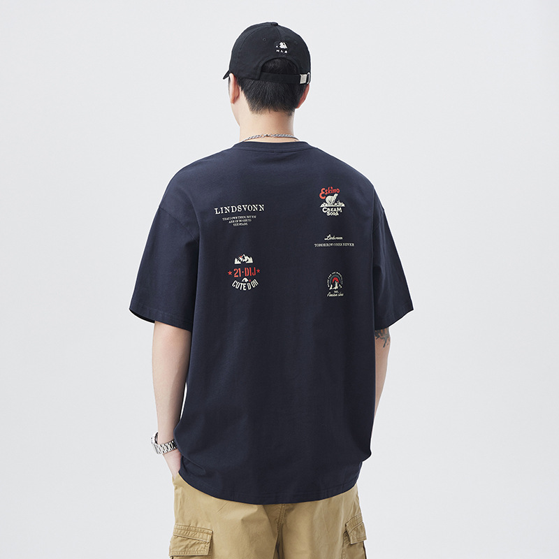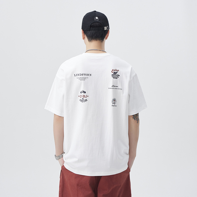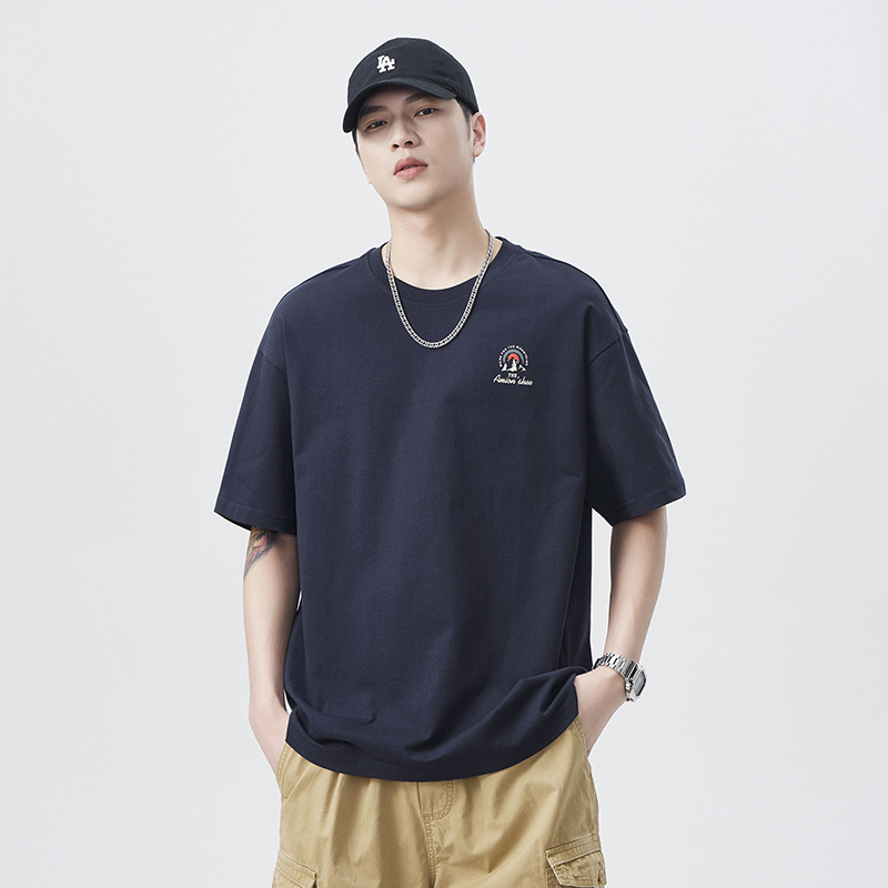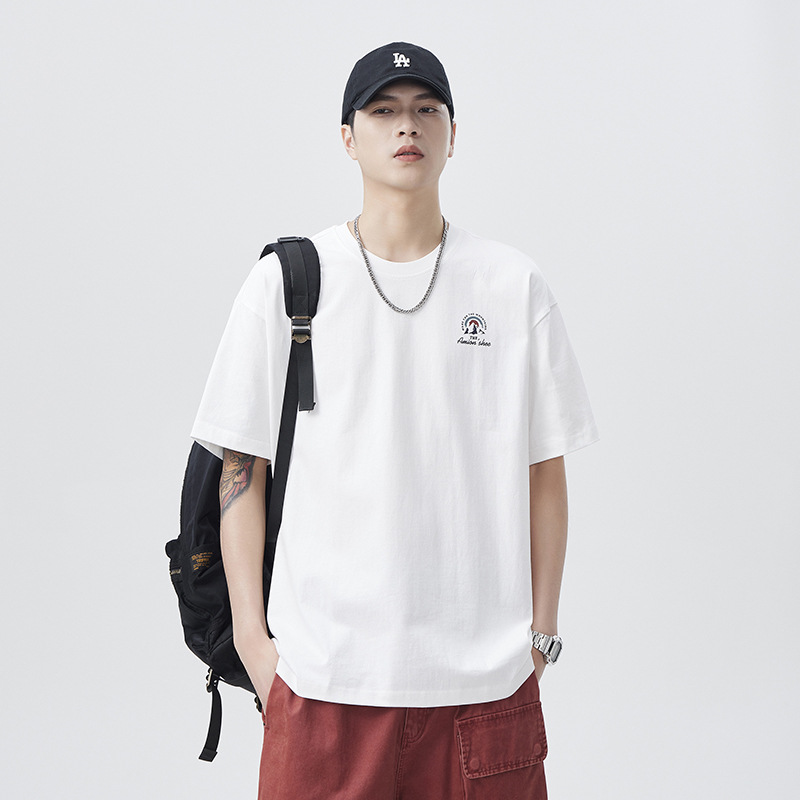 美式复古印花圆领t恤男士2025夏季新款230g重磅纯棉宽松五分袖男