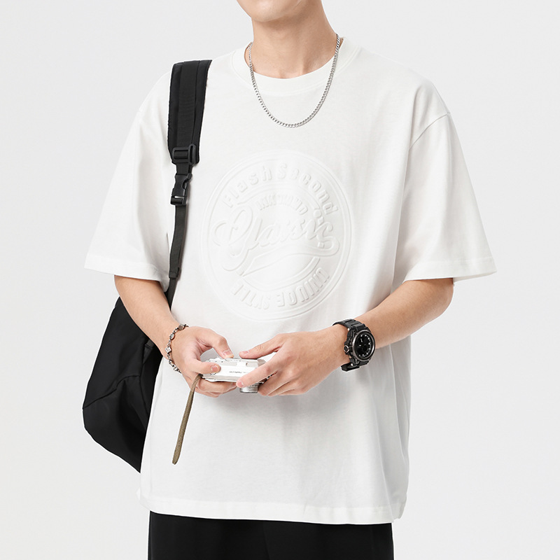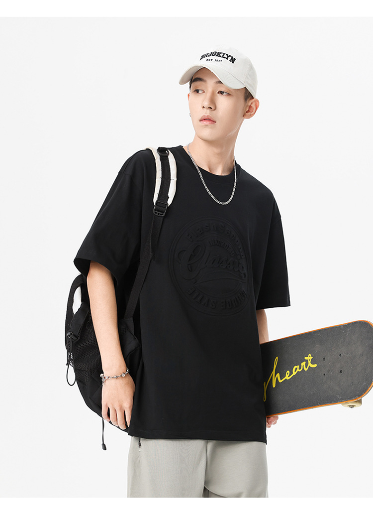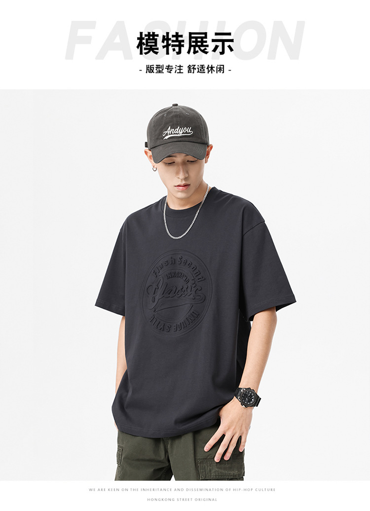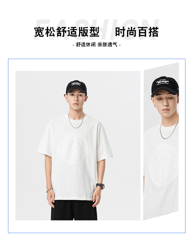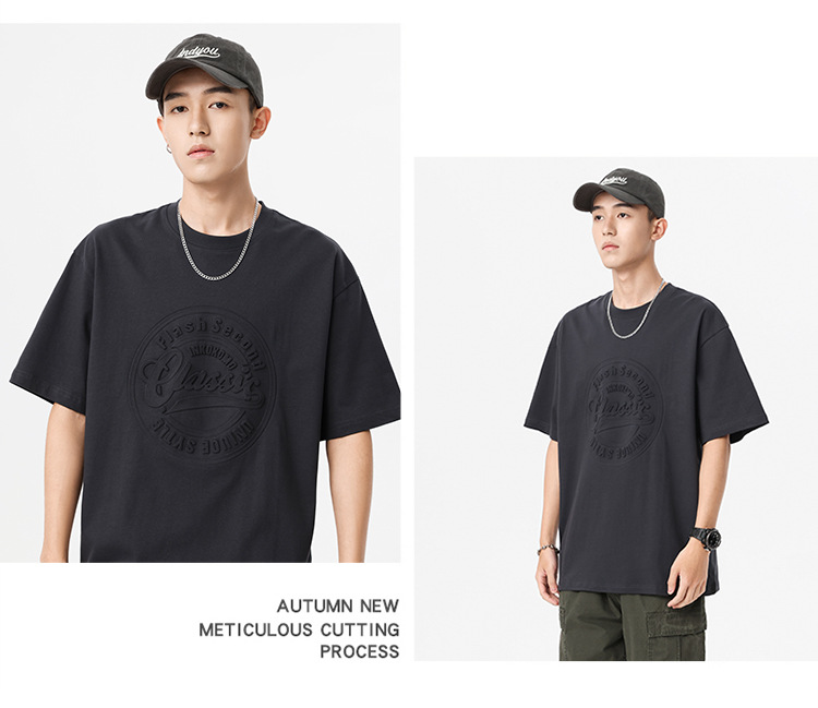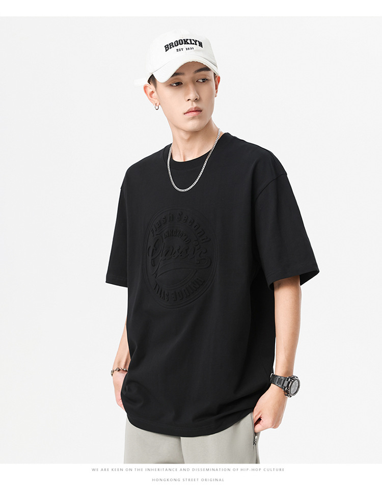 夏季重磅纯棉青年潮牌钢印短袖t恤男宽松大码男士男款半袖体恤衫