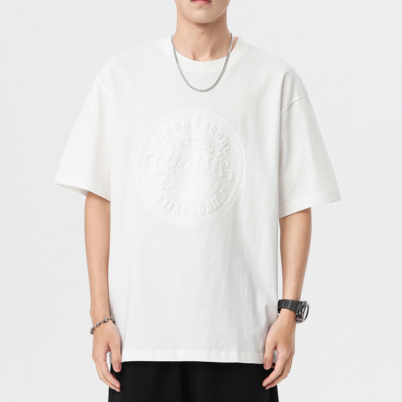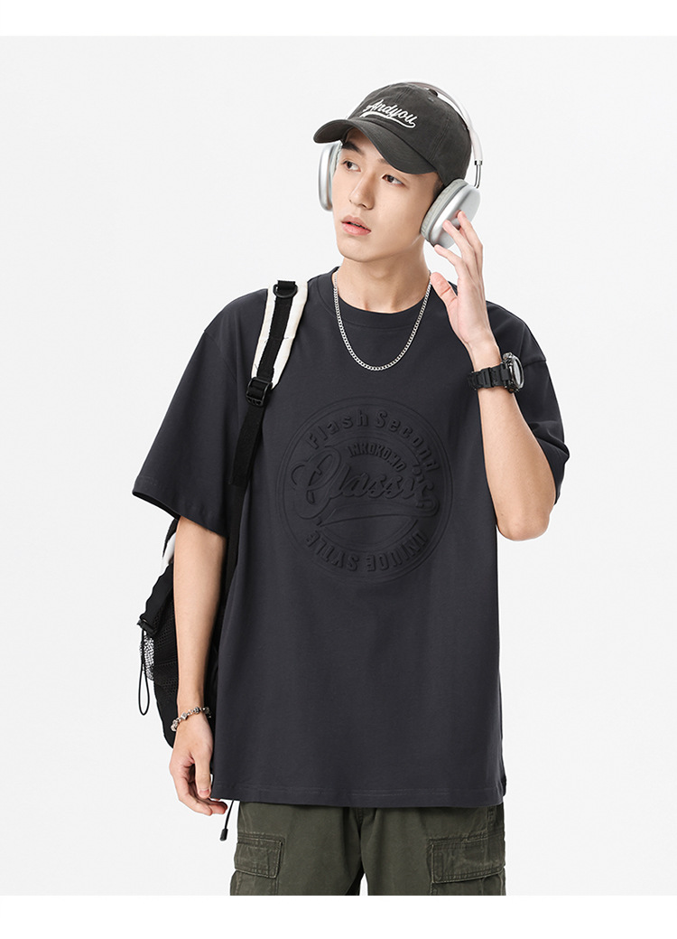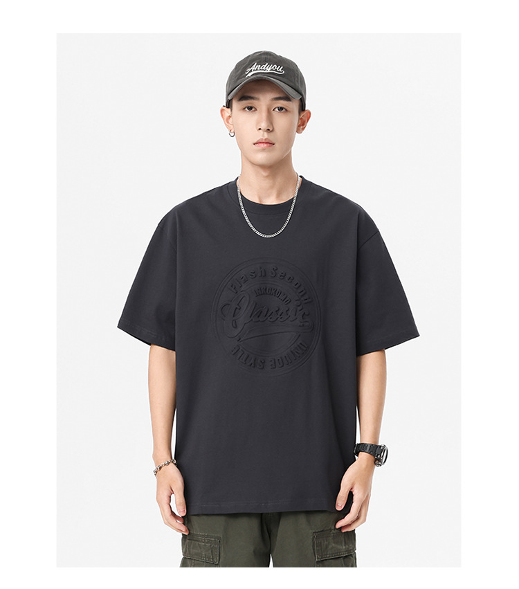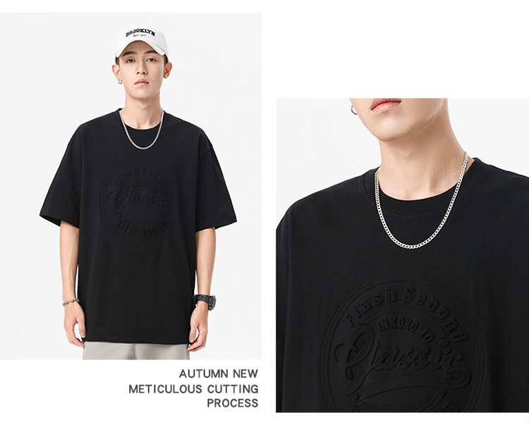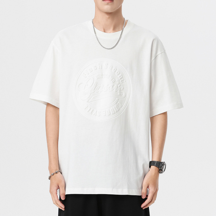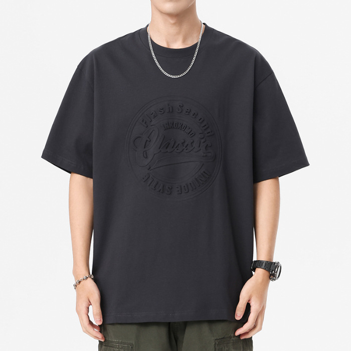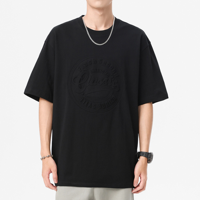 夏季重磅纯棉青年潮牌钢印短袖t恤男宽松大码男士男款半袖体恤衫