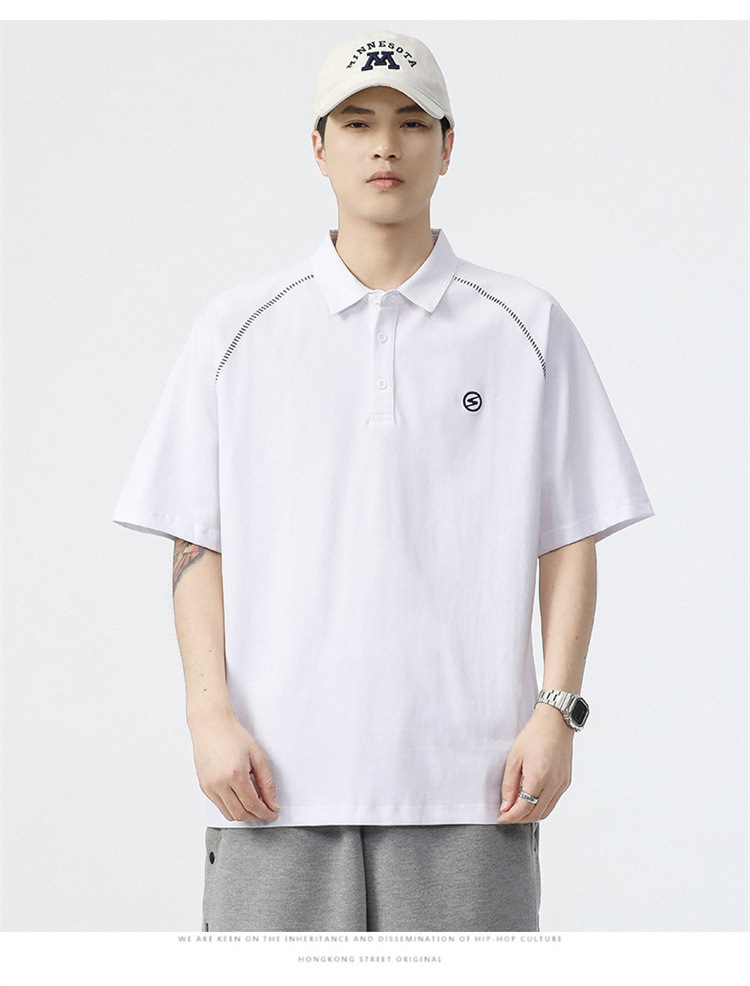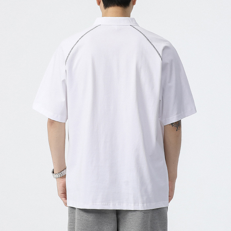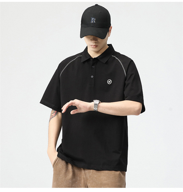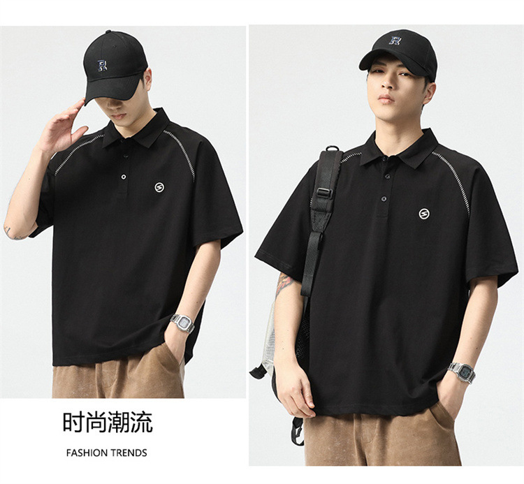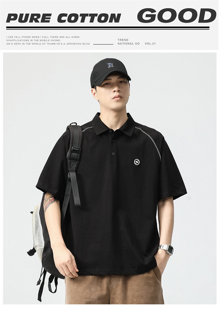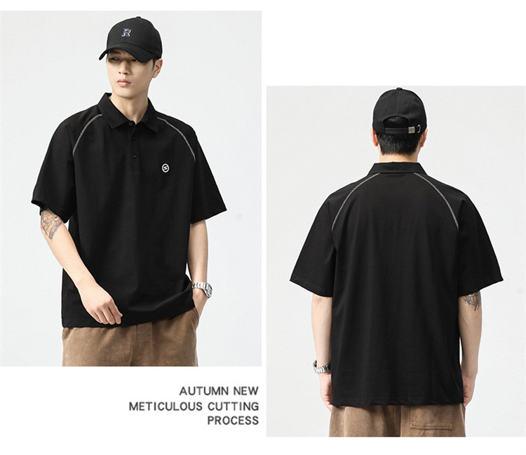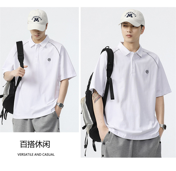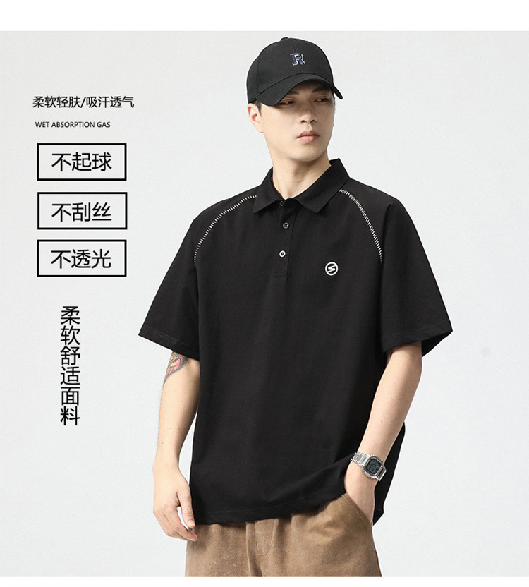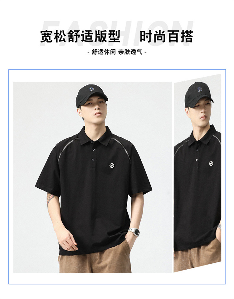高级感230g重磅纯棉竹节平纹布短袖polo衫男宽松大码透气T恤上衣