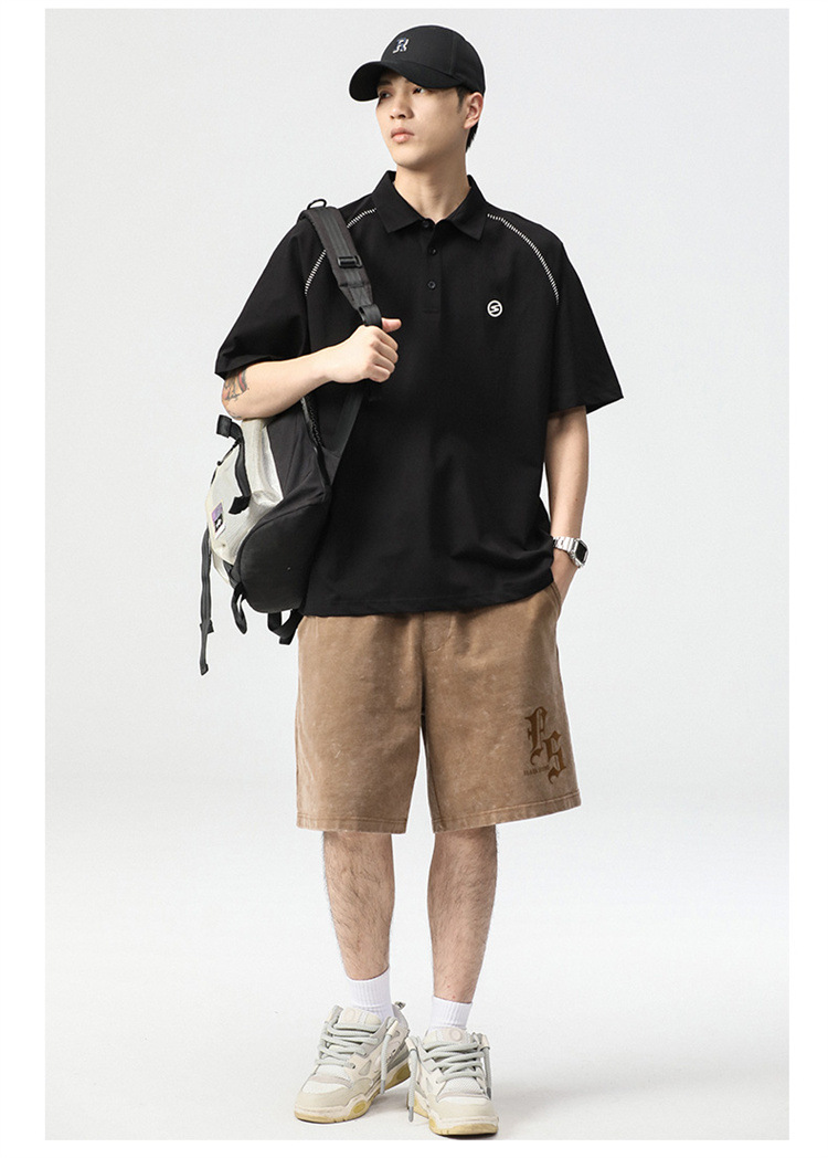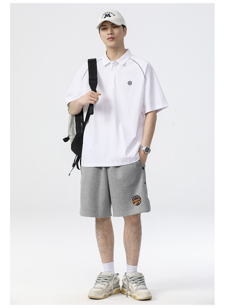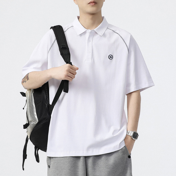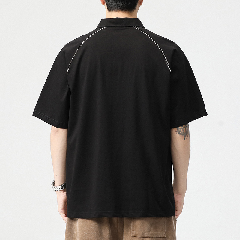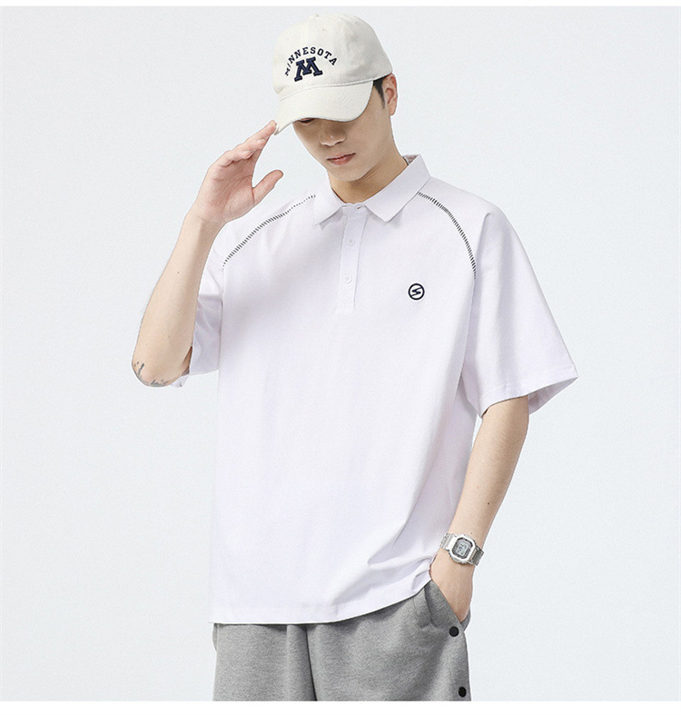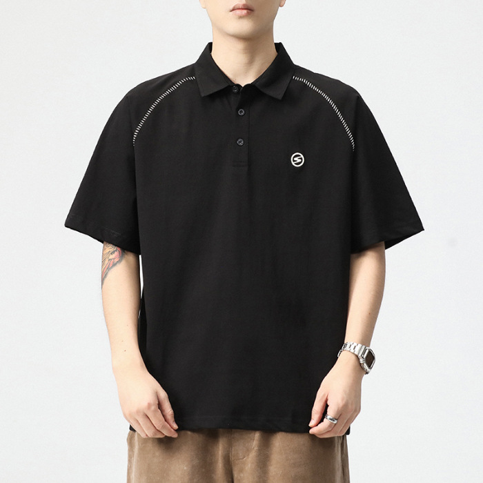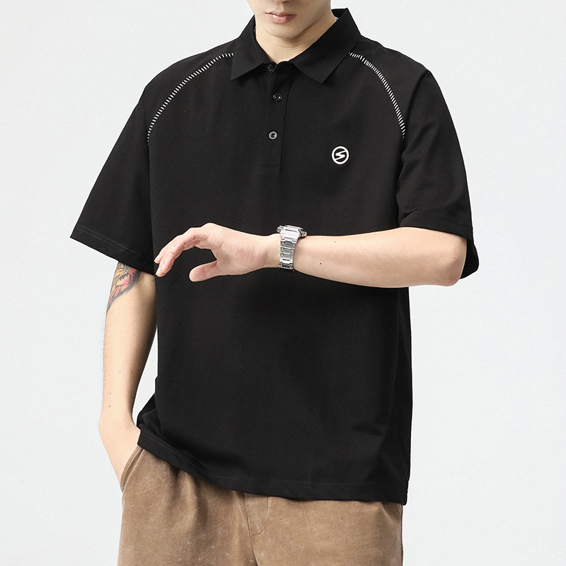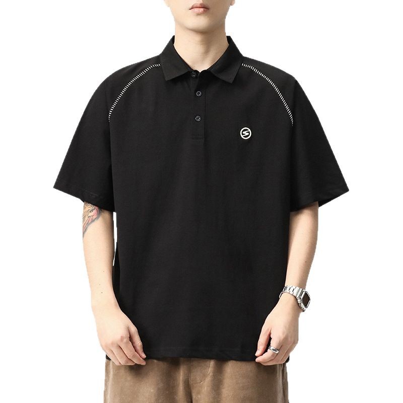 高级感230g重磅纯棉竹节平纹布短袖polo衫男宽松大码透气T恤上衣