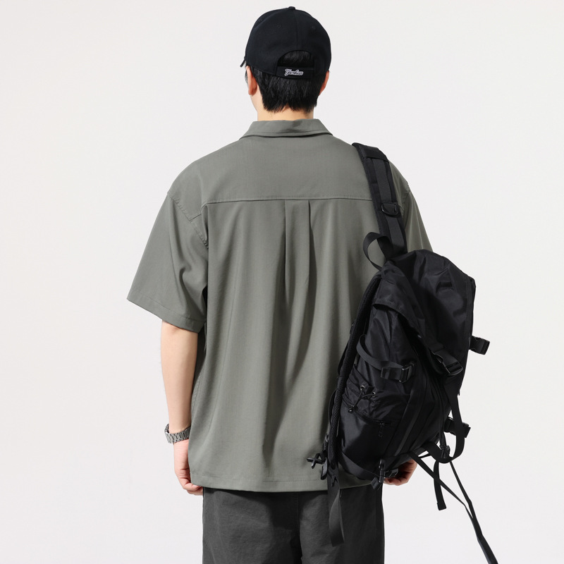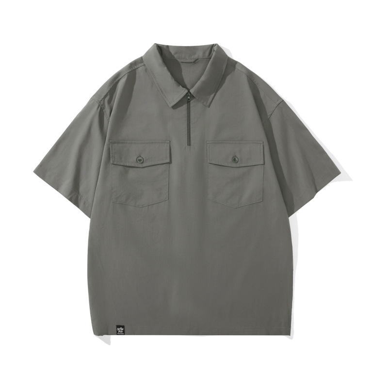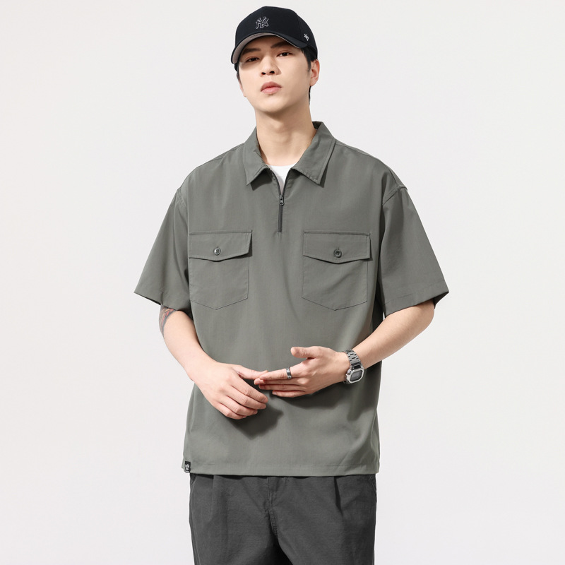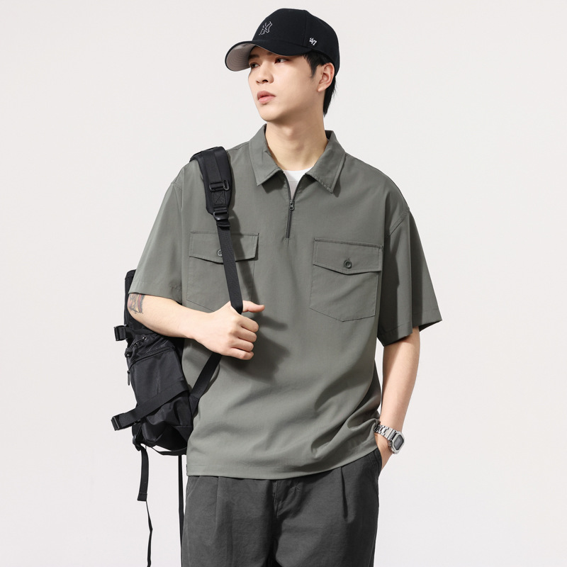凉感速干半拉链短袖衬衫男士夏季防晒日系潮流休闲宽松半袖polo衫