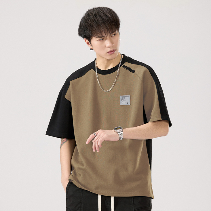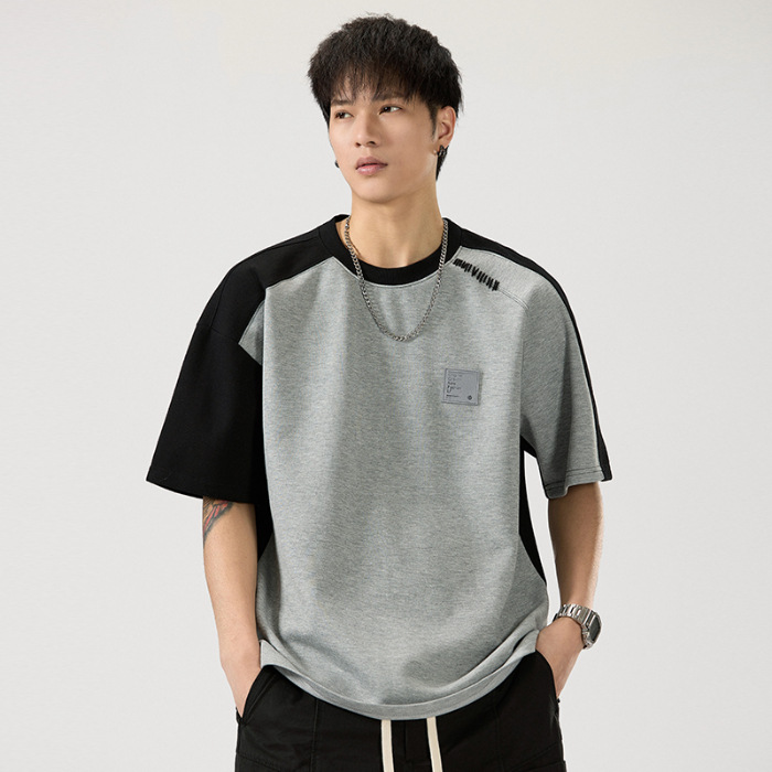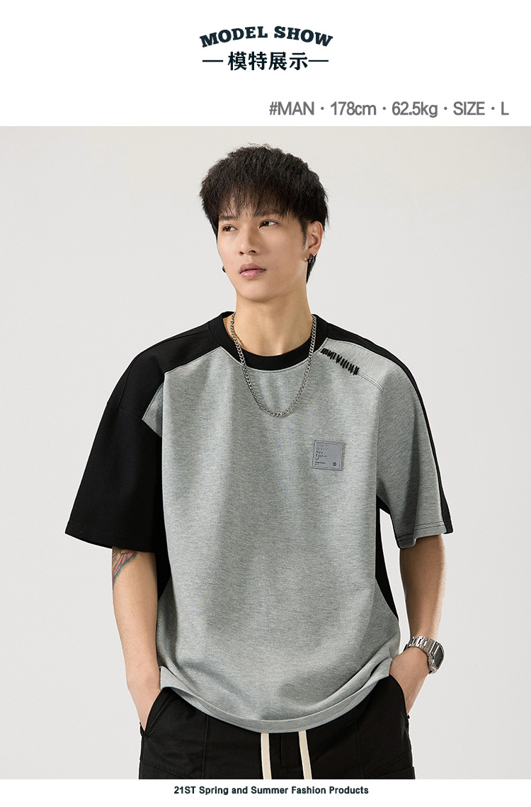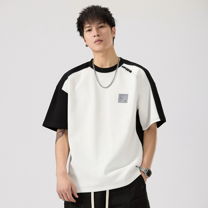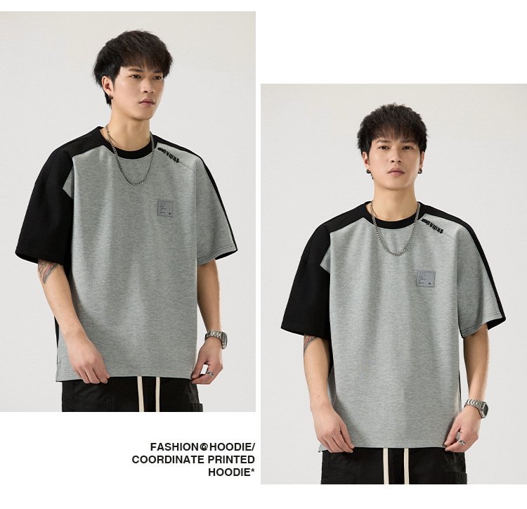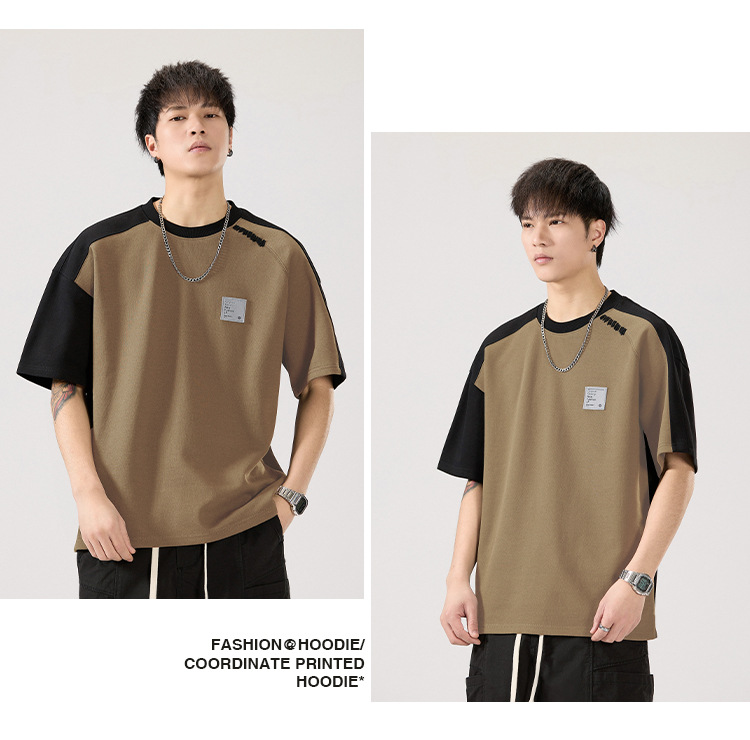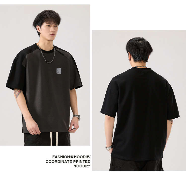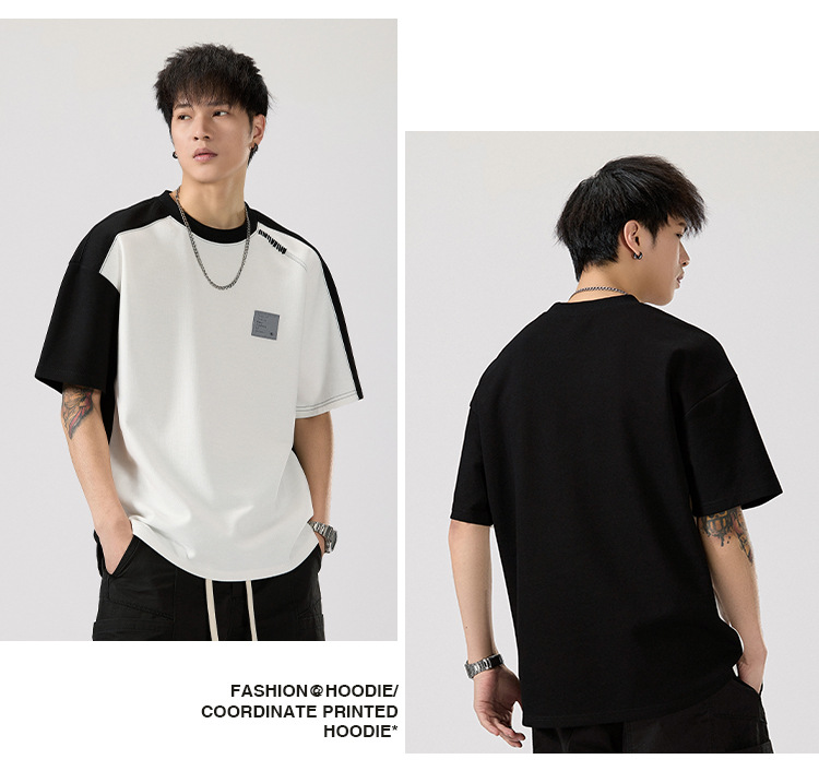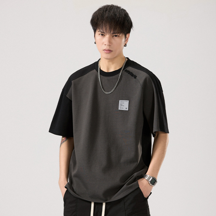 美式重磅260g 短袖t恤夏季男士2025春夏宽松大码撞色拼接打底体恤