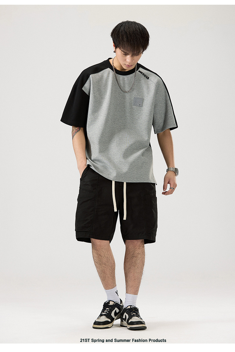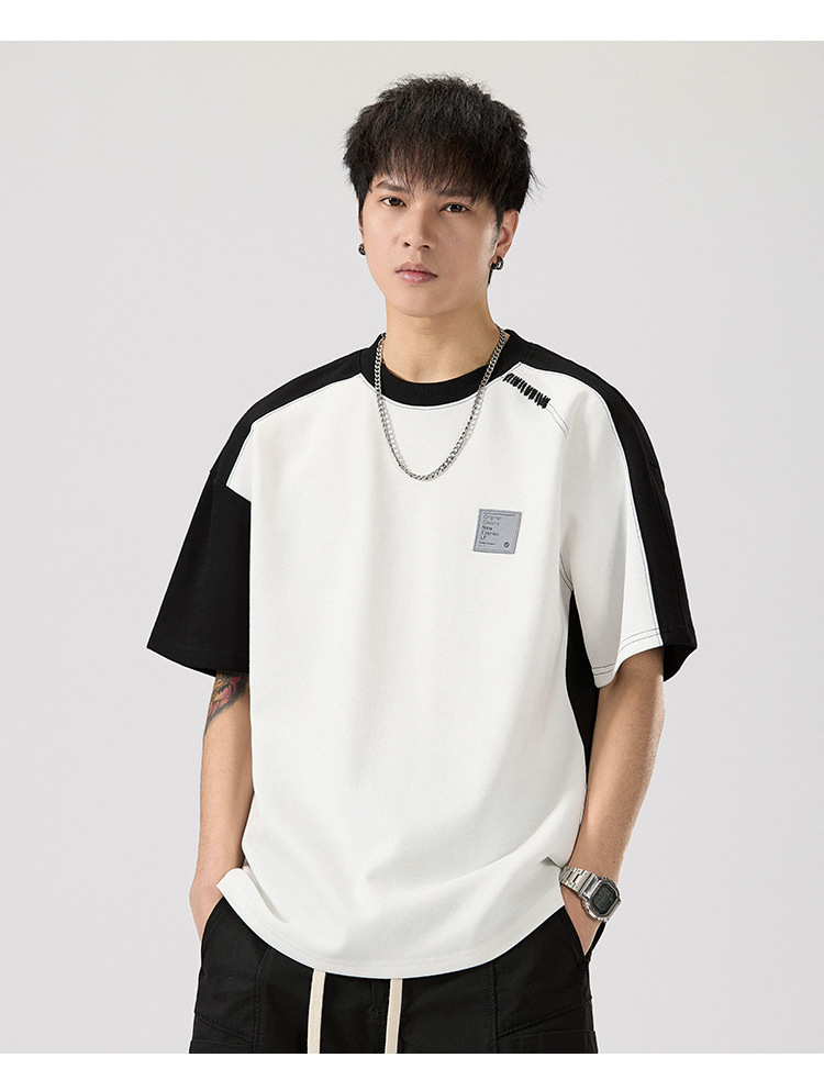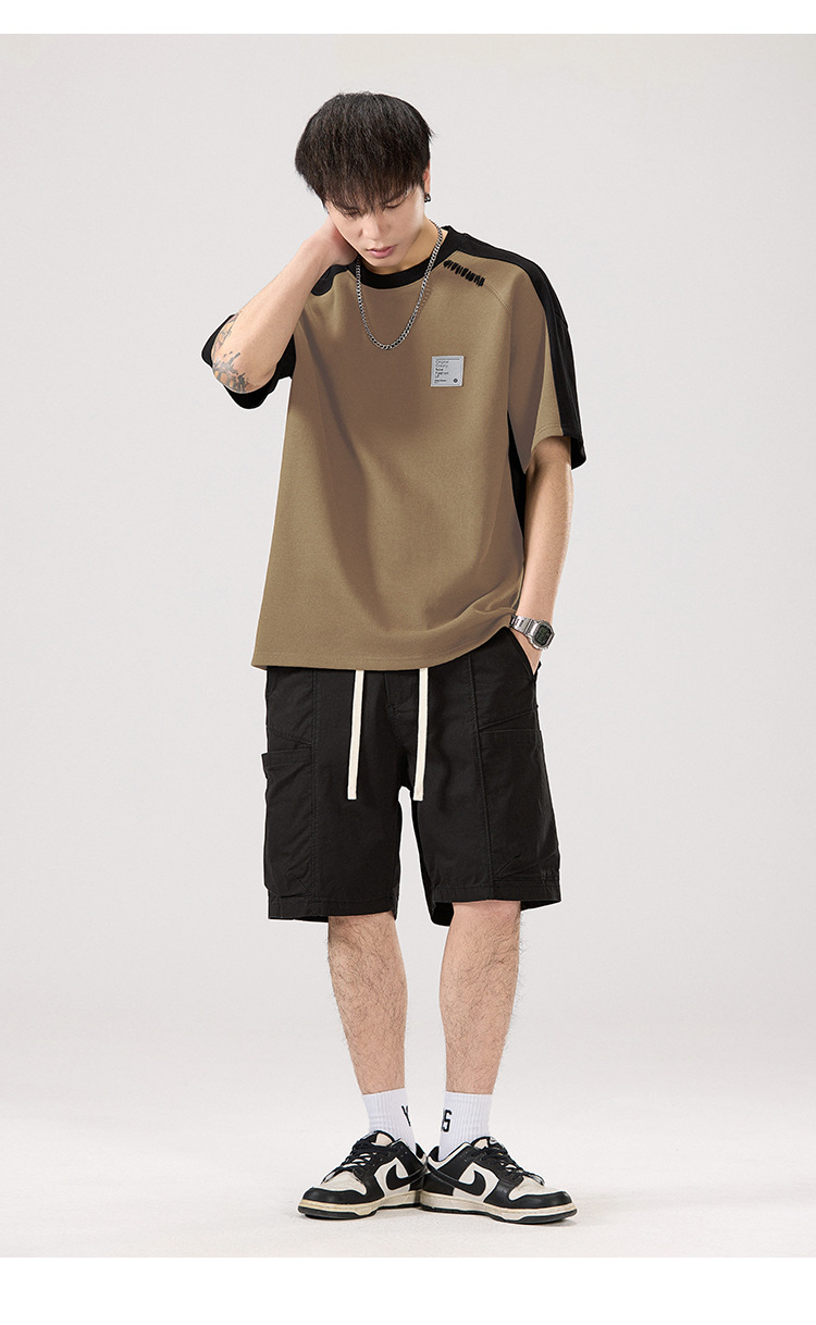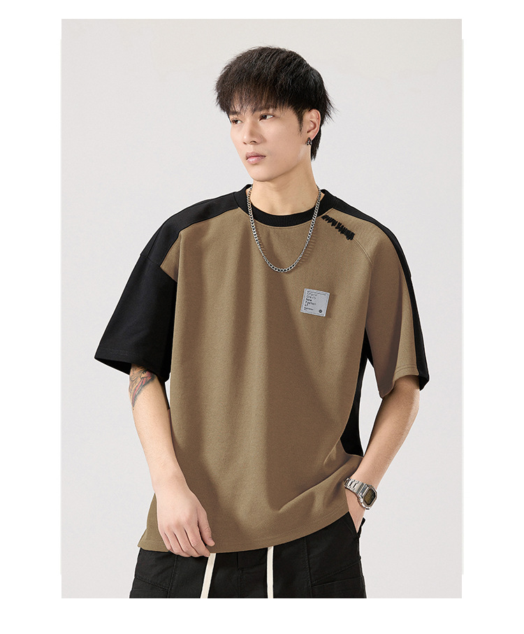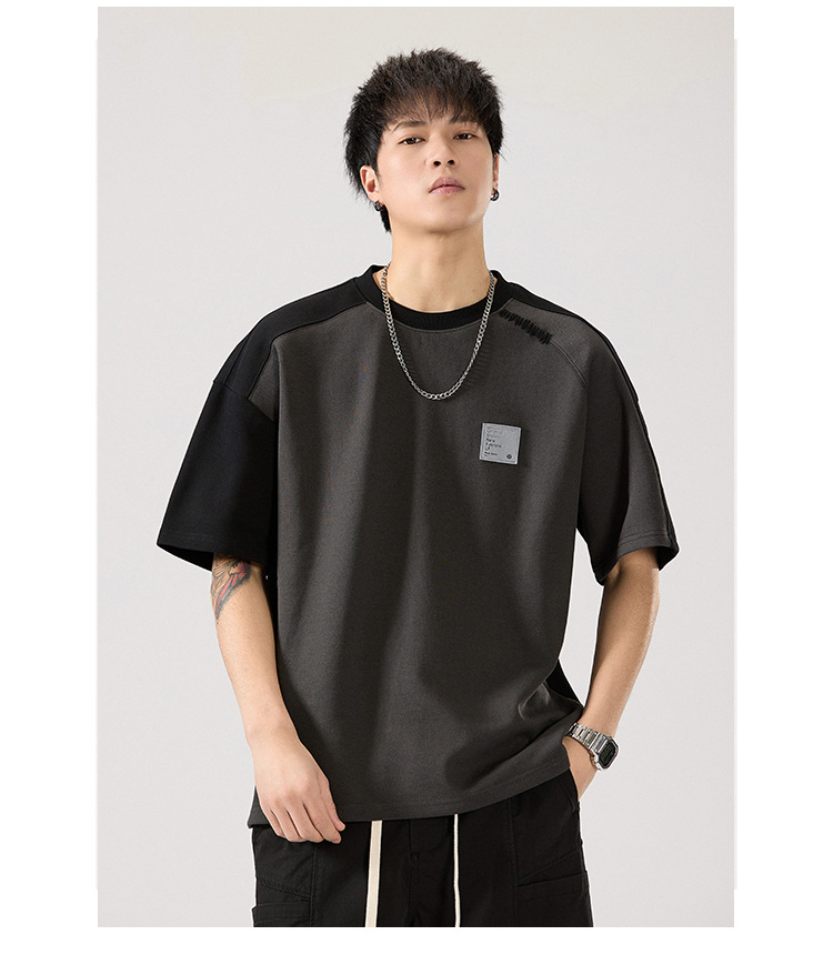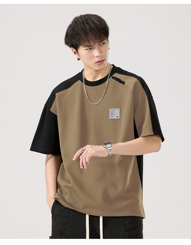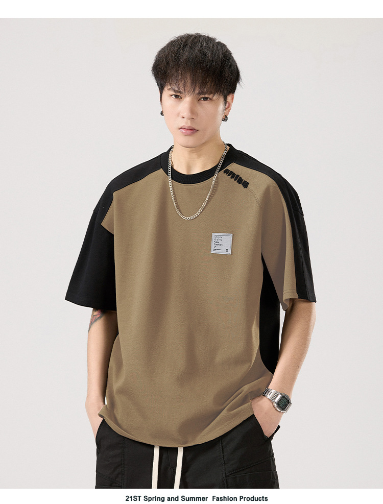 美式重磅260g 短袖t恤夏季男士2025春夏宽松大码撞色拼接打底体恤