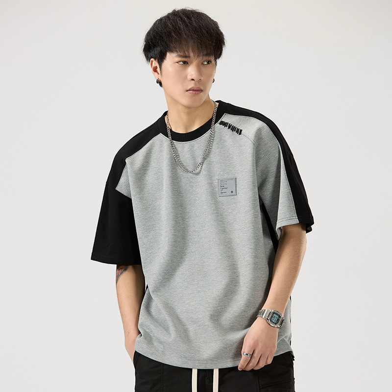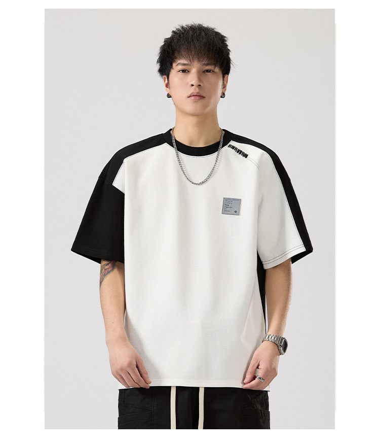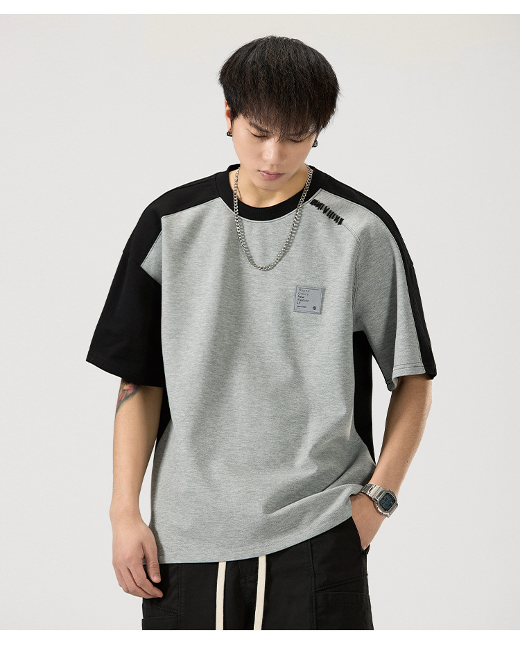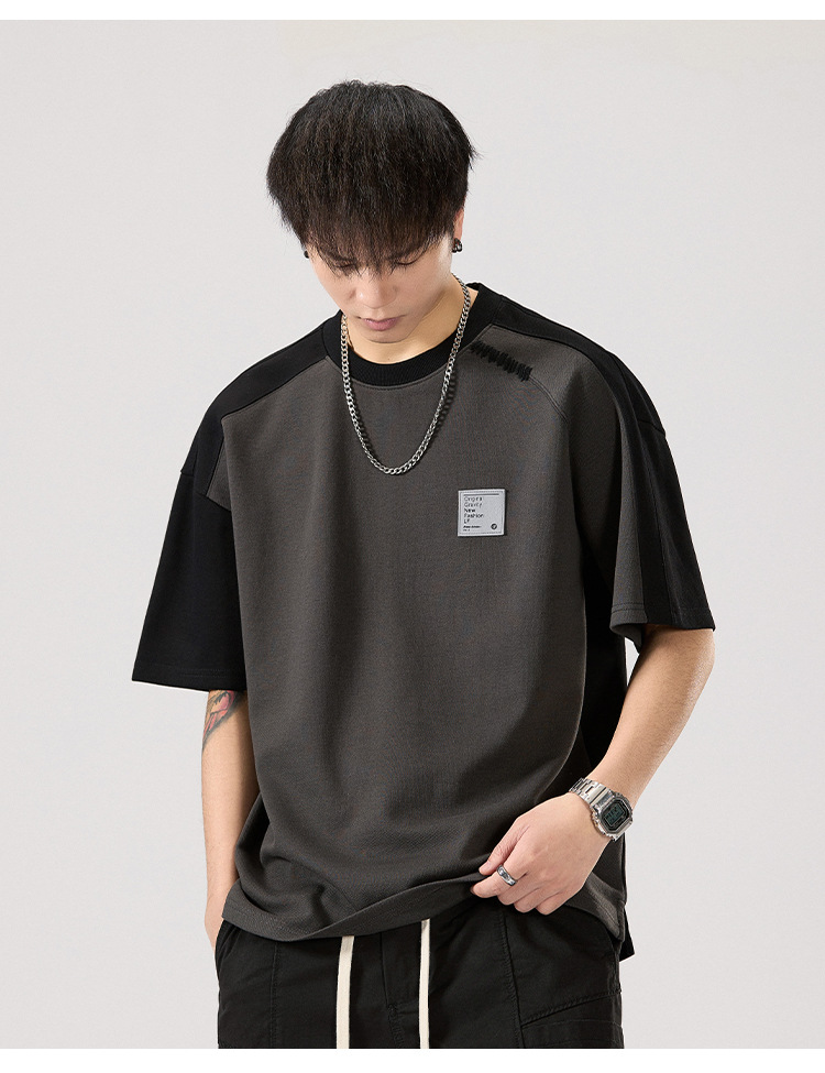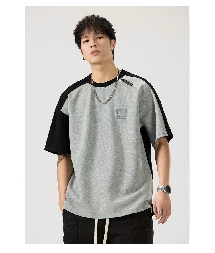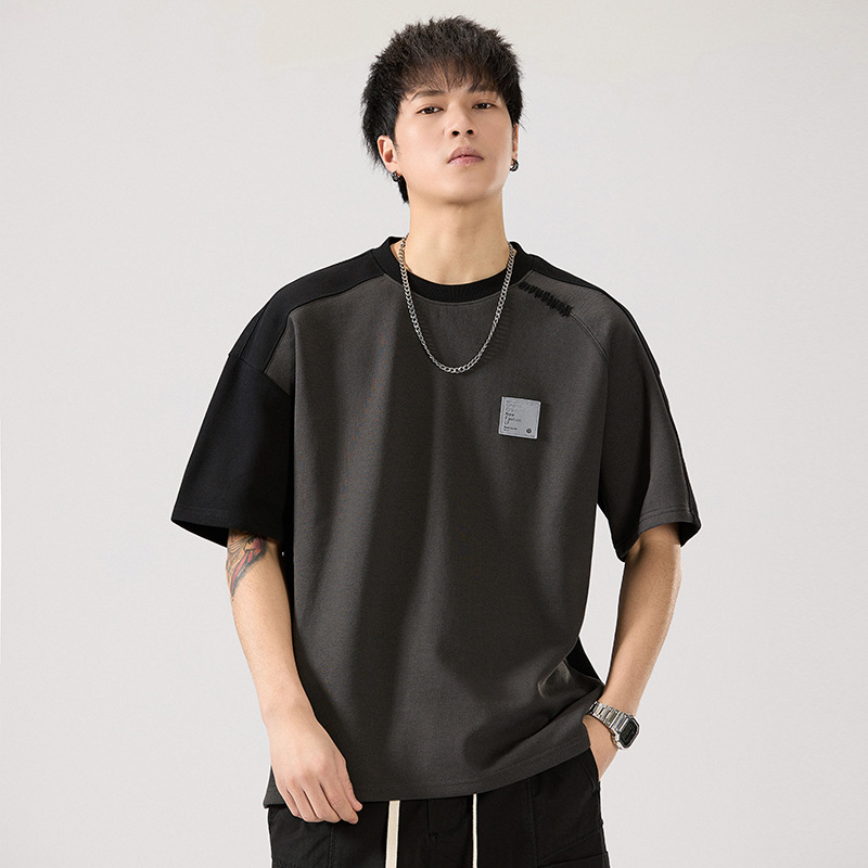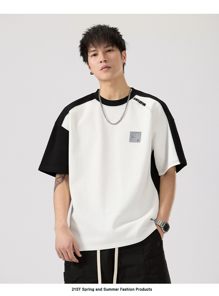 美式重磅260g 短袖t恤夏季男士2025春夏宽松大码撞色拼接打底体恤