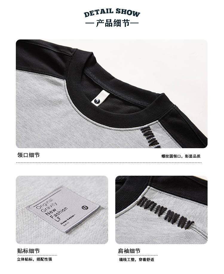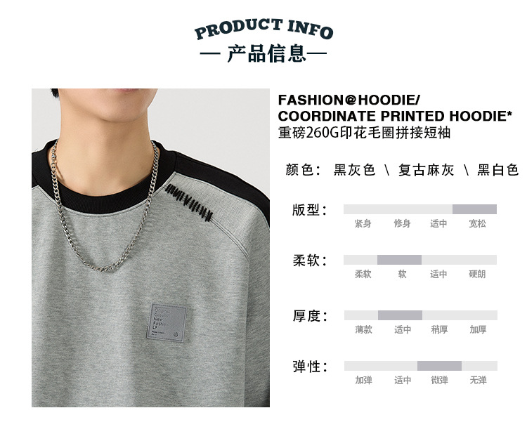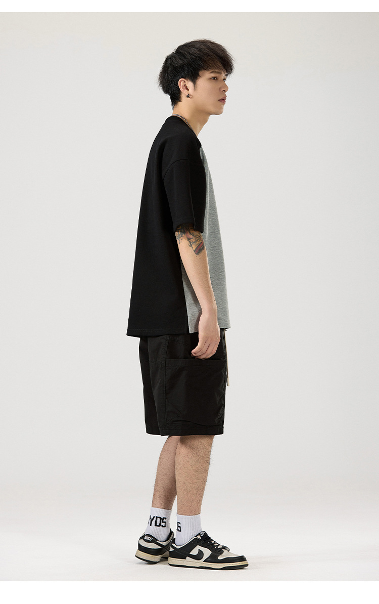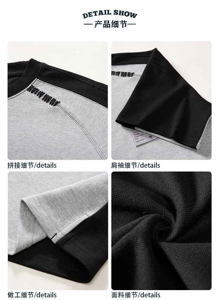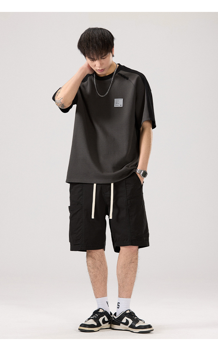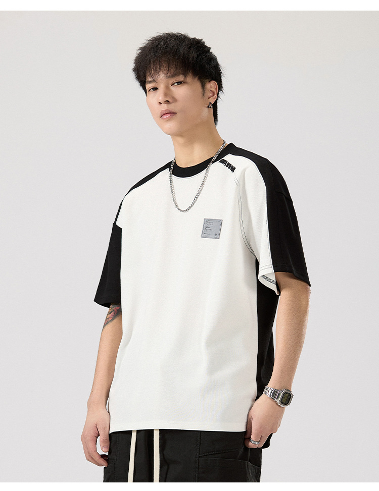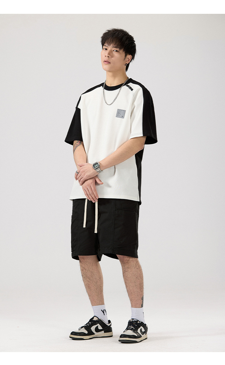 美式重磅260g 短袖t恤夏季男士2025春夏宽松大码撞色拼接打底体恤
