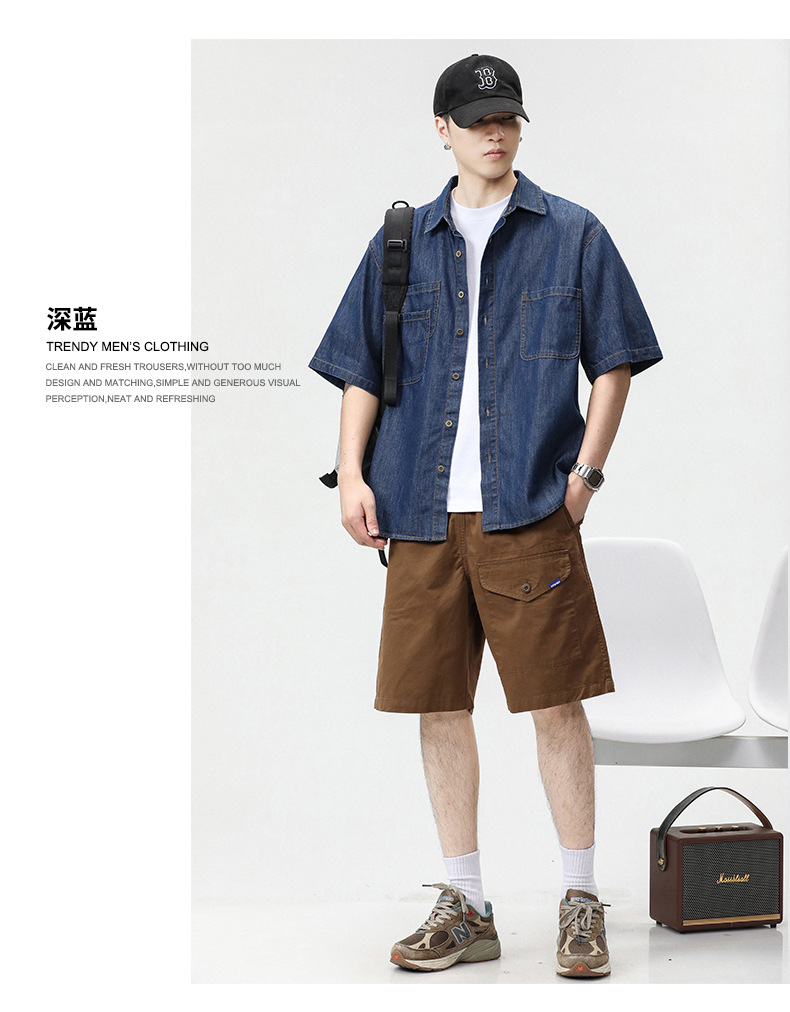 工装牛仔短袖衬衫男士高级感穿搭痞帅2025夏季新款宽松美式外套男