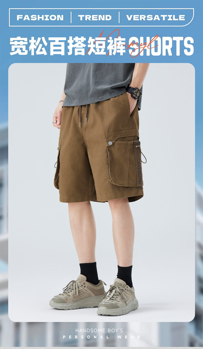 2025美式复古工装短裤男夏季新款宽松大口袋潮流水洗休闲五分中裤