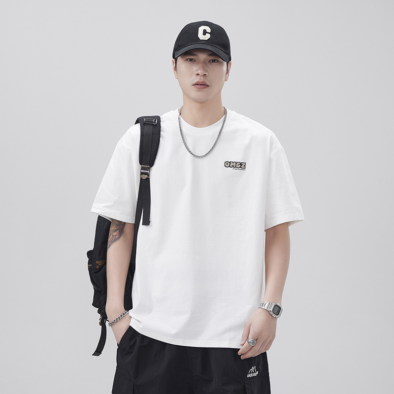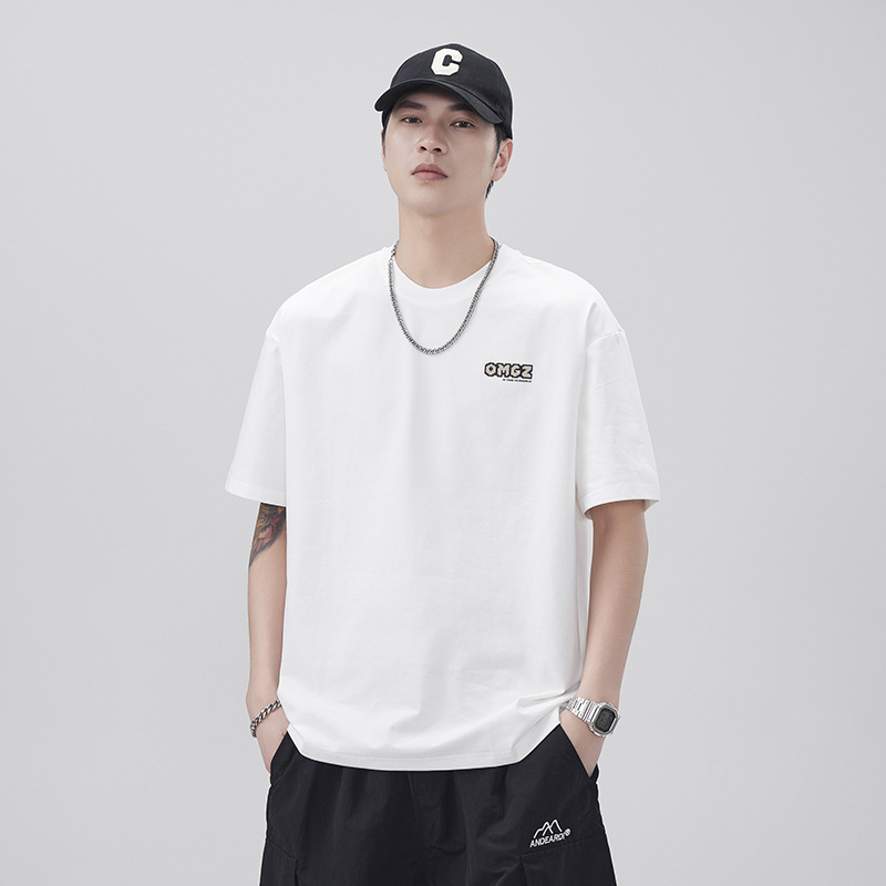 250g重磅短袖休闲T恤男2025新款夏季字母印花上衣宽松舒适体恤衫