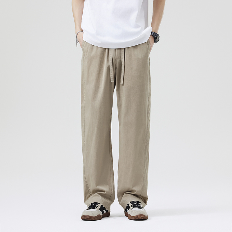 2025年春夏卡其户外速干透气裤子男款凉感抽绳直筒薄款休闲裤男