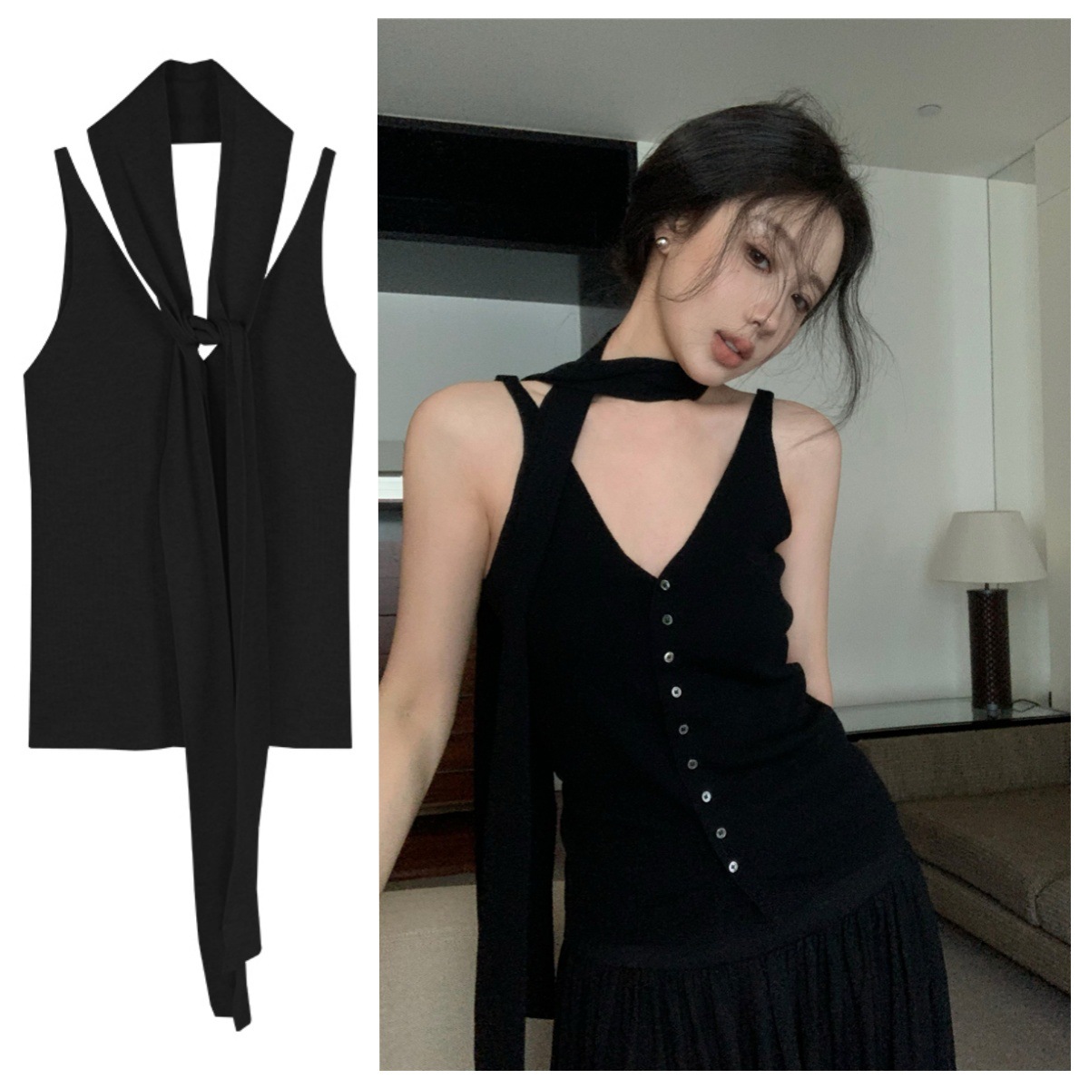纯欲风v领针织吊带小背心女夏新款甜酷辣妹修身无袖上衣外穿
