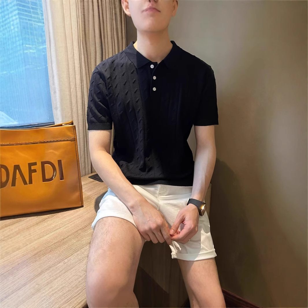 2025夏季POLO领绞花肌理感简约百搭气质显短袖针织衫韩版休闲上衣