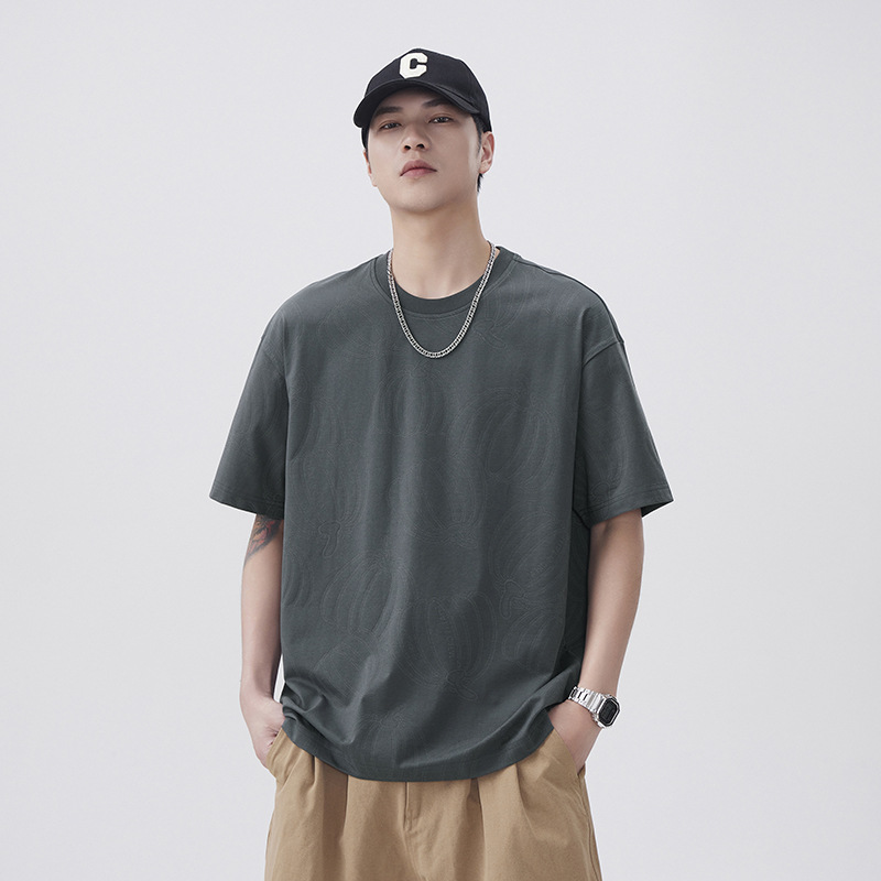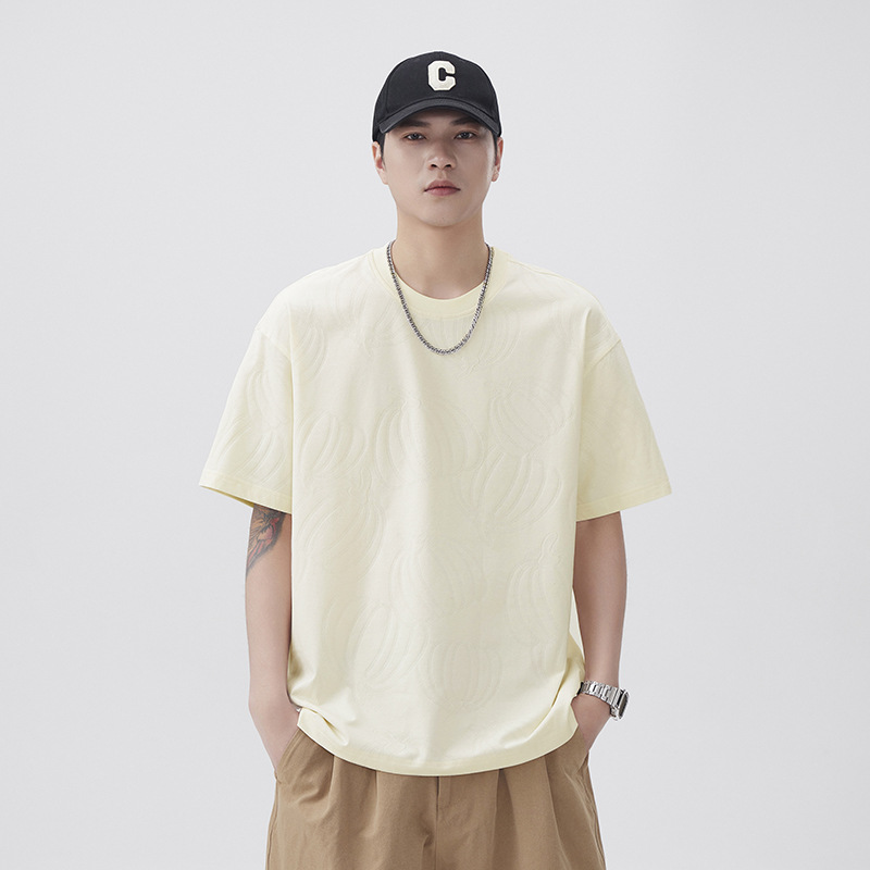 肌理感个性纹理短袖t恤男夏季新款潮牌2025宽松休闲百搭上衣