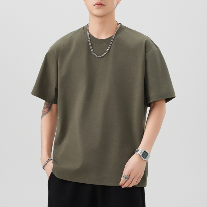 260g重磅短袖T恤男士夏季新款宽松圆领五分袖体恤衫潮流百搭上衣