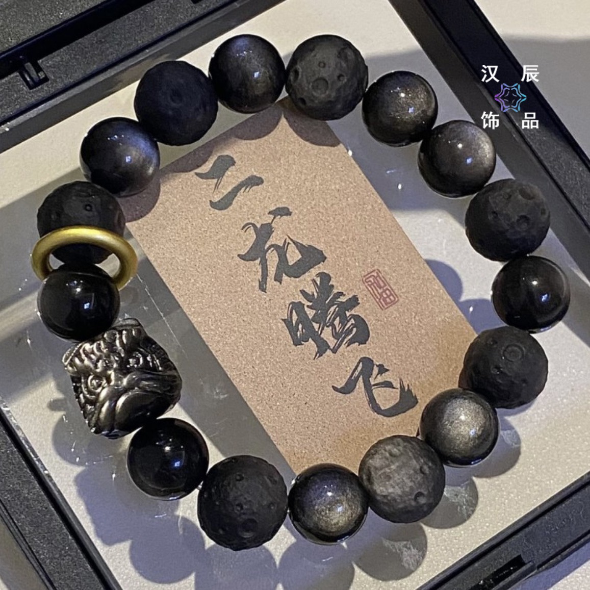 黑曜石醒狮手链男本命年转运珠手工高级感手串女潮新中式配饰饰品