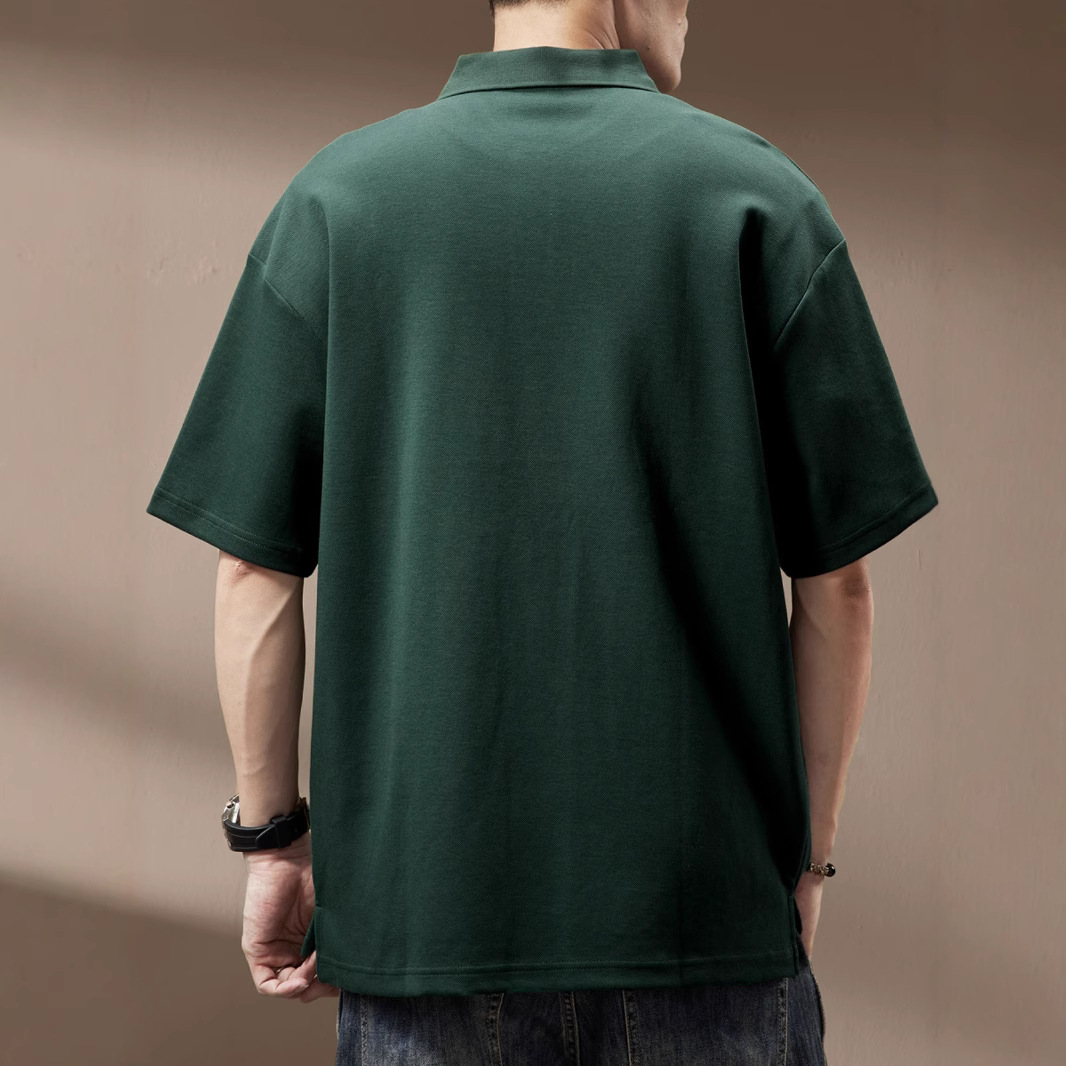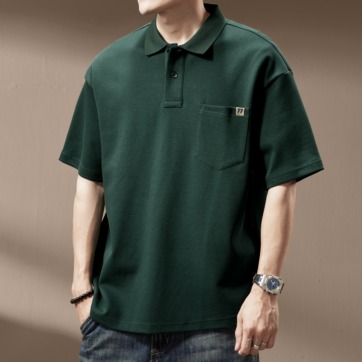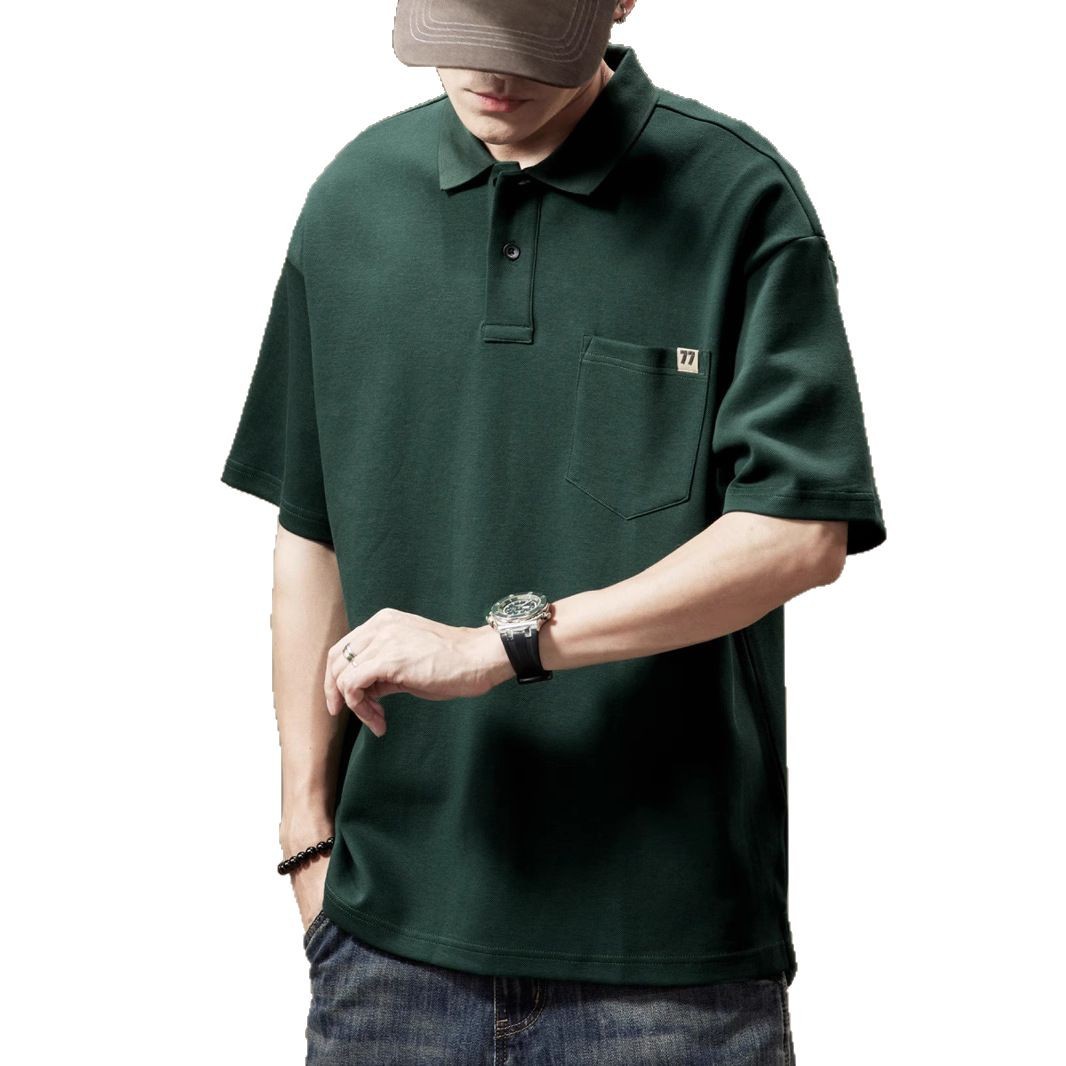 美式重磅简约墨绿色Polo衫短袖t恤男夏季宽松简约休闲翻领体恤潮
